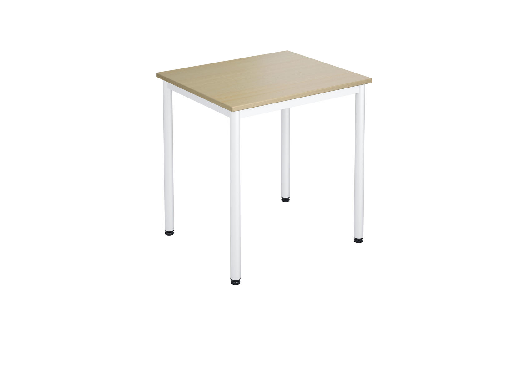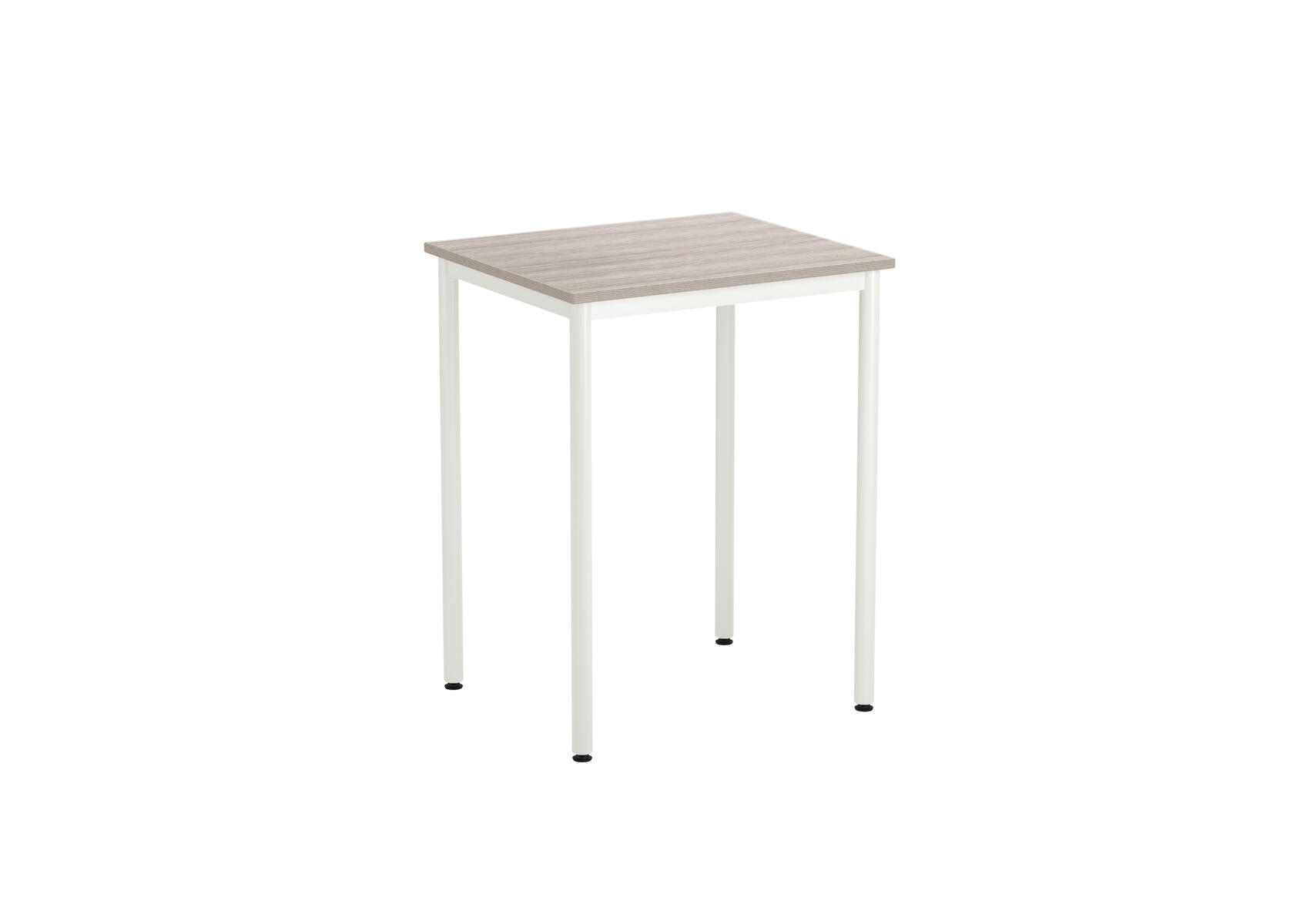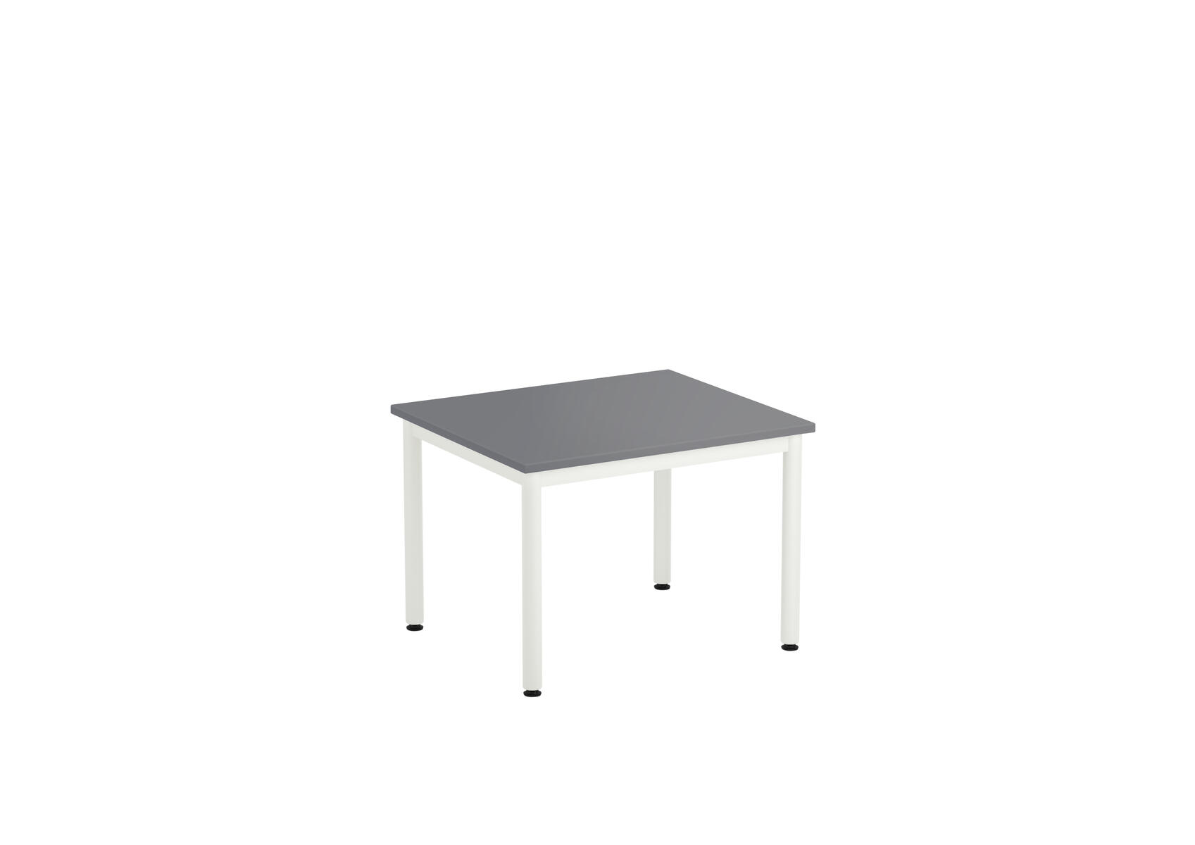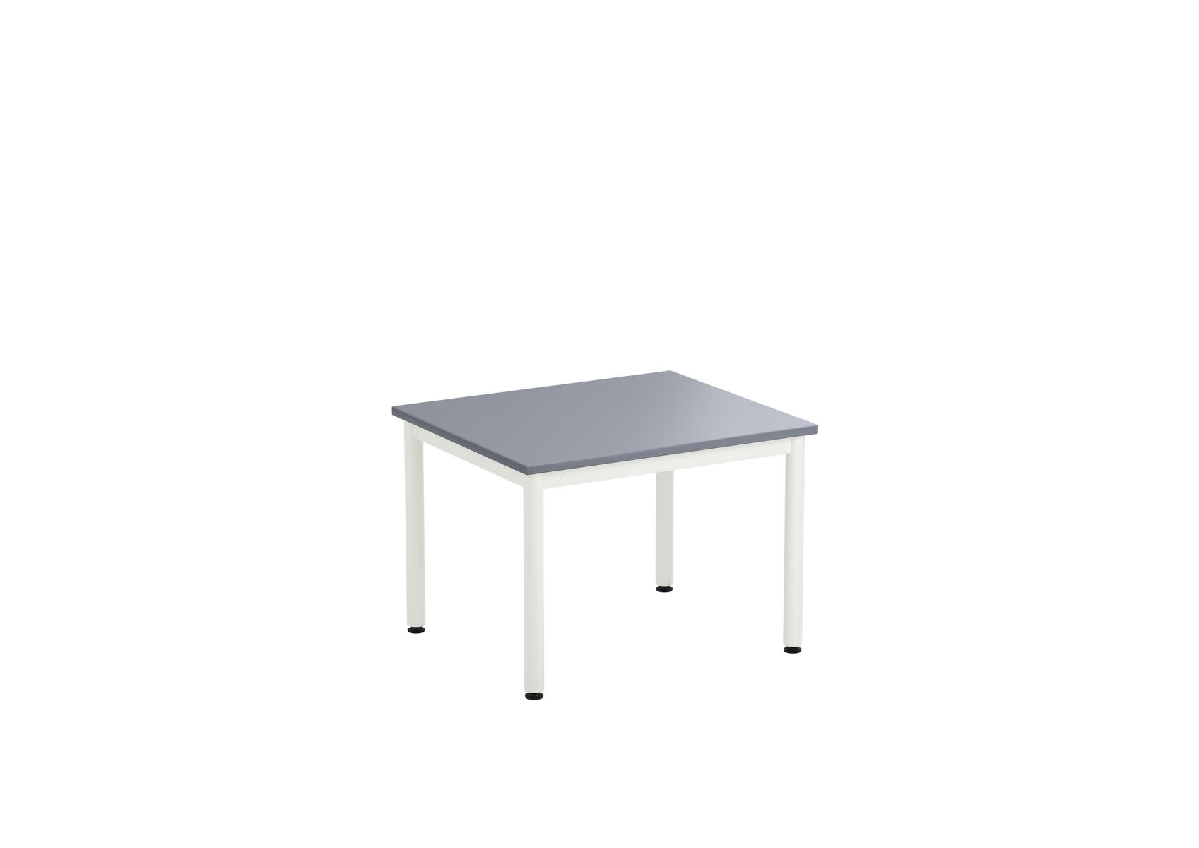 Bordsskiva i laminat. Ställbara tassar för anpassning till ojämna ytor. Stativet lackerat i silver RAL 9006.