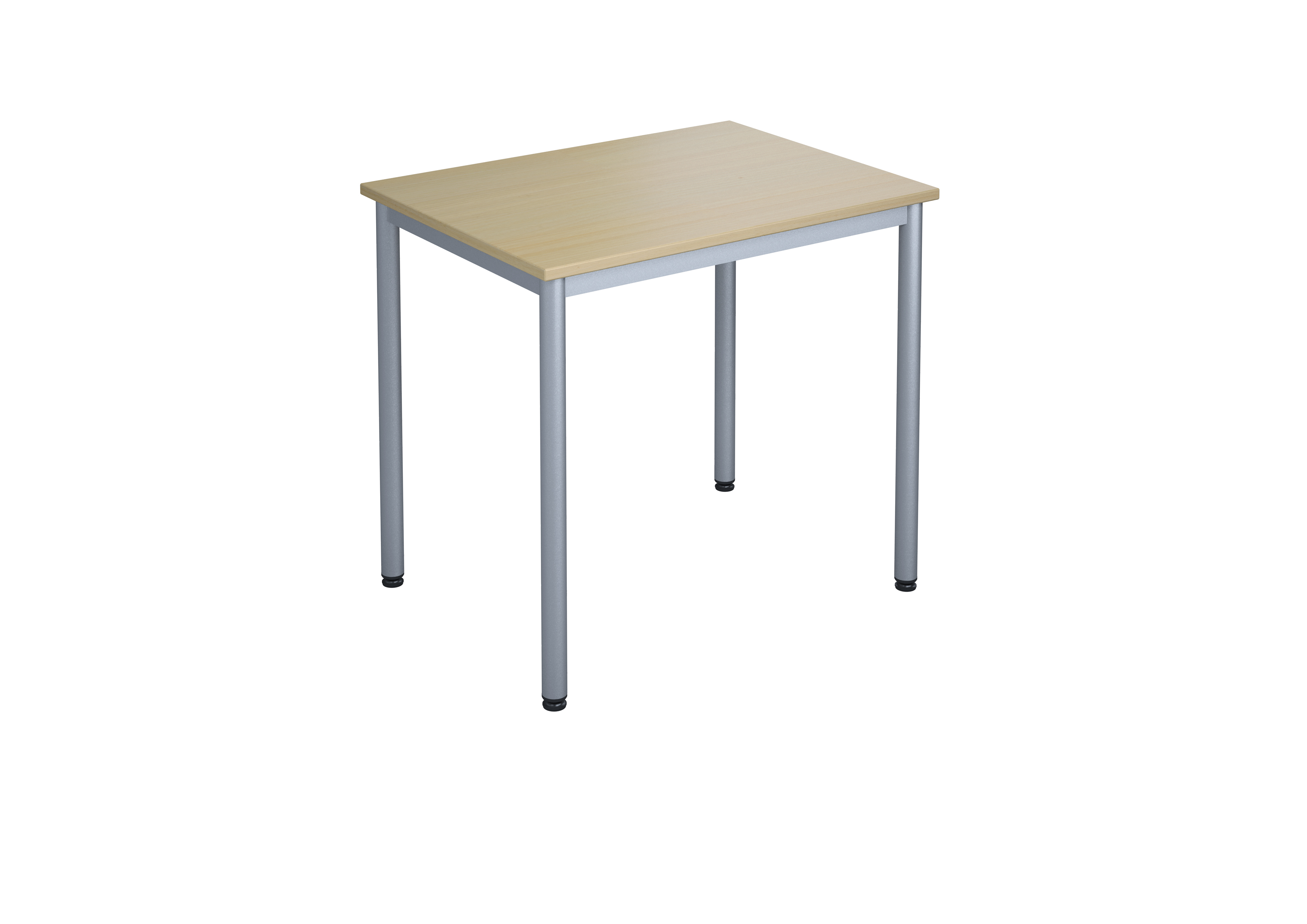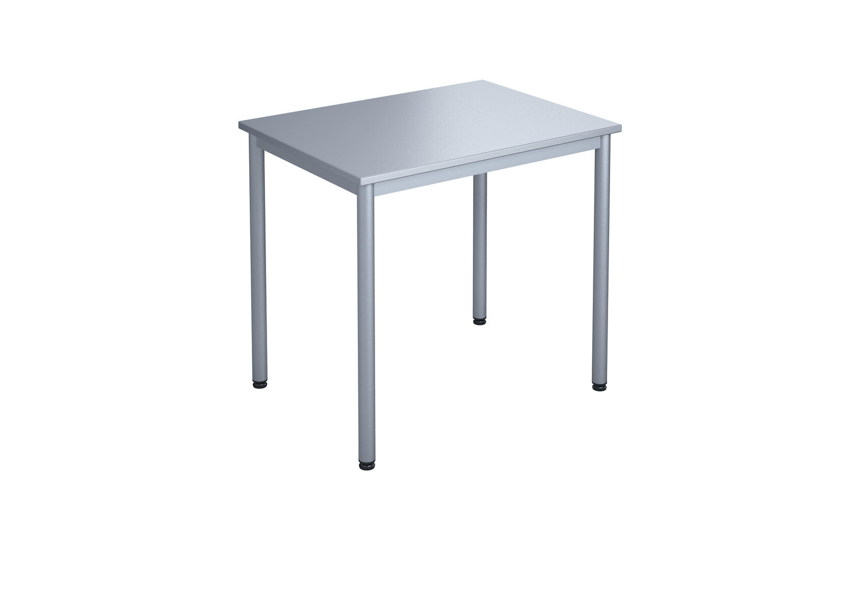 Bordsskiva med ljuddämpande yta i linoleum och ljudabsorbent på undersidan. Ställbara tassar för anpassning till ojämna ytor. Stativet lackerat i silver RAL 9006.