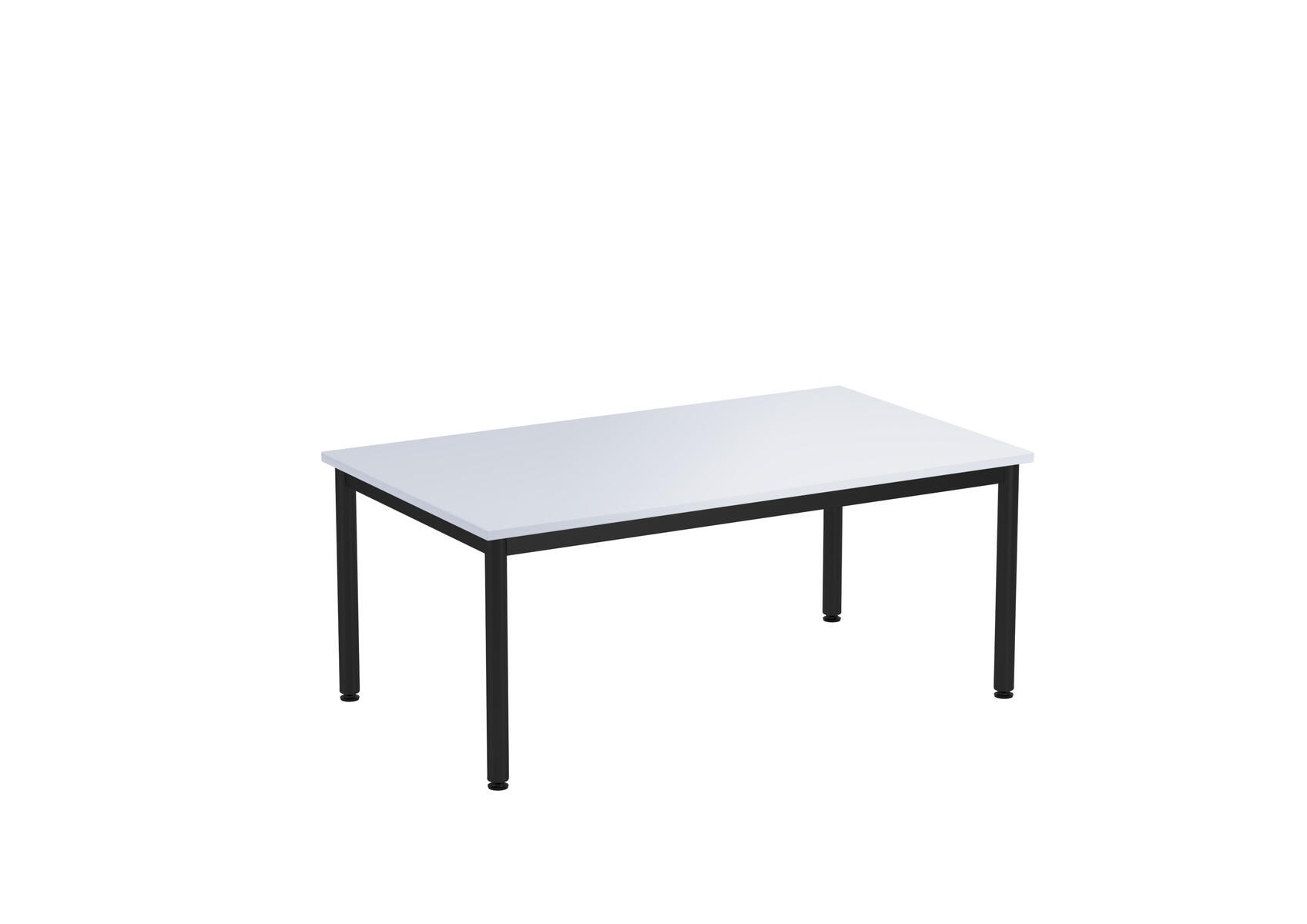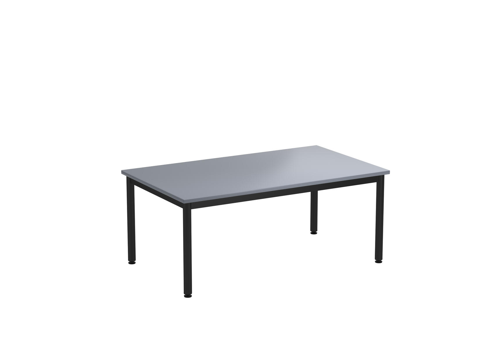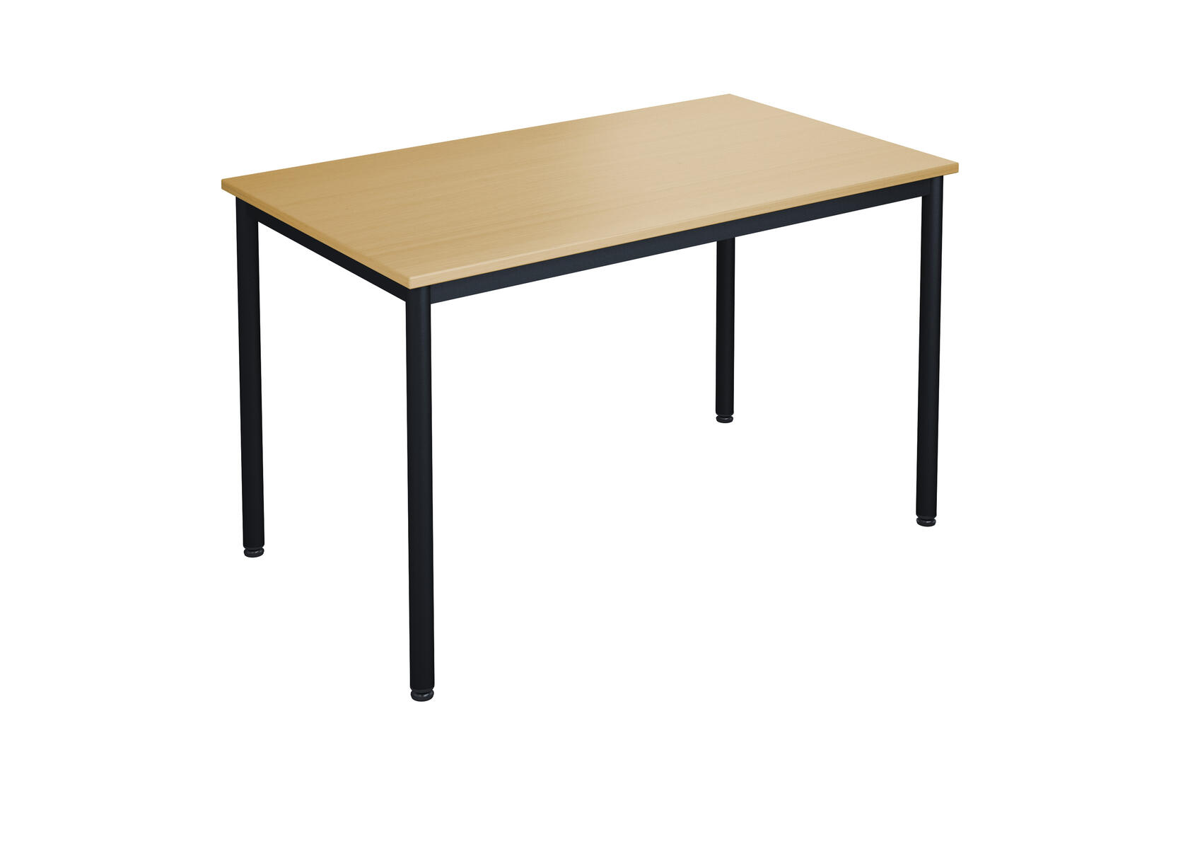 Bordsskiva i laminat. Ställbara tassar för anpassning till ojämna ytor. Stativet lackerat i svart RAL 9005.