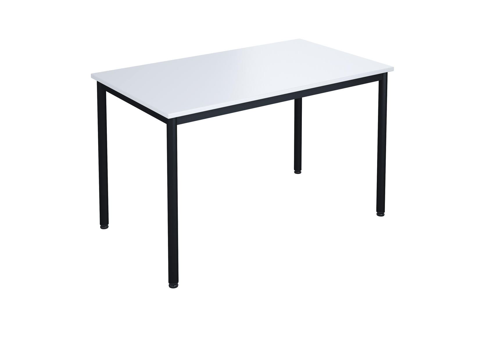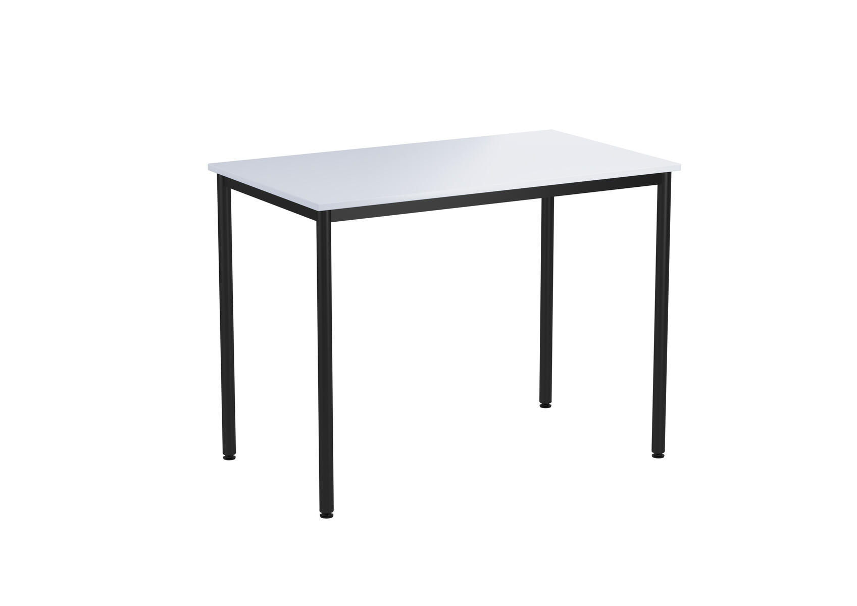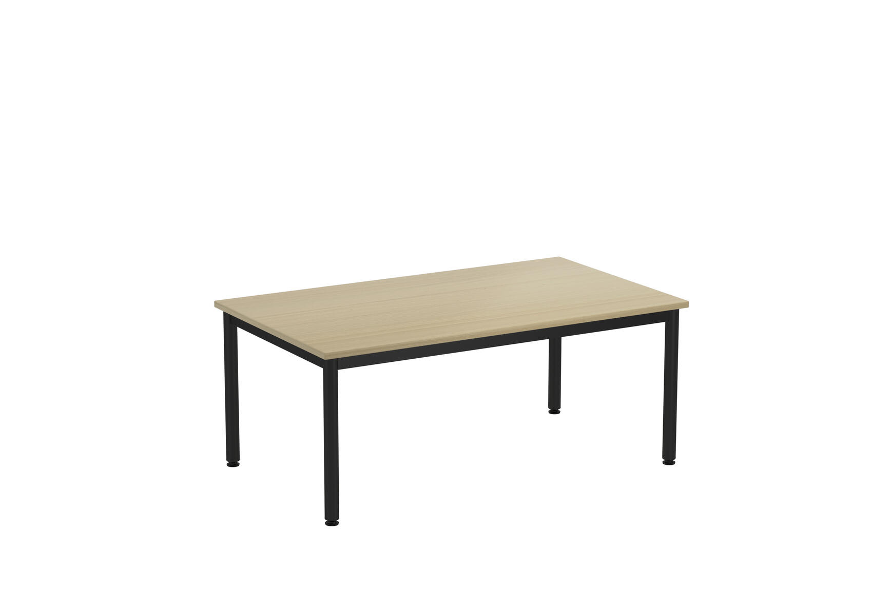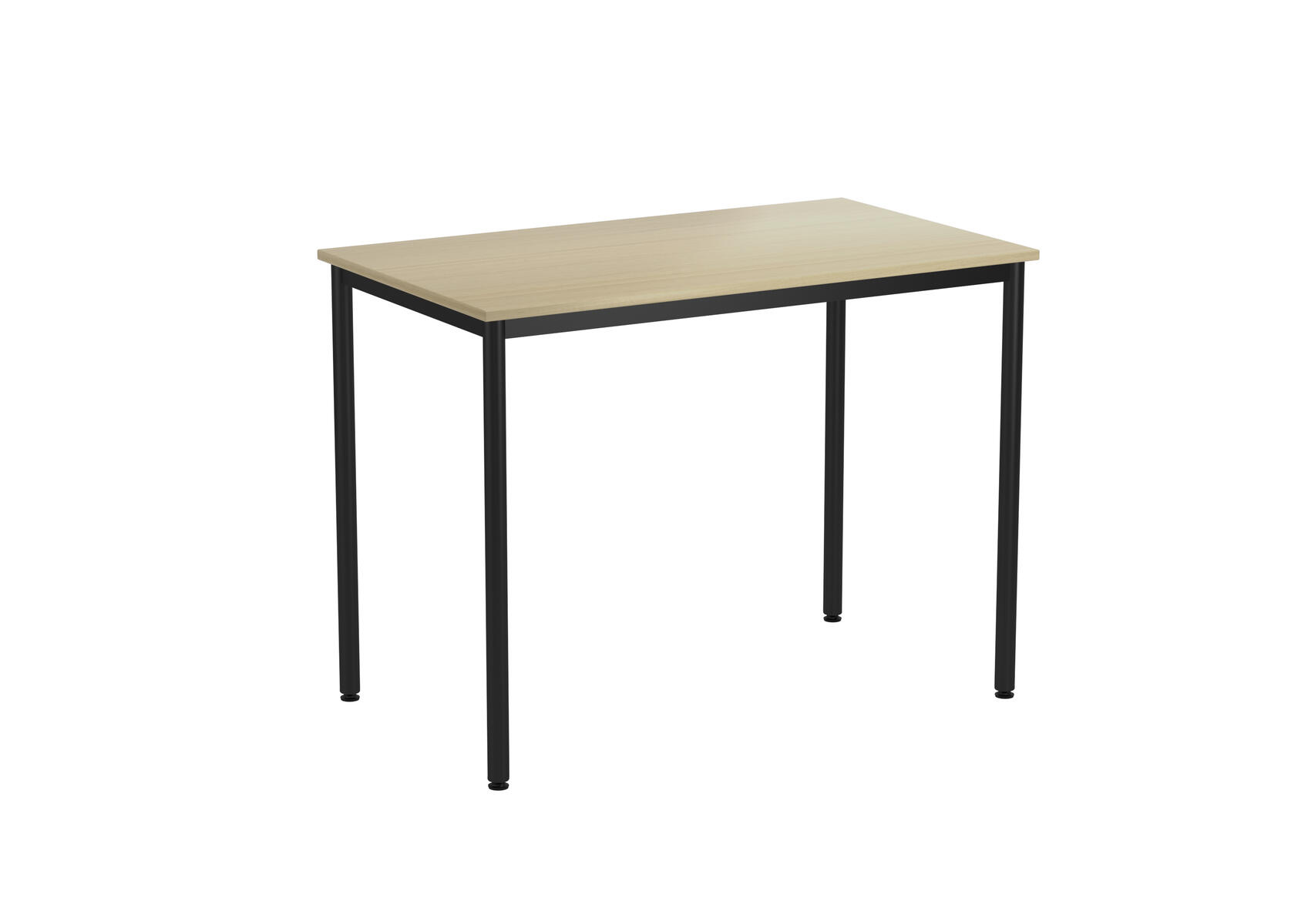 Bordsskiva i laminat. Ställbara tassar för anpassning till ojämna ytor. Stativet lackerat i svart RAL 9005.