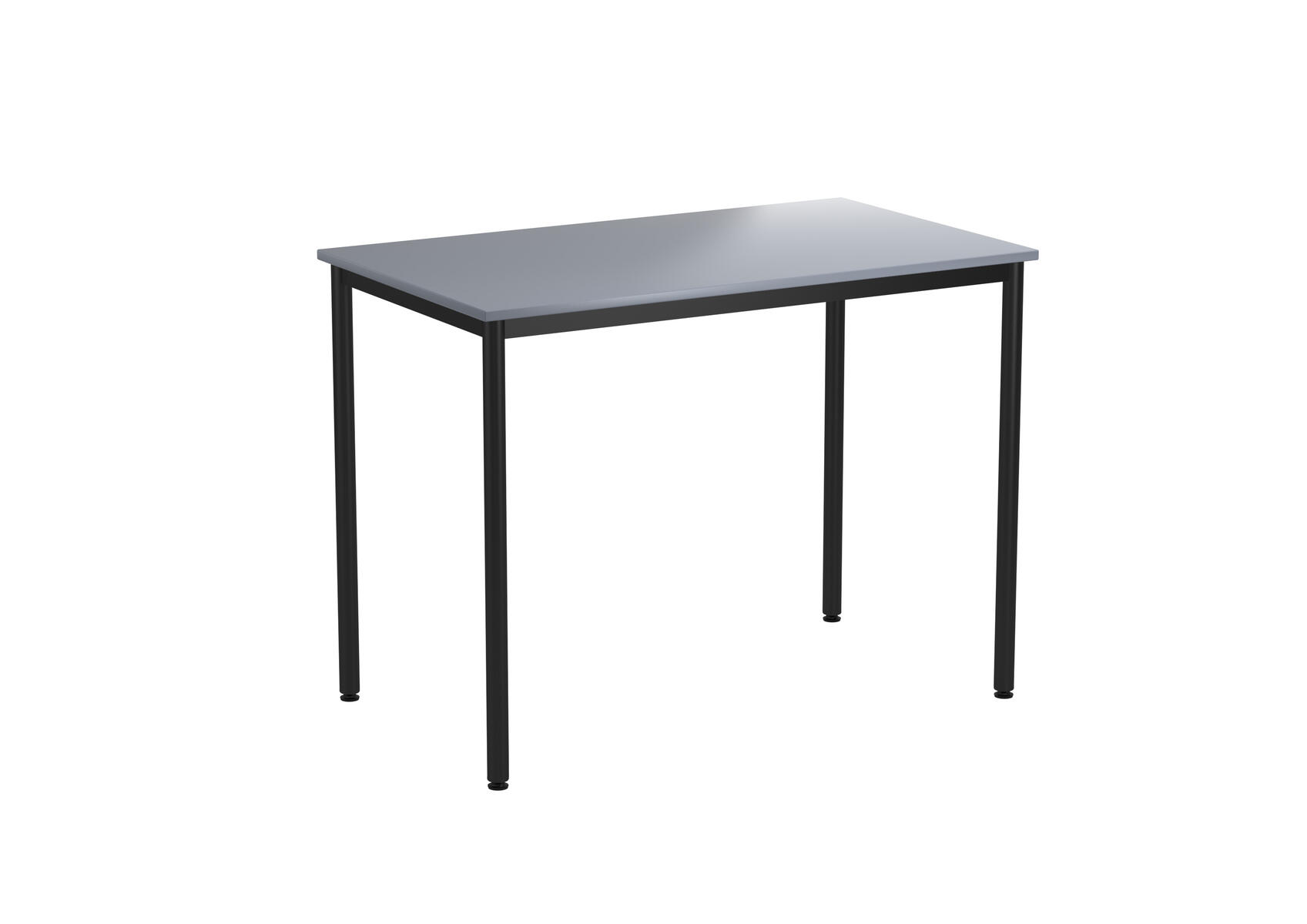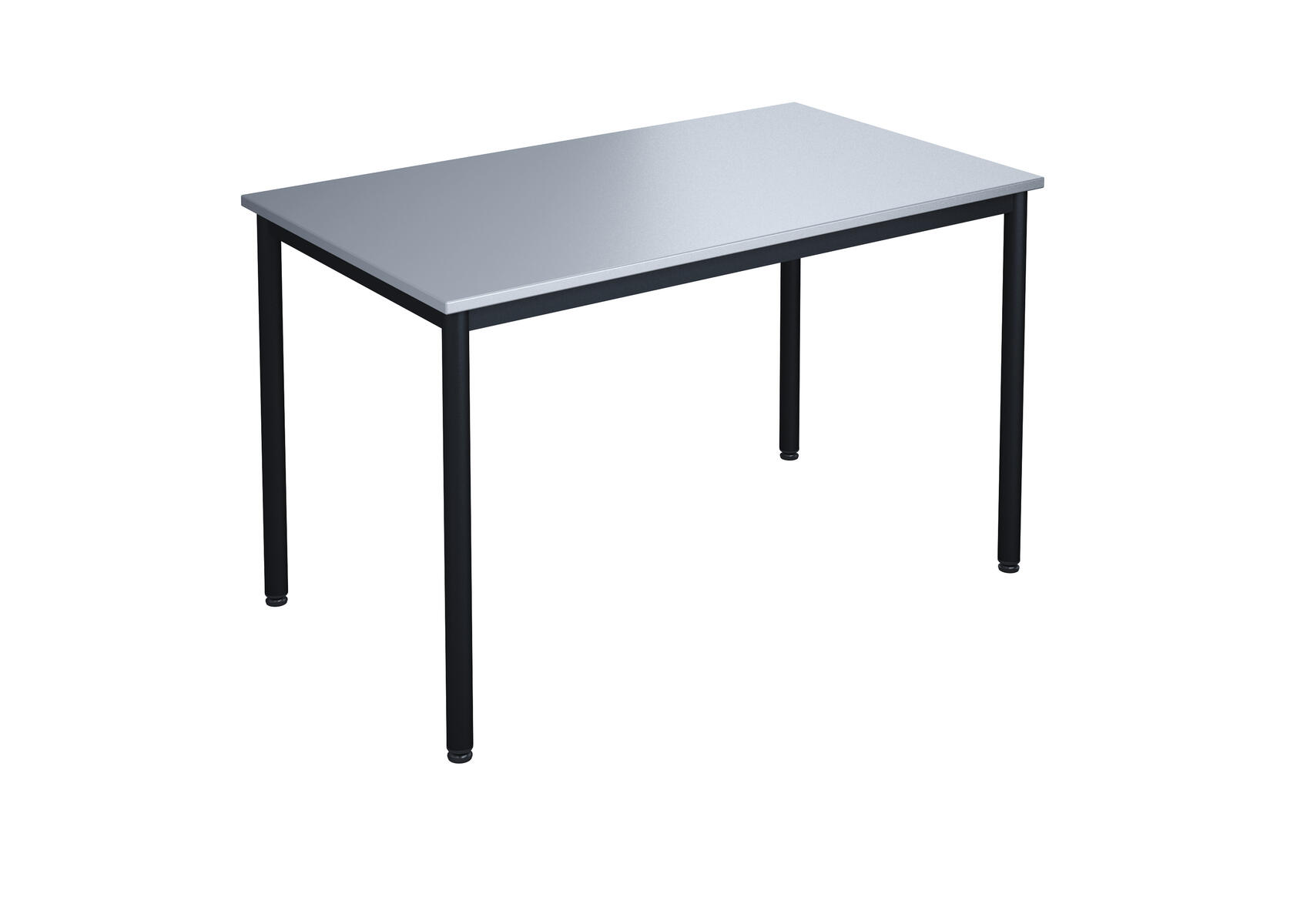 Bordsskiva i laminat. Ställbara tassar för anpassning till ojämna ytor. Stativet lackerat i silver RAL 9006.