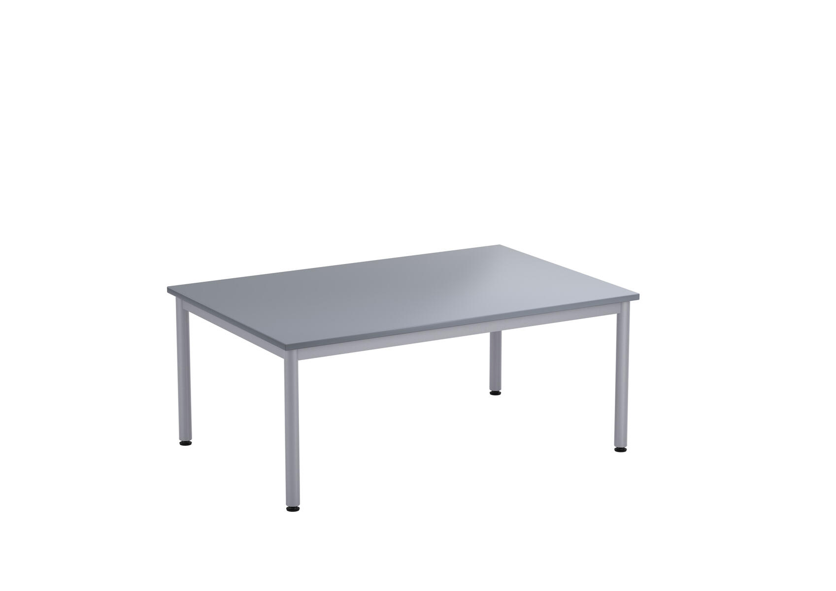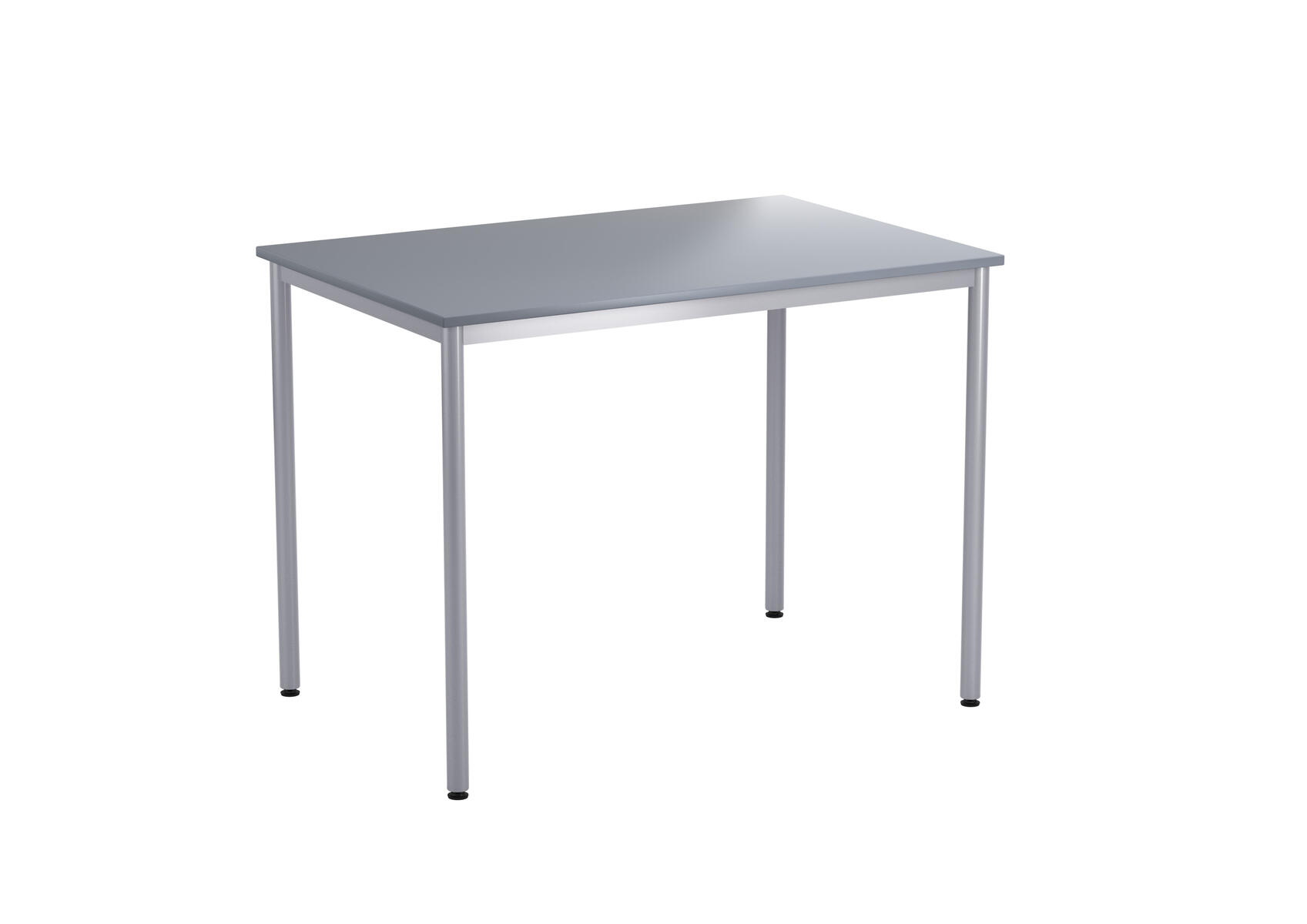 Bordsskiva i laminat. Ställbara tassar för anpassning till ojämna ytor. Stativet lackerat i silver RAL 9006.