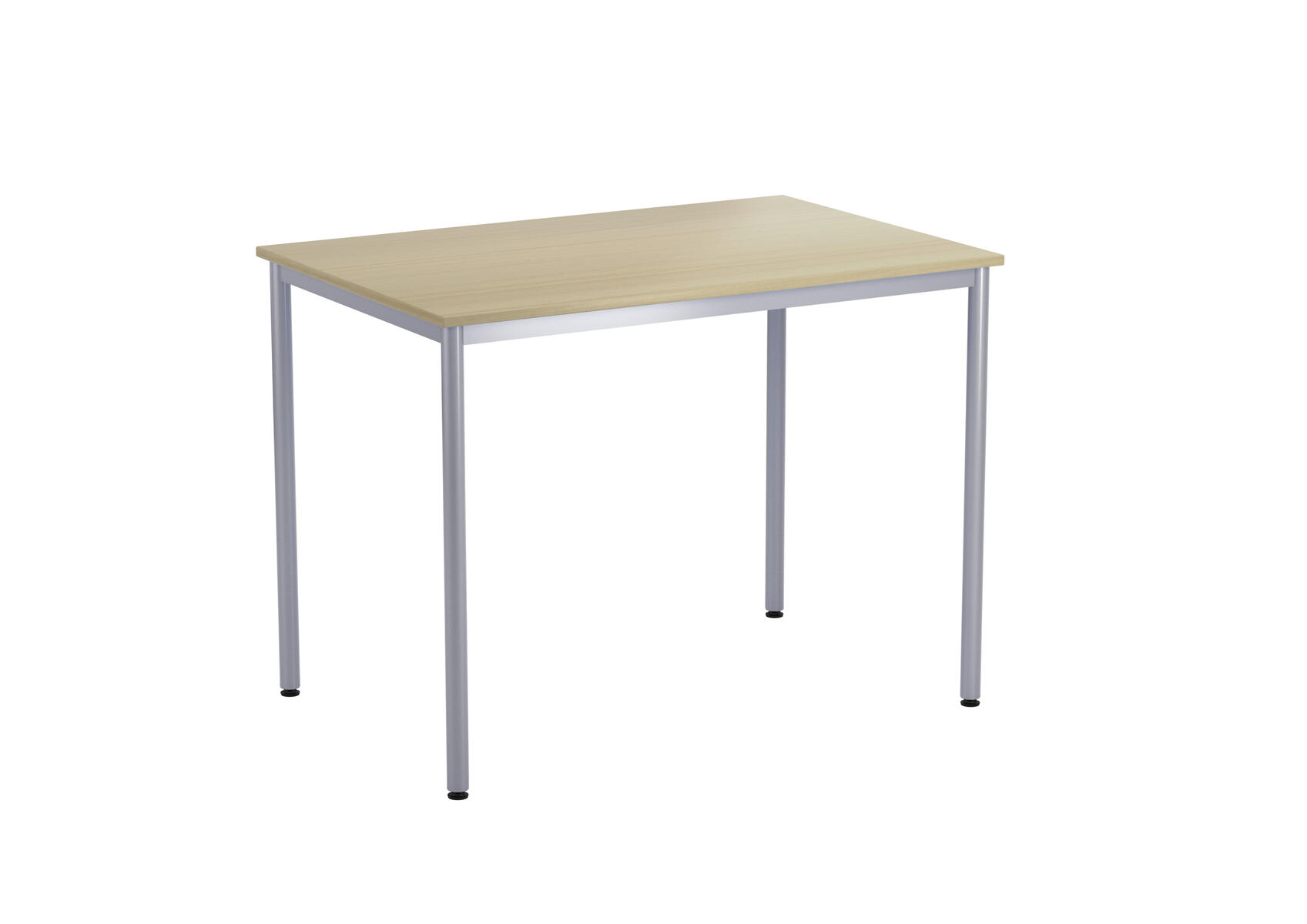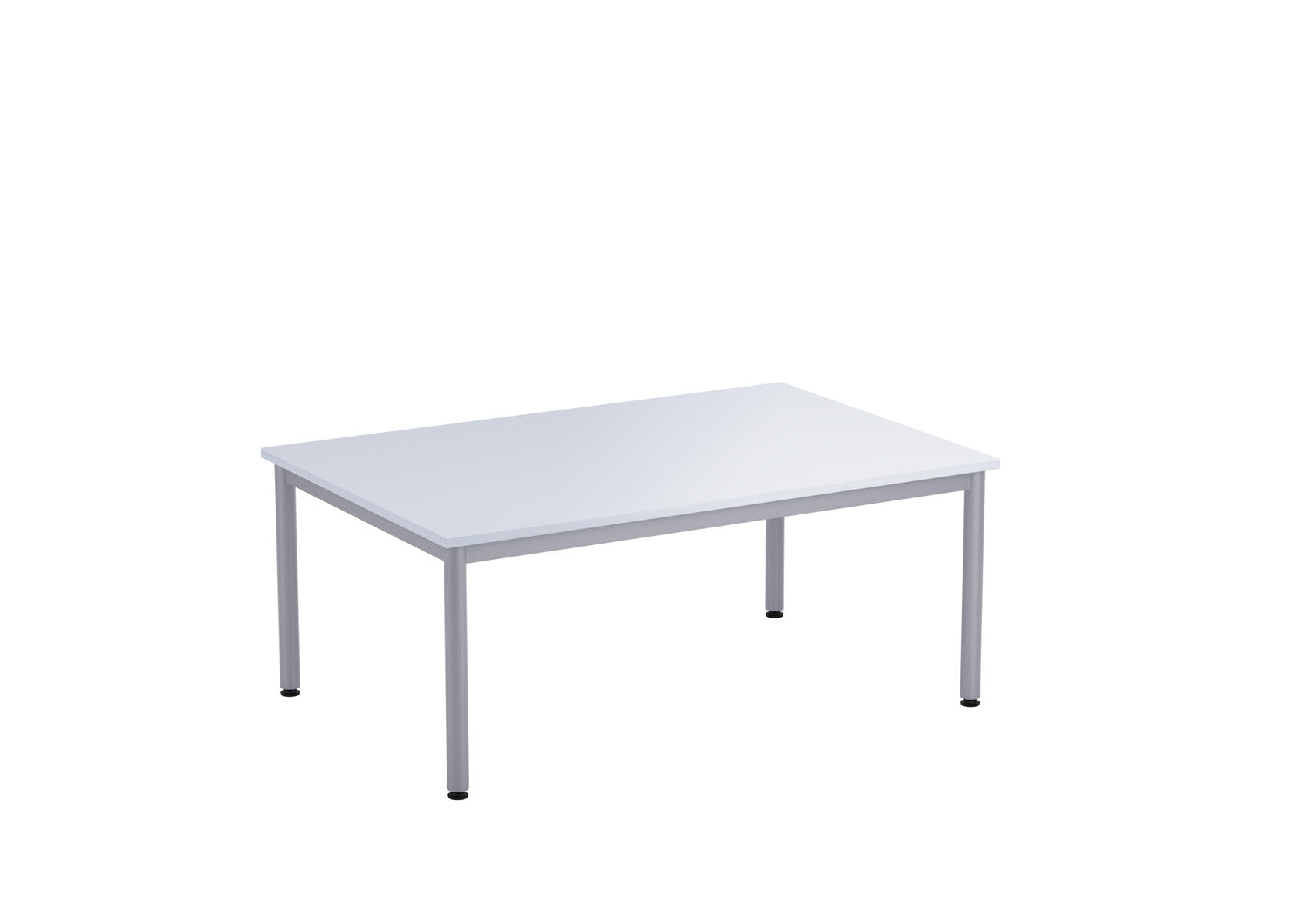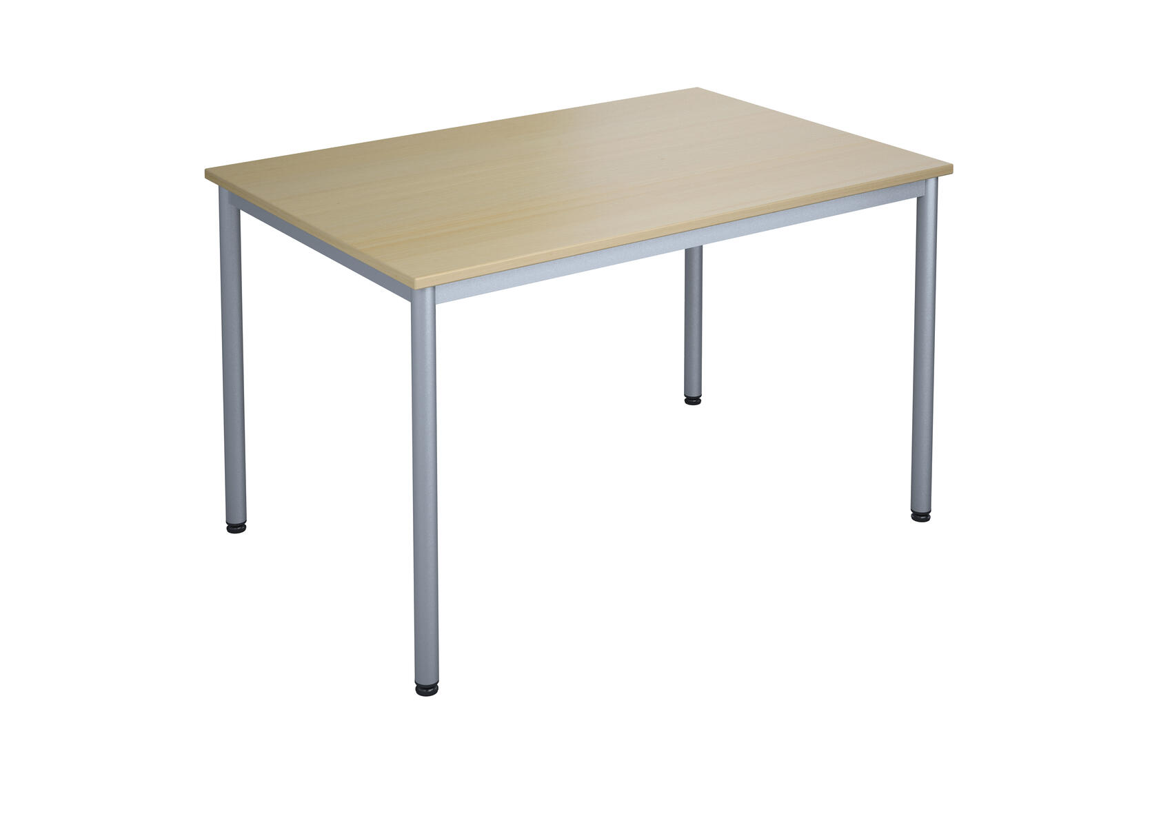 Bordsskiva i melamin. Ställbara tassar för anpassning till ojämna ytor. Stativet lackerat i silver RAL 9006.