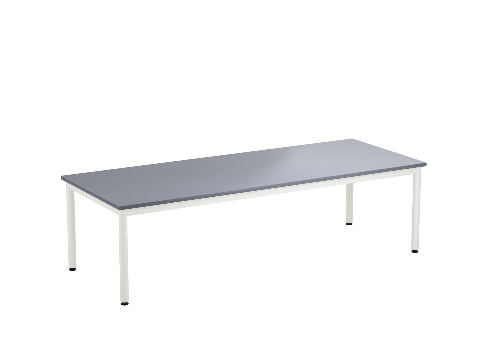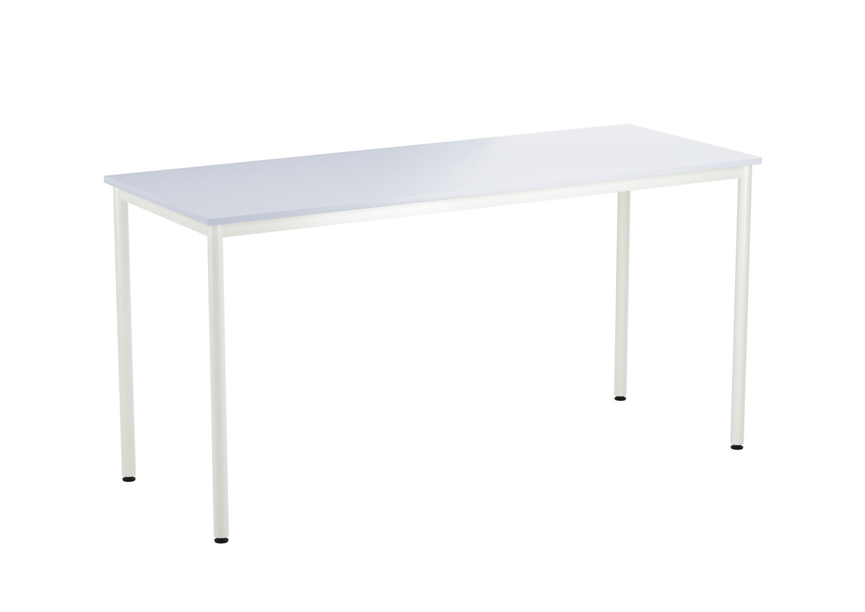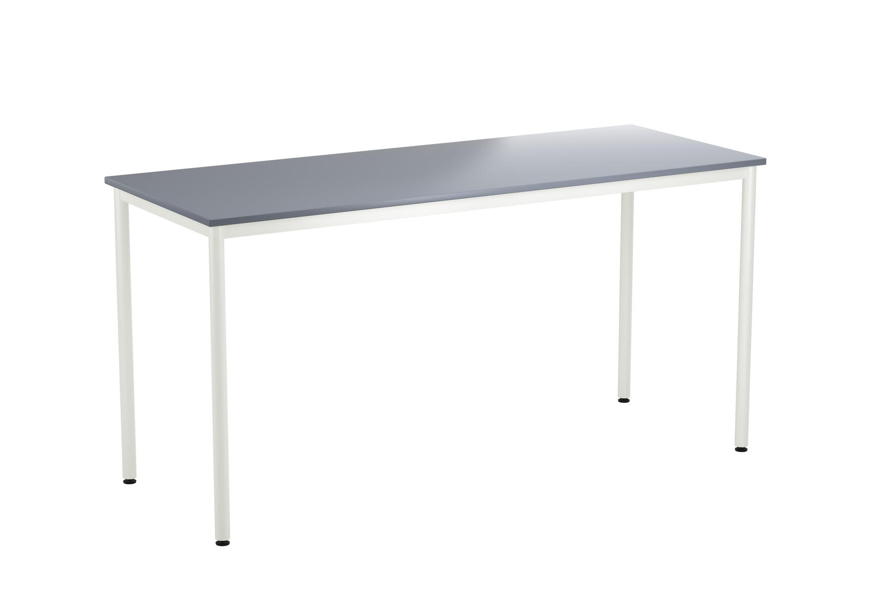 Bordsskiva i tåligt högtryckslaminat. Ställbara tassar för anpassning till ojämna ytor. Stativet lackerat i vitt RAL 9003.
