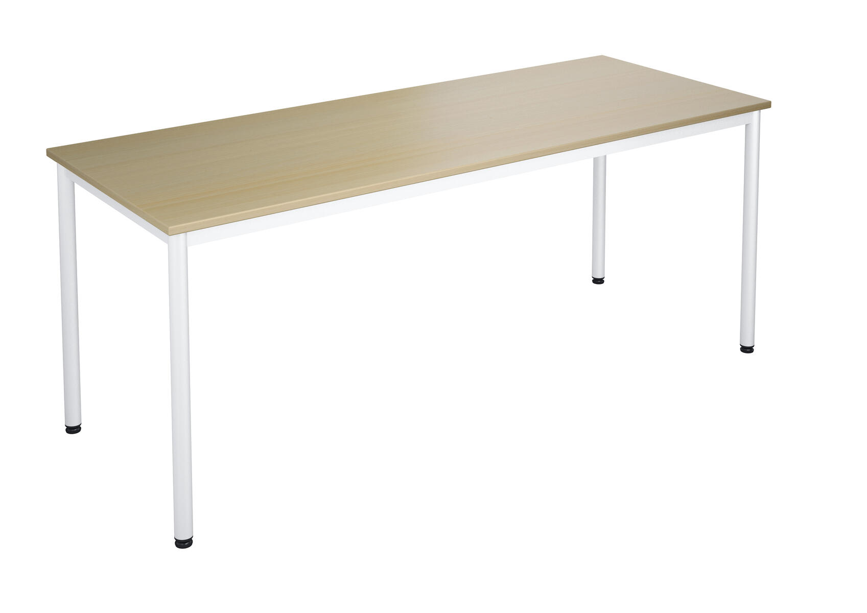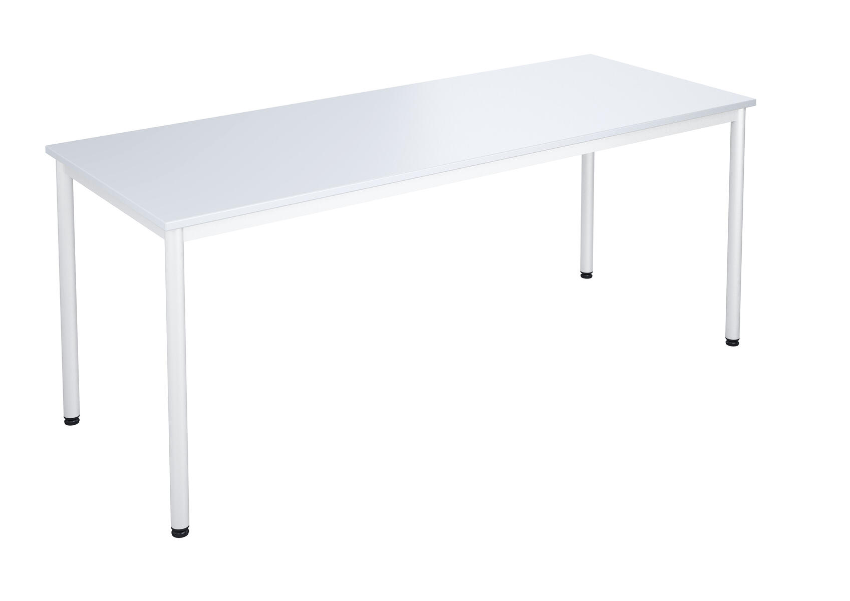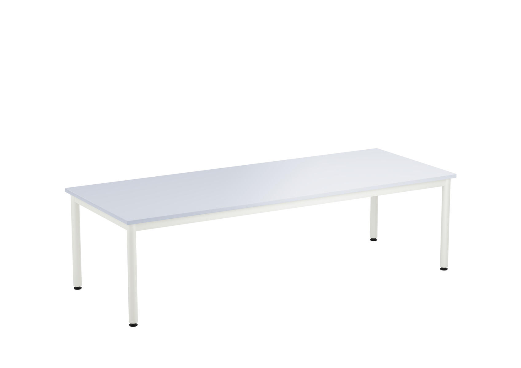 Bordsskiva i tåligt högtryckslaminat. Ställbara tassar för anpassning till ojämna ytor. Stativet lackerat i vitt RAL 9003.