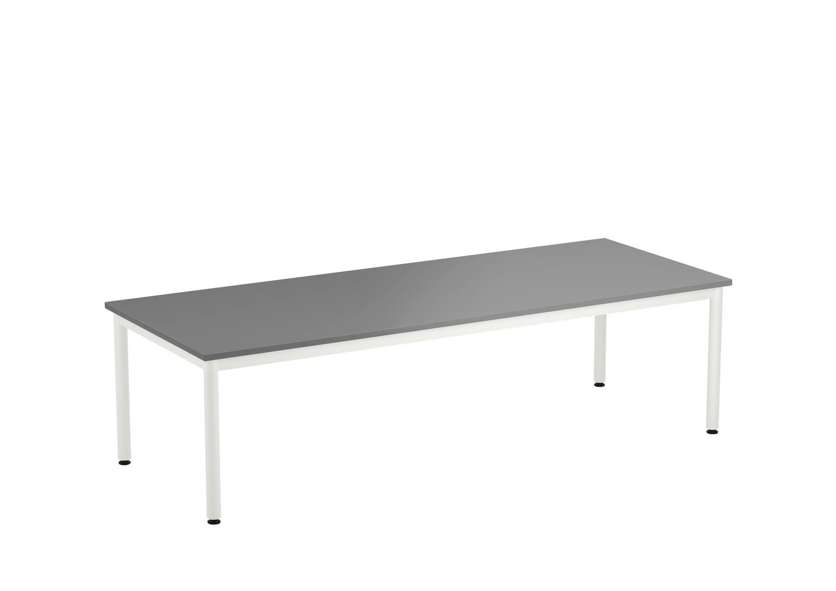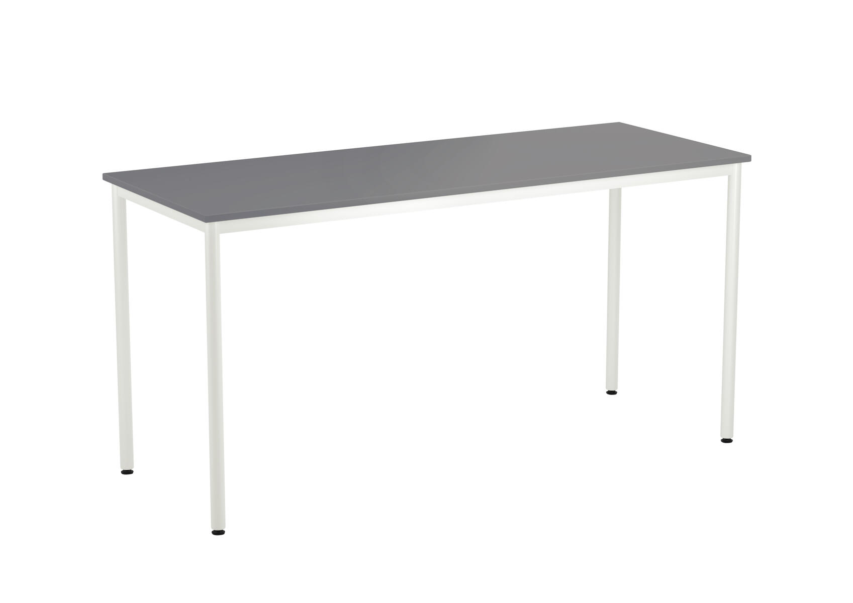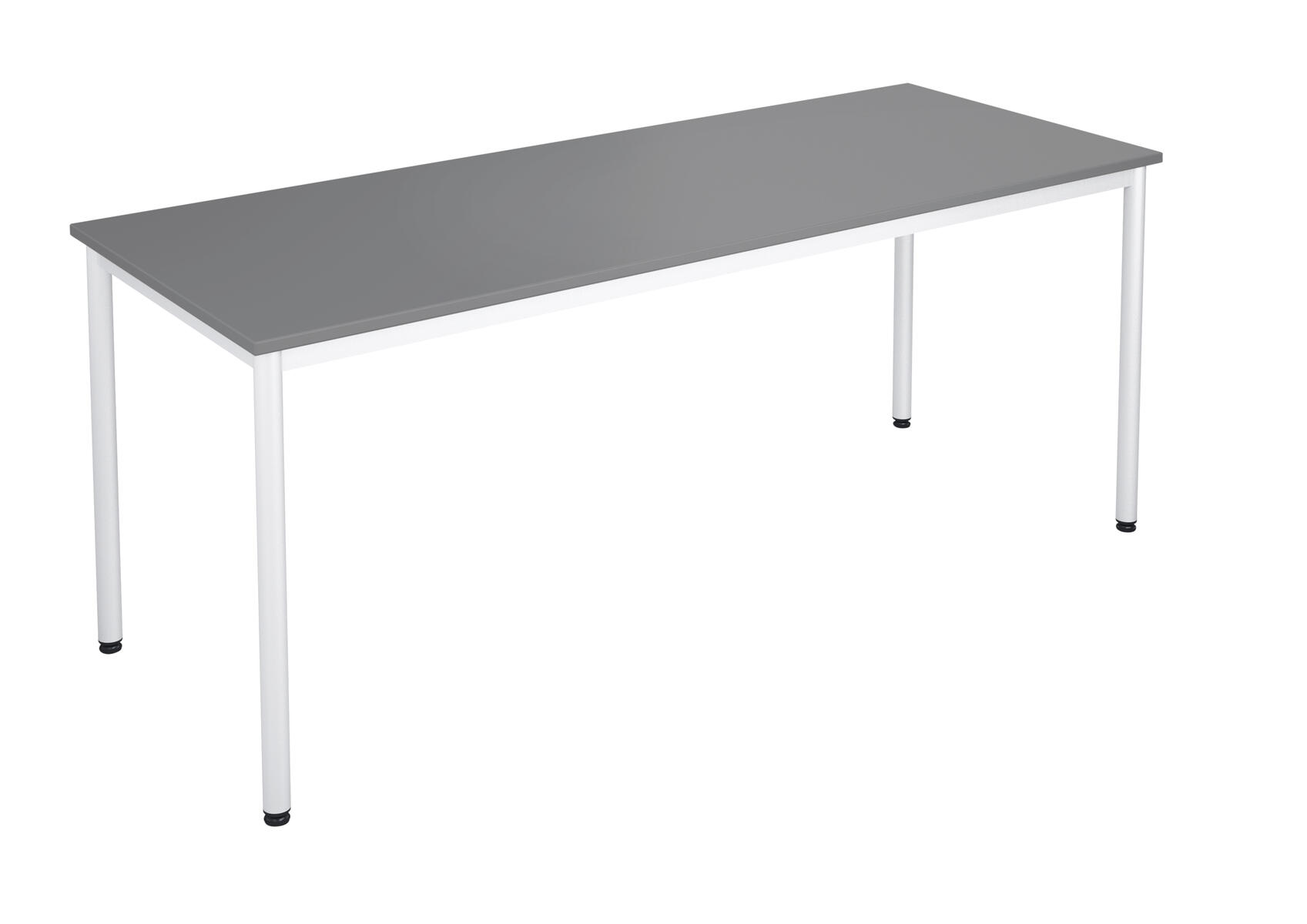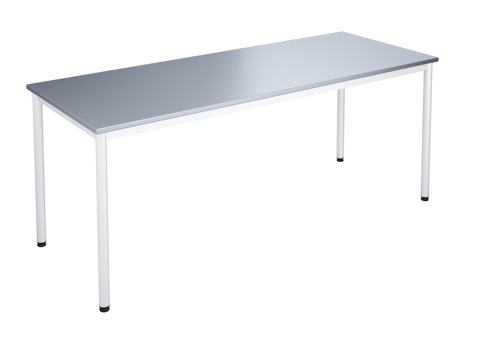 Bordsskiva i laminat. Ställbara tassar för anpassning till ojämna ytor. Stativet lackerat i silver RAL 9006.