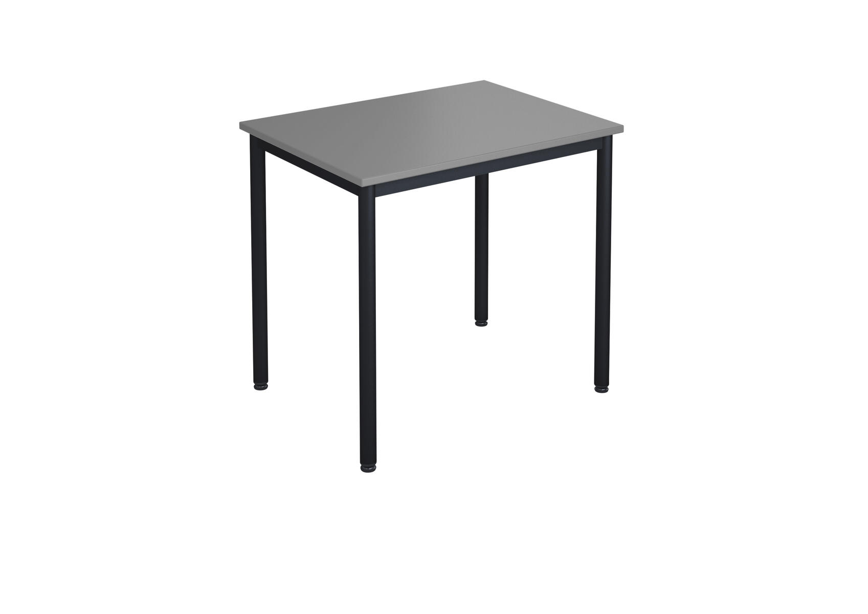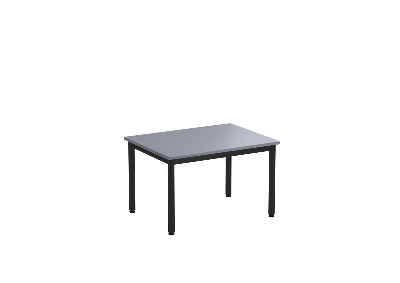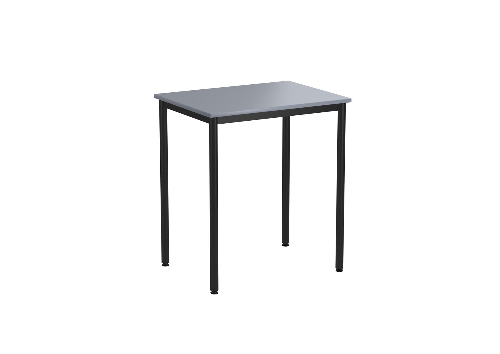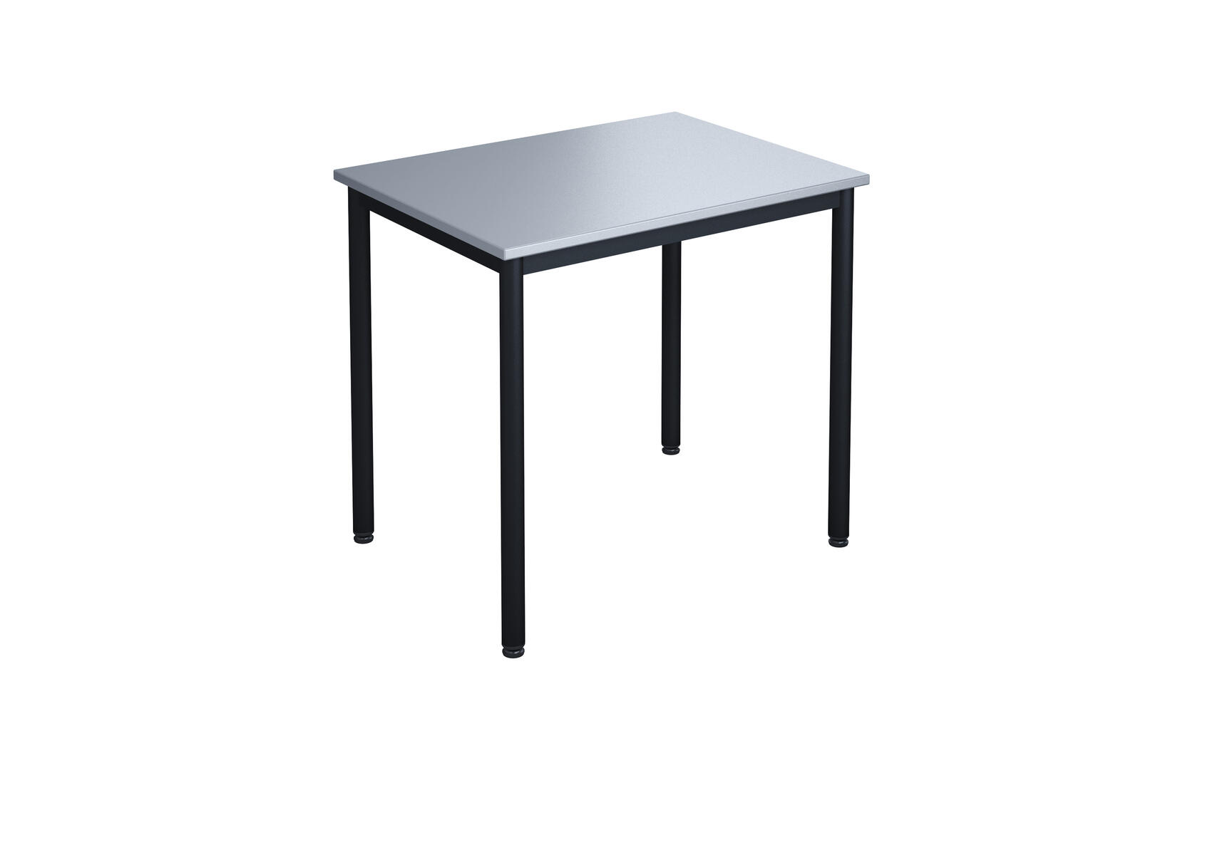 Bordsskiva i laminat. Ställbara tassar för anpassning till ojämna ytor. Stativet lackerat i silver RAL 9006.