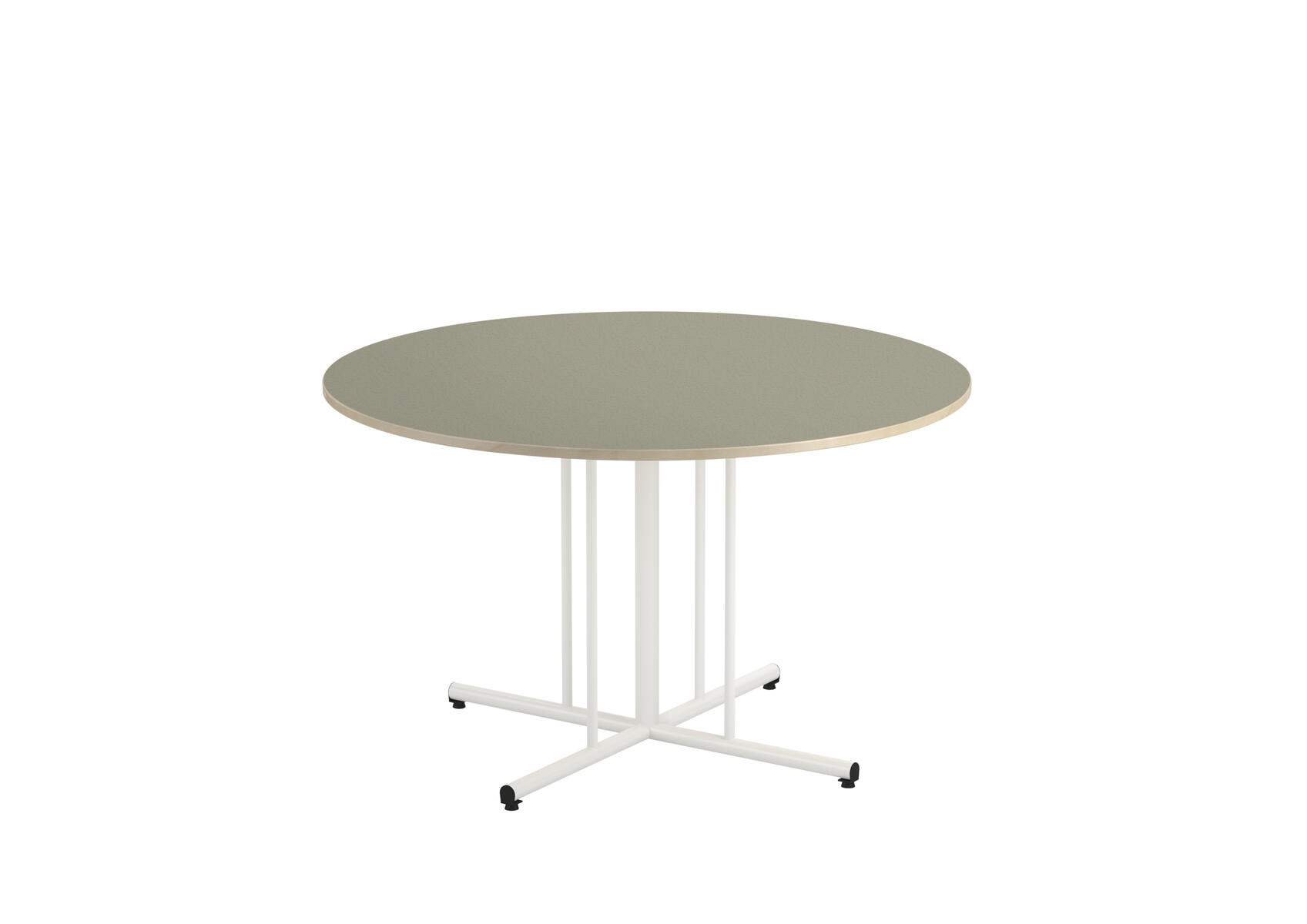 Bord 12:38 BX akustik linoleum runt ø 120 cm pelare vitt stativ