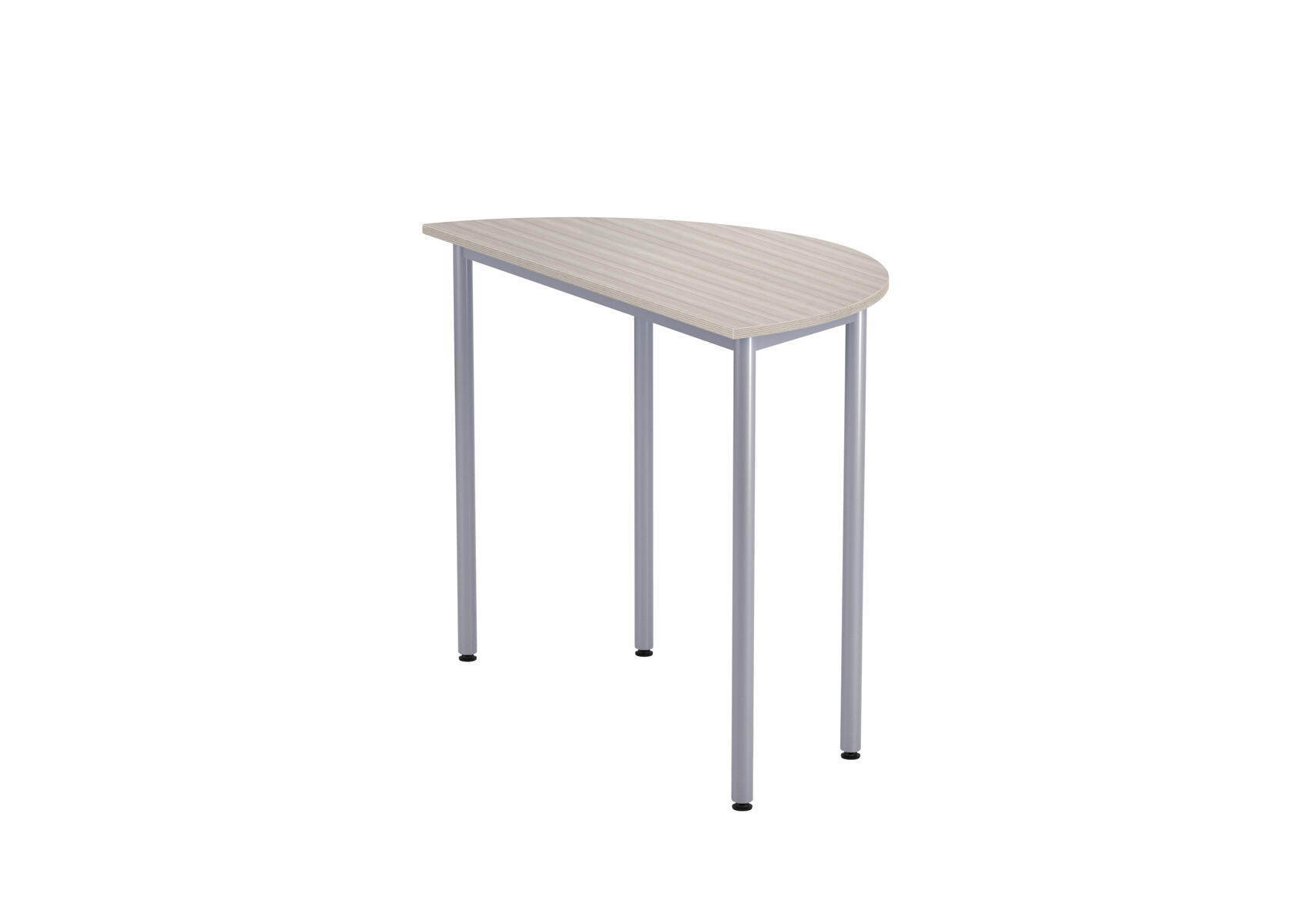 Stapelbar (max 4 st/stapel). Ljuddämpande tassar. Upphängningsbar på bord. Reglerbar fotbräda i 3 fasta lägen. Sitthöjd 50 cm. Sitsmått: B36xD35 cm. Totaldjupet på stativet är 54 cm. Vikt 4,6 kg. Sits och rygg i högtryckslaminat. Silverlackerat stativ, RAL 9006.