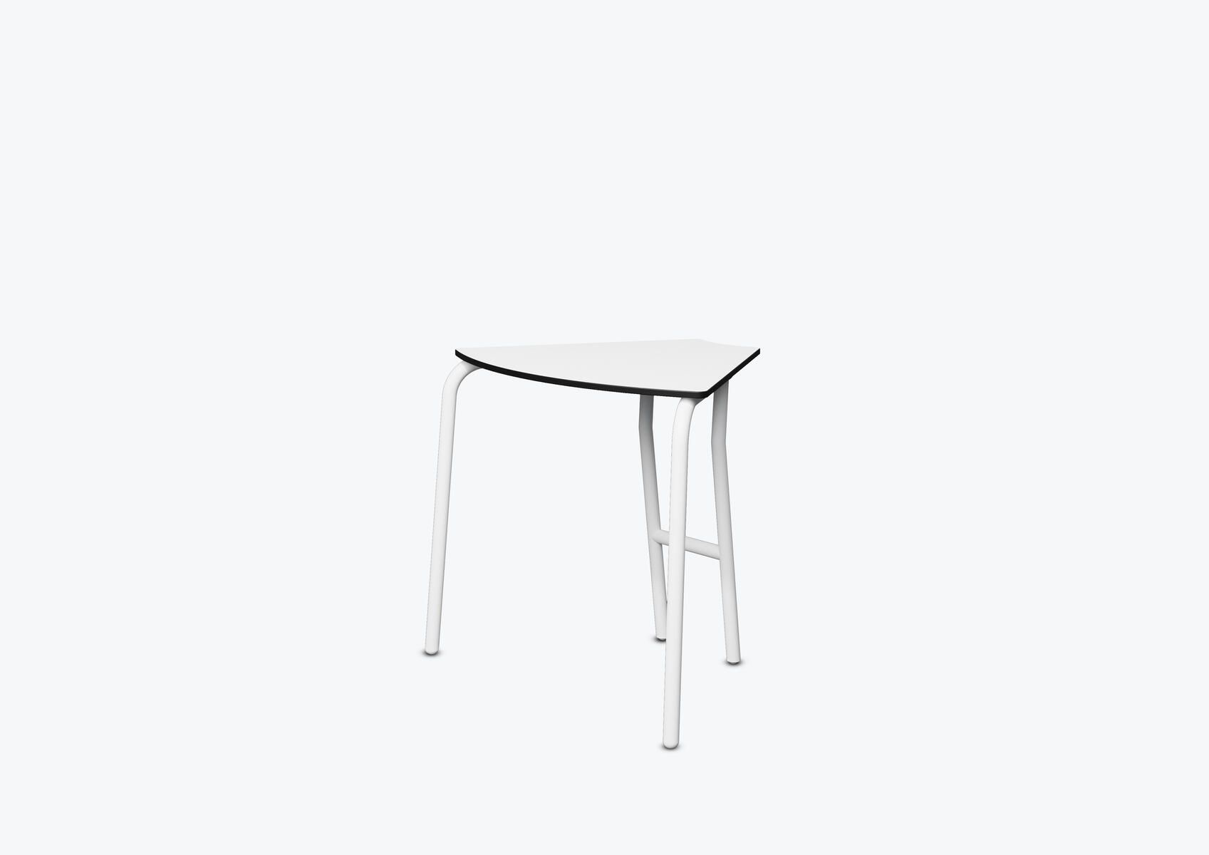 Flexibelt elevbord som lätt anpassas efter olika lärsituationer och lokaler. Bordsskivan är triangelformad i 60° och 6 bord tillsammans bildar en cirkel. I centrum finns utrymme för en Powerhub. Bordet har infällda hjul framtill för att underlätta förflyttning. Tvärstag som fungerar som fotstöd. Om borden ska ställas undan kan skivan fällas upp för att spara utrymme. Skiva i kompaktlaminat och metallstativ i RAL 9003. Skivans mått: B76x60 cm. Testad och godkänd enligt standard EN 1729-1 & 2.