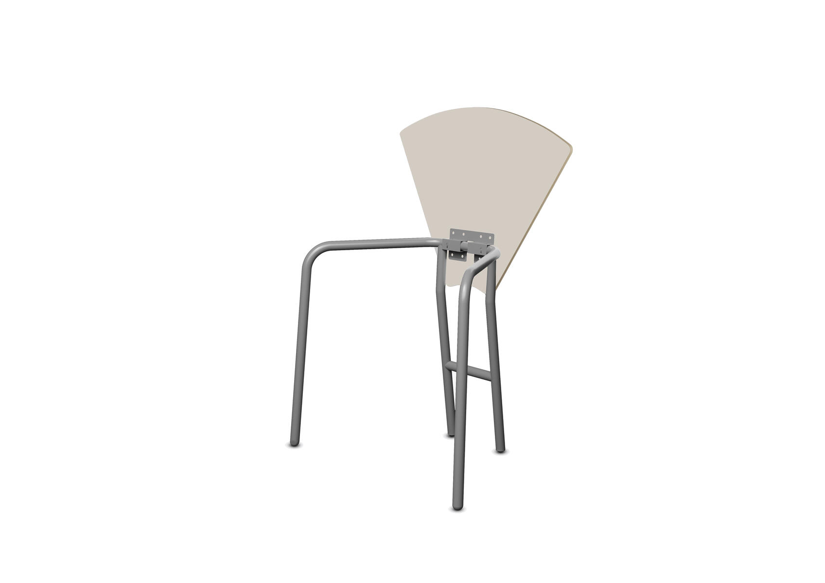 Flexibelt elevbord som lätt anpassas efter olika lärsituationer och lokaler. Bordsskivan är triangelformad i 60° och 6 bord tillsammans bildar en cirkel. I centrum finns utrymme för en Powerhub. Bordet har infällda hjul framtill för att underlätta förflyttning. Tvärstag som fungerar som fotstöd. Om borden ska ställas undan kan skivan fällas upp för att spara utrymme. Skiva i kompaktlaminat och metallstativ i RAL 9006. Skivans mått: B76x60 cm. Testad och godkänd enligt standard EN 1729-1 & 2.