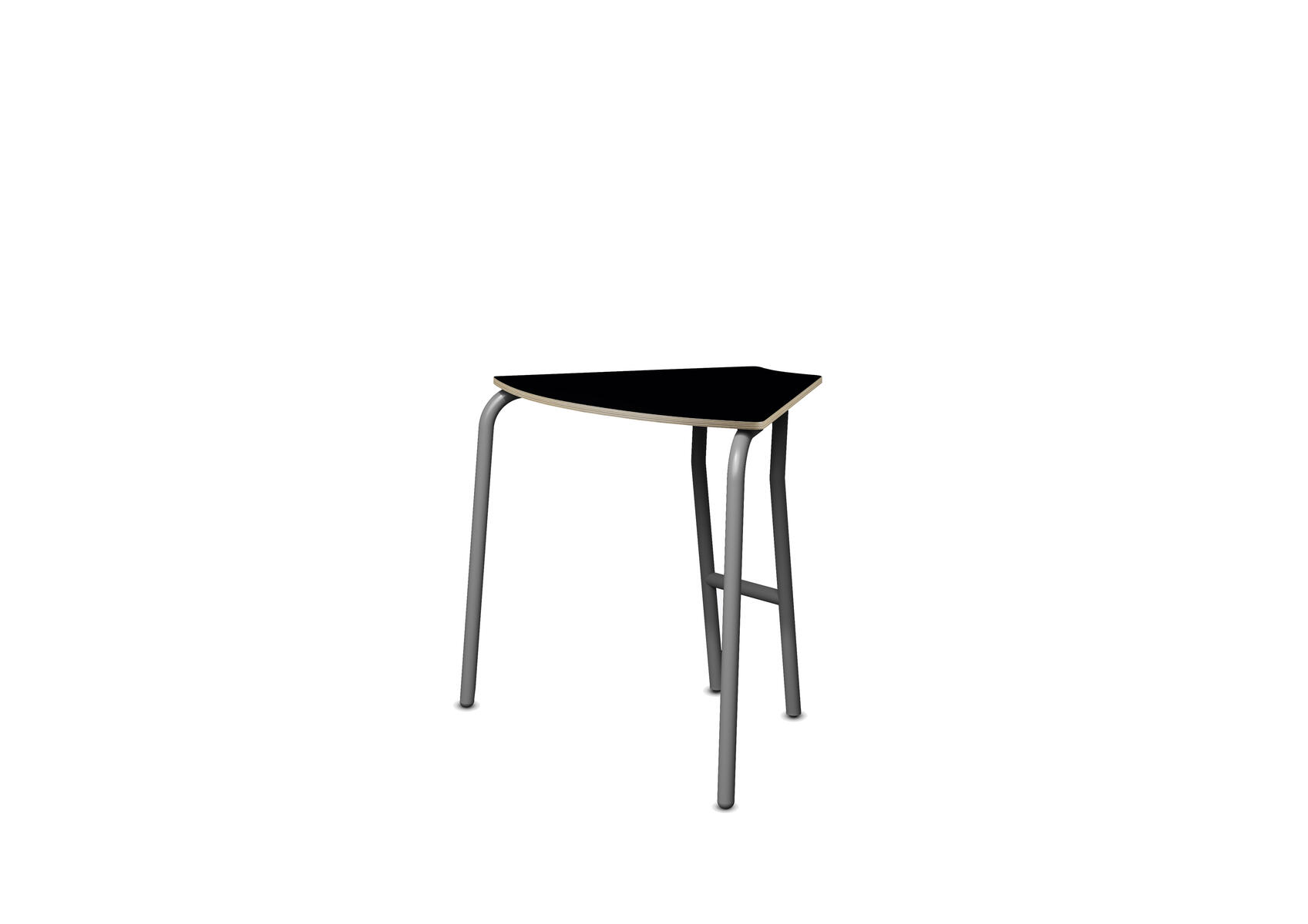 Flexibelt elevbord som lätt anpassas efter olika lärsituationer och lokaler. Bordsskivan är triangelformad i 60° och 6 bord tillsammans bildar en cirkel. I centrum finns utrymme för en Powerhub. Bordet har infällda hjul framtill för att underlätta förflyttning. Tvärstag som fungerar som fotstöd. Om borden ska ställas undan kan skivan fällas upp för att spara utrymme. Skiva i plywood belagd med högtryckslaminat och metallstativ i RAL 9005. Skivans mått: B76x60 cm. Testad och godkänd enligt standard EN 1729-1 & 2.