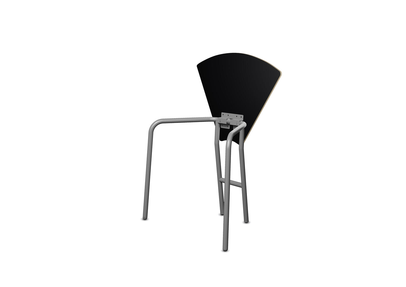 Flexibelt elevbord som lätt anpassas efter olika lärsituationer och lokaler. Bordsskivan är triangelformad i 60° och 6 bord tillsammans bildar en cirkel. I centrum finns utrymme för en Powerhub. Bordet har infällda hjul framtill för att underlätta förflyttning. Tvärstag som fungerar som fotstöd. Om borden ska ställas undan kan skivan fällas upp för att spara utrymme. Skiva i kompaktlaminat och metallstativ i RAL 9005. Skivans mått: B76x60 cm. Testad och godkänd enligt standard EN 1729-1 & 2.