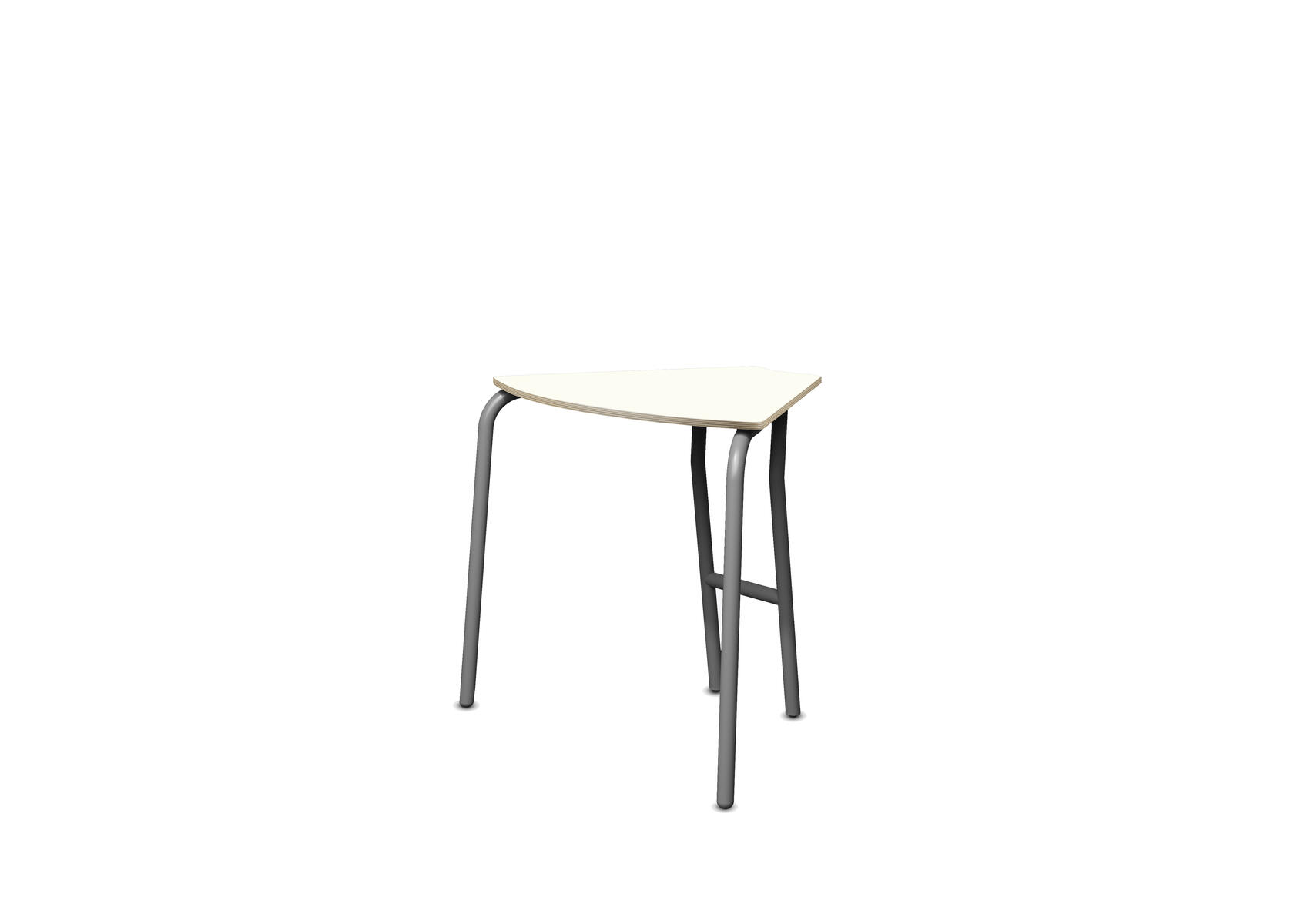 Flexibelt elevbord som lätt anpassas efter olika lärsituationer och lokaler. Bordsskivan är triangelformad i 60° och 6 bord tillsammans bildar en cirkel. I centrum finns utrymme för en Powerhub. Bordet har infällda hjul framtill för att underlätta förflyttning. Tvärstag som fungerar som fotstöd. Om borden ska ställas undan kan skivan fällas upp för att spara utrymme. Skiva i plywood belagd med högtryckslaminat och metallstativ i RAL 9006. Skivans mått: B76x60 cm. Testad och godkänd enligt standard EN 1729-1 & 2.