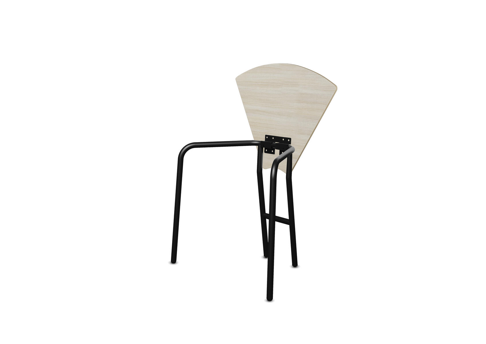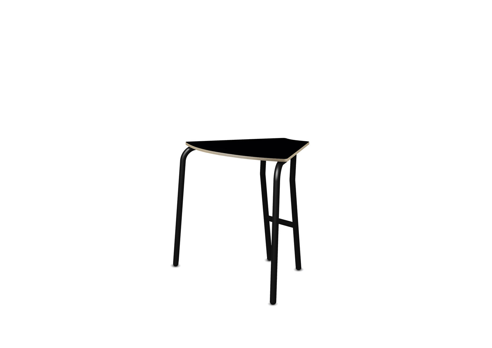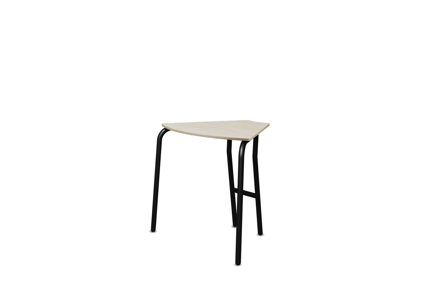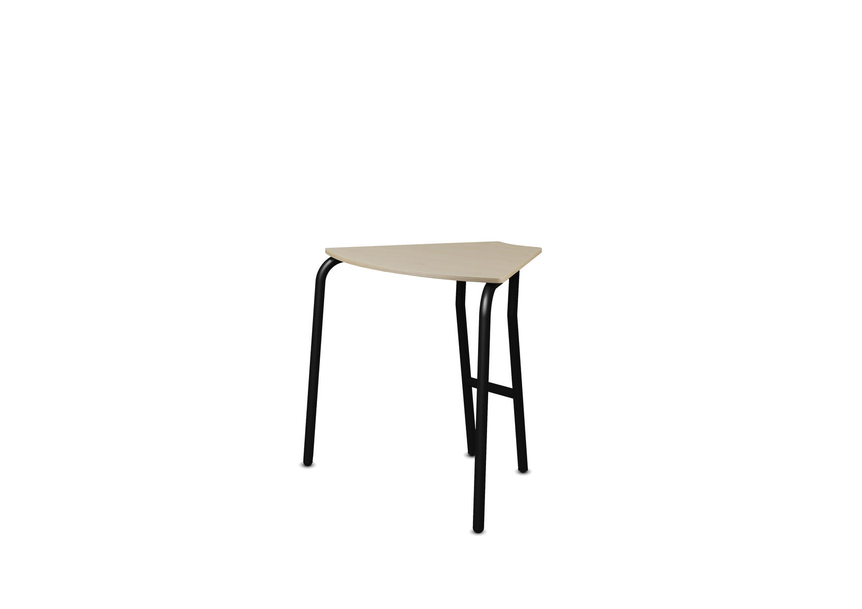 Flexibelt elevbord som lätt anpassas efter olika lärsituationer och lokaler. Bordsskivan är triangelformad i 60° och 6 bord tillsammans bildar en cirkel. I centrum finns utrymme för en Powerhub. Bordet har infällda hjul framtill för att underlätta förflyttning. Tvärstag som fungerar som fotstöd. Om borden ska ställas undan kan skivan fällas upp för att spara utrymme. Skiva i plywood belagd med högtryckslaminat och metallstativ i RAL 9005. Skivans mått: B76x60 cm. Testad och godkänd enligt standard EN 1729-1 & 2.