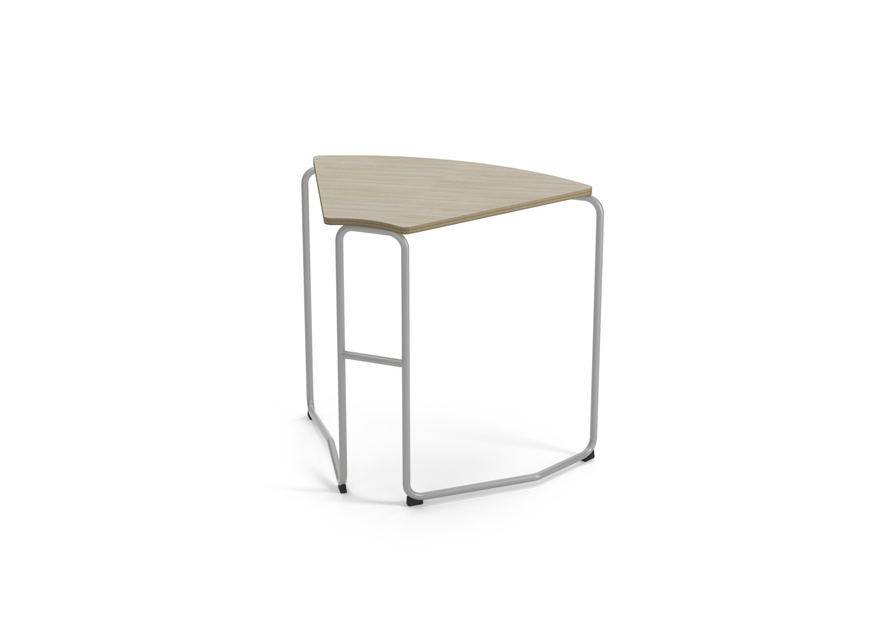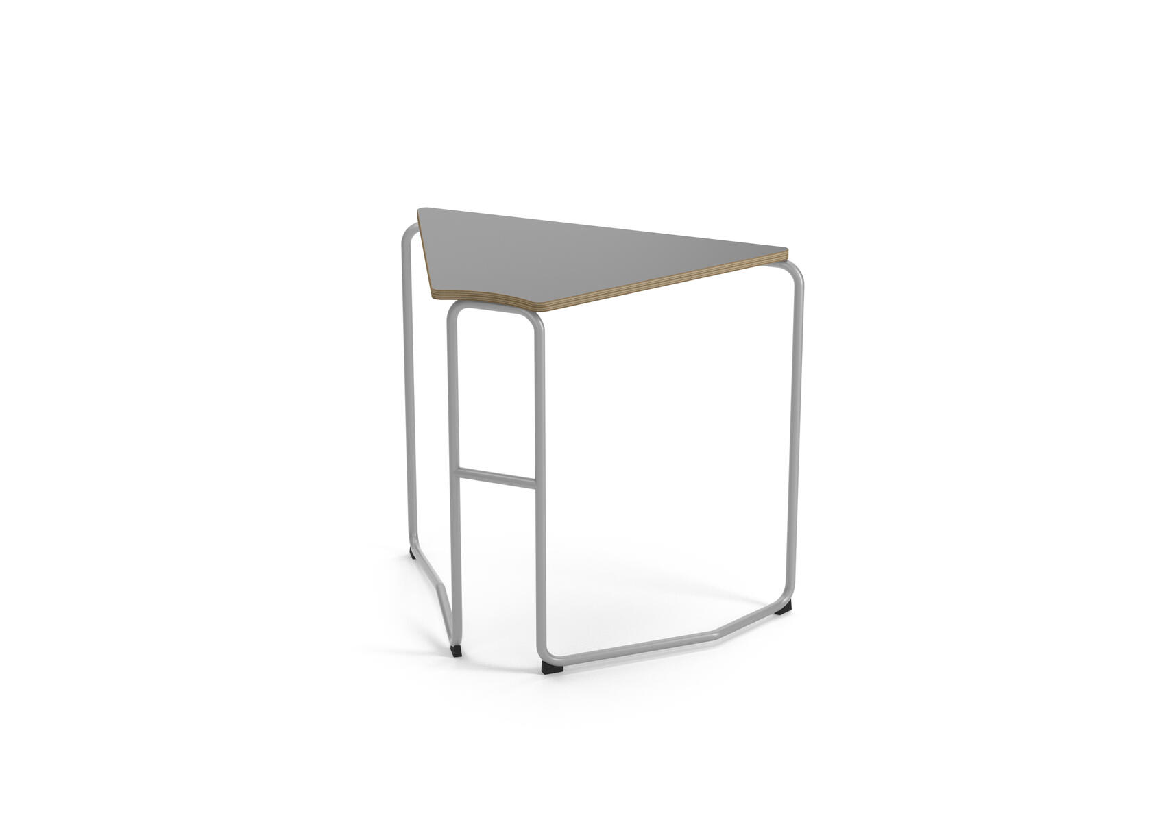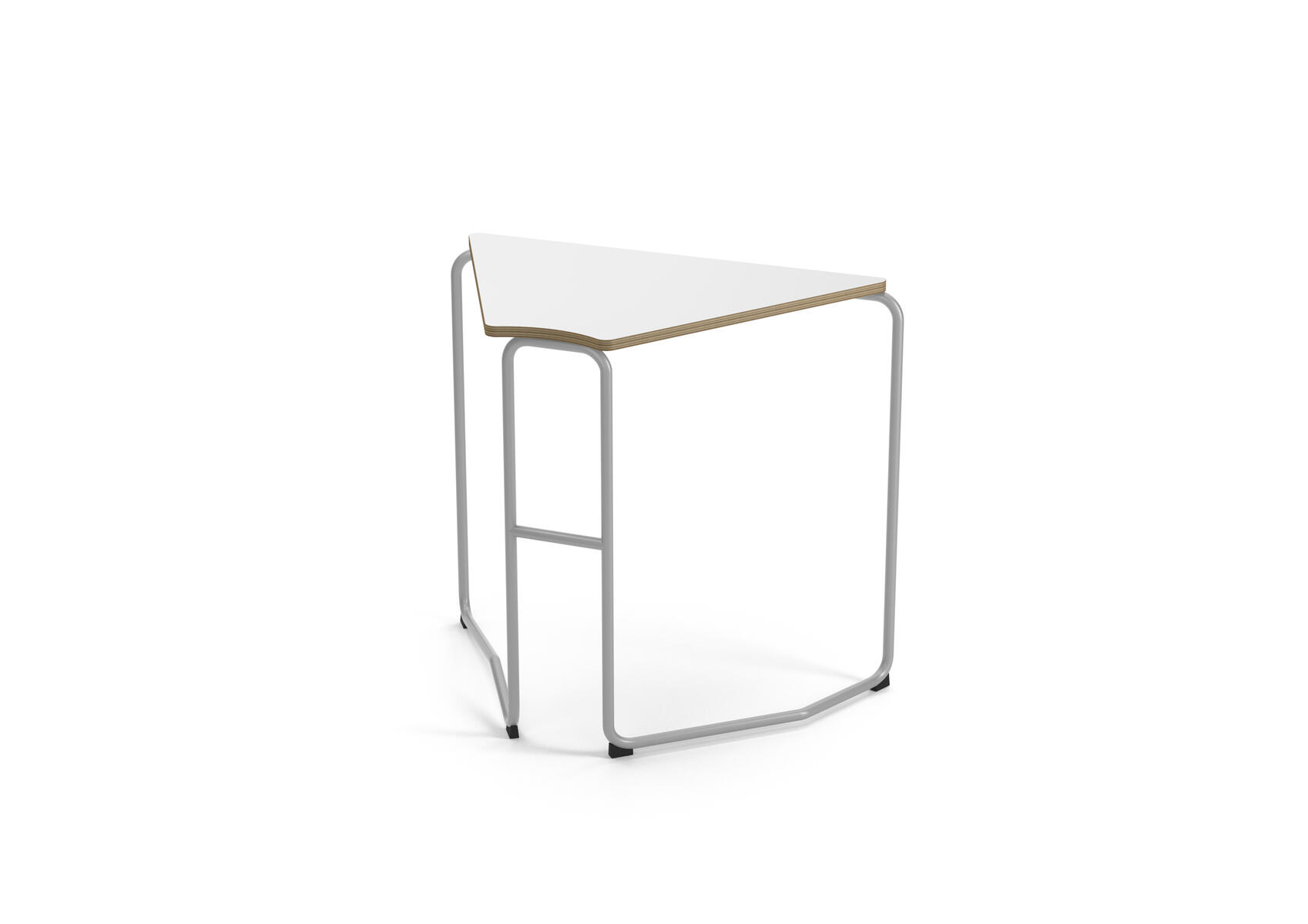 1 st. Flexibelt elevbord från Zioxi som lätt anpassas efter olika lärsituationer och lokaler. Bordsskivan är triangelformad i 60° och 6 bord tillsammans bildar en cirkel. I centrum finns utrymme för en Powerhub. Bordet har hjul framtill för att underlätta förflyttning. Om bordet ska ställas undan kan skivan fällas upp för att spara utrymme. Mått: L76xB60xH72 cm. Skiva i vitt kompaktlaminat och metallstativ i RAL 9006.