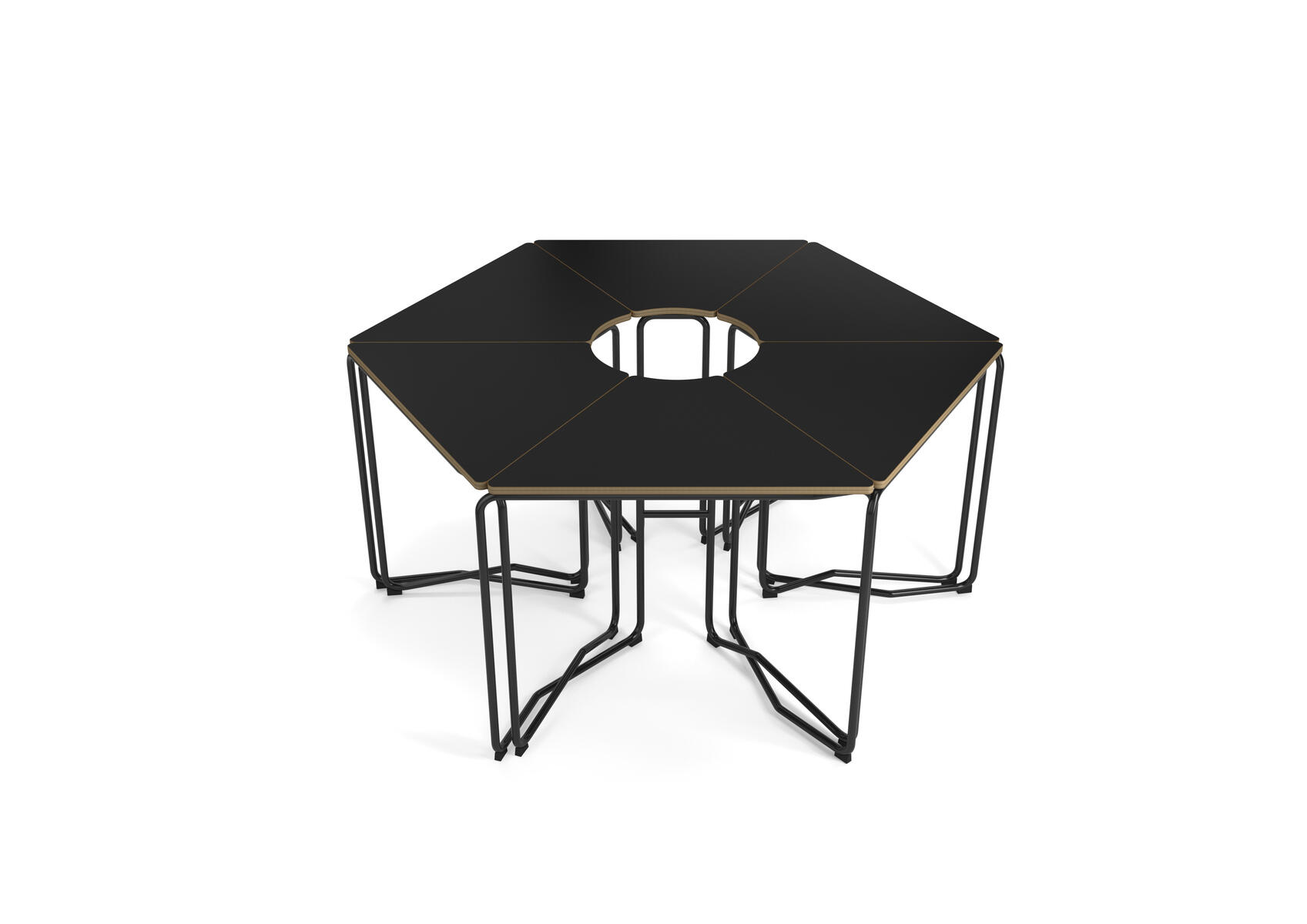 Staplingsbart och lätt elevbord som är enkelt att flytta. Borden kan kopplas ihop med varandra på sidorna. 6 bord bildar en hexagon. Skiva i högtryckslaminat. Svart skiva är i Fenixlaminat som är extra tåligt mot repor och fingeravtryck.