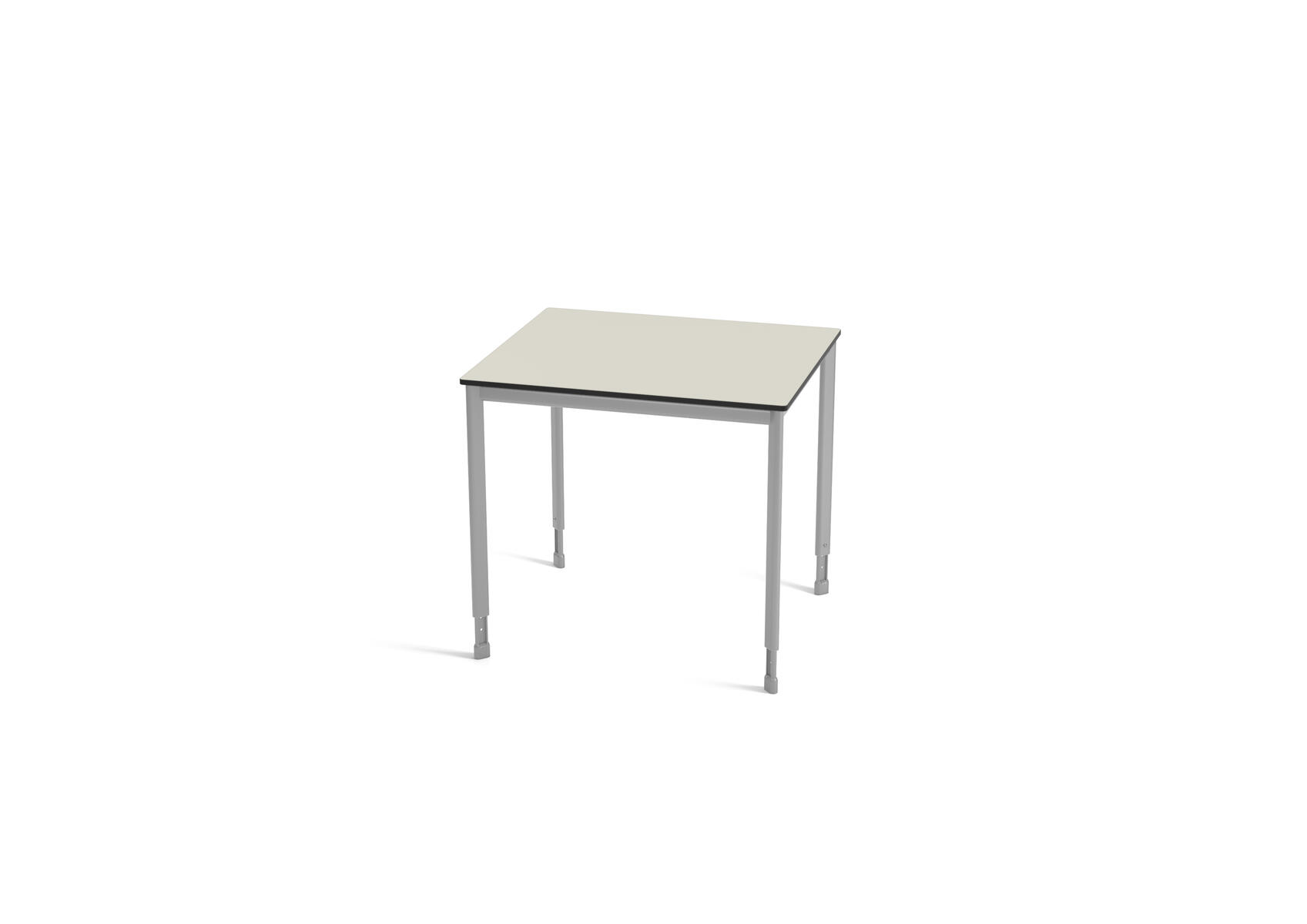 Skiva i plywood med laminat. Helsvetsat stativ i RAL 9006. Ställbart i höjderna 57-60-63-66-69 cm.