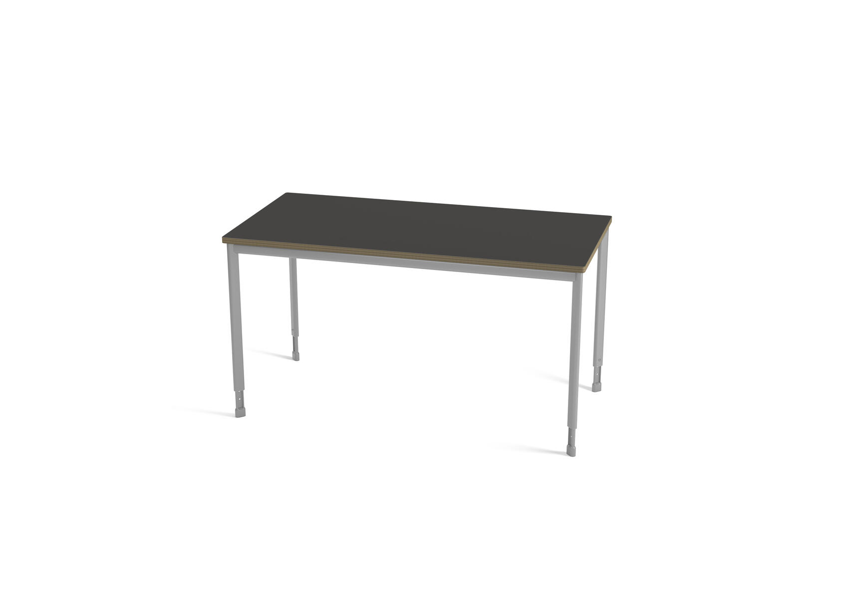 Skiva i kompaktlaminat med svart kant. Helsvetsat stativ i RAL 9006. Ställbart i höjderna 69-72-75-78-81 cm.