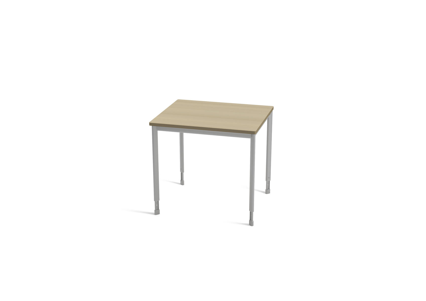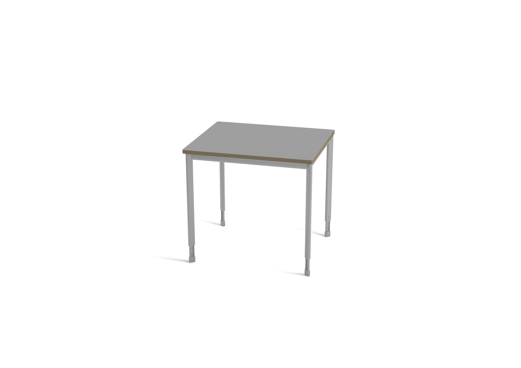 Skiva i plywood med laminat. Helsvetsat stativ i RAL 9006. Ställbart i höjderna 57-60-63-66-69 cm.
