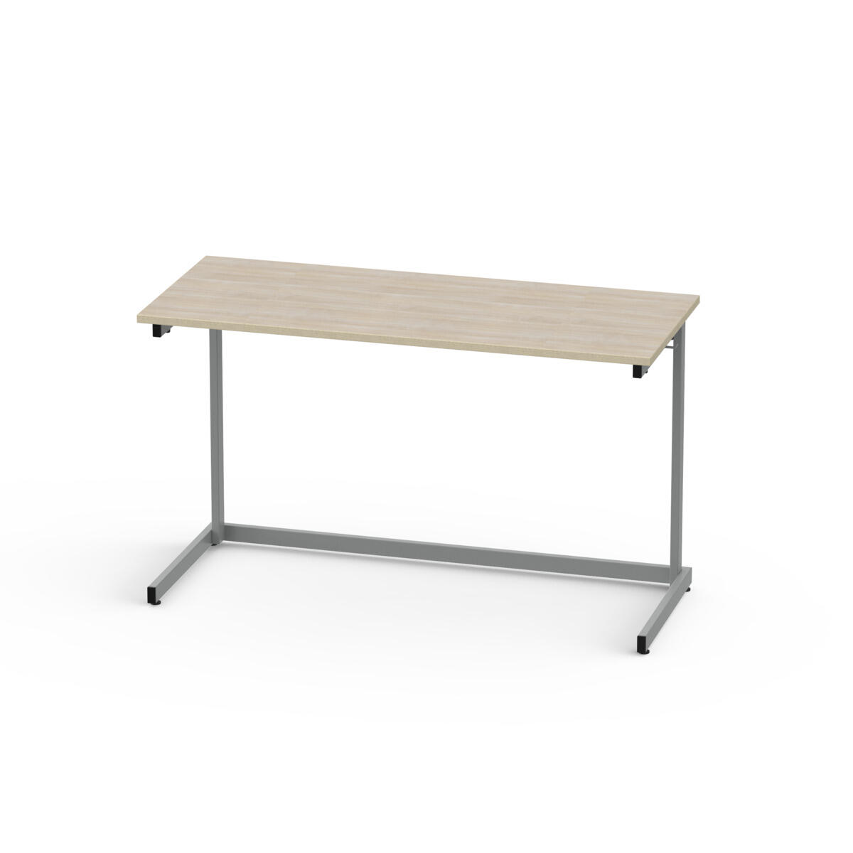 L-formad design på stativet gör det möjligt att stapla borden (max 6 st) på varandra. Helsvetsat stativ i silver, RAL 9006. Bordsskiva i ljuddämpande högtryckslaminat. Fyra ställbara fötter. Väskkrok. Välj till monterade lådskenor under bordsskivan för förvaringslåda, art.nr 23416.