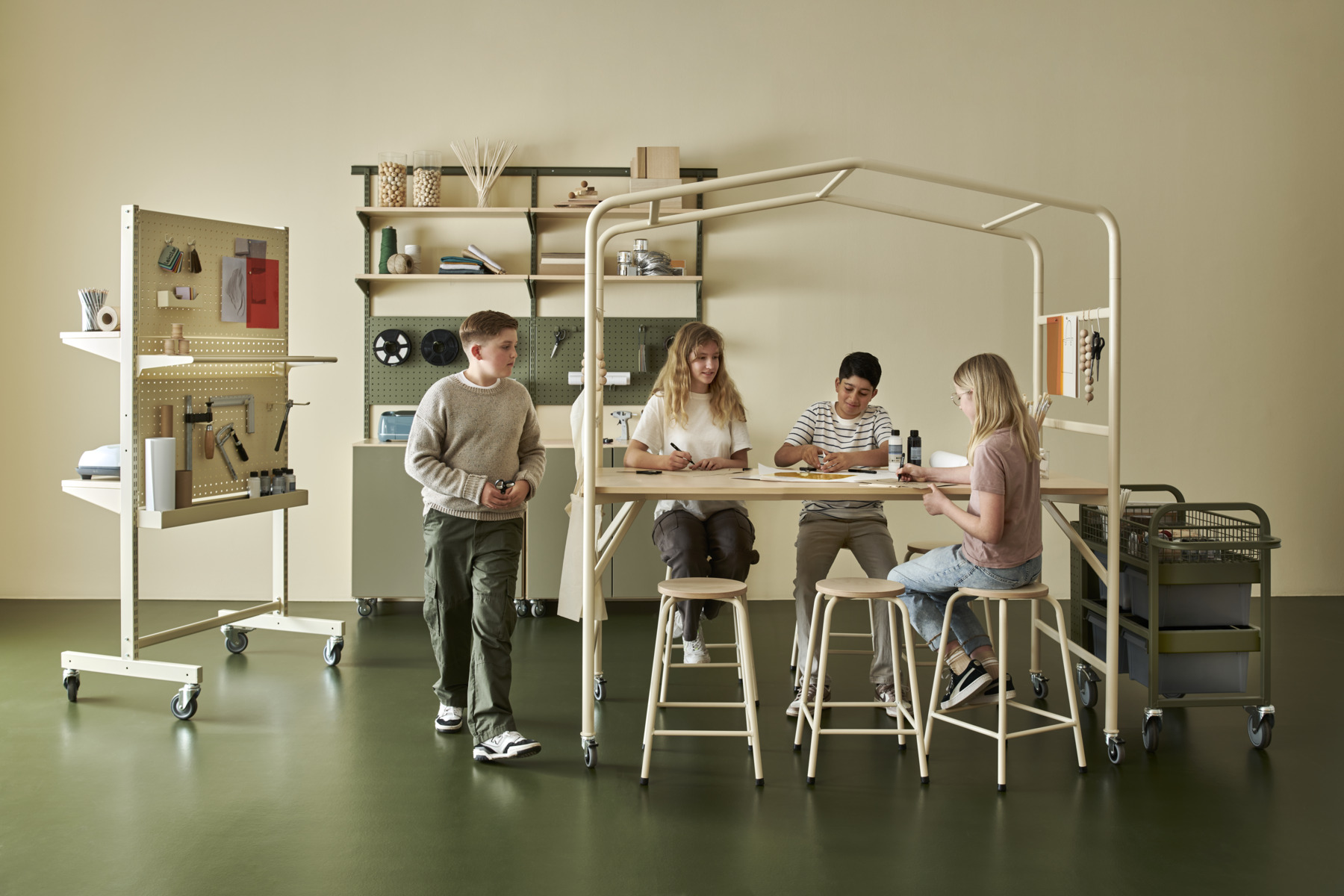 Bord MeetUs är ett mobilt stämningsskapande bord för samarbete i grupp, kreativt arbete eller måltider i matsalen. Pulverlackerat stativ i vitt, RAL 9003. Bordsskiva i tåligt högtryckslaminat. Mått bordsskiva: 180x80 cm. Höjd upp till bordsskiva 72 cm. Bromsade hjul.