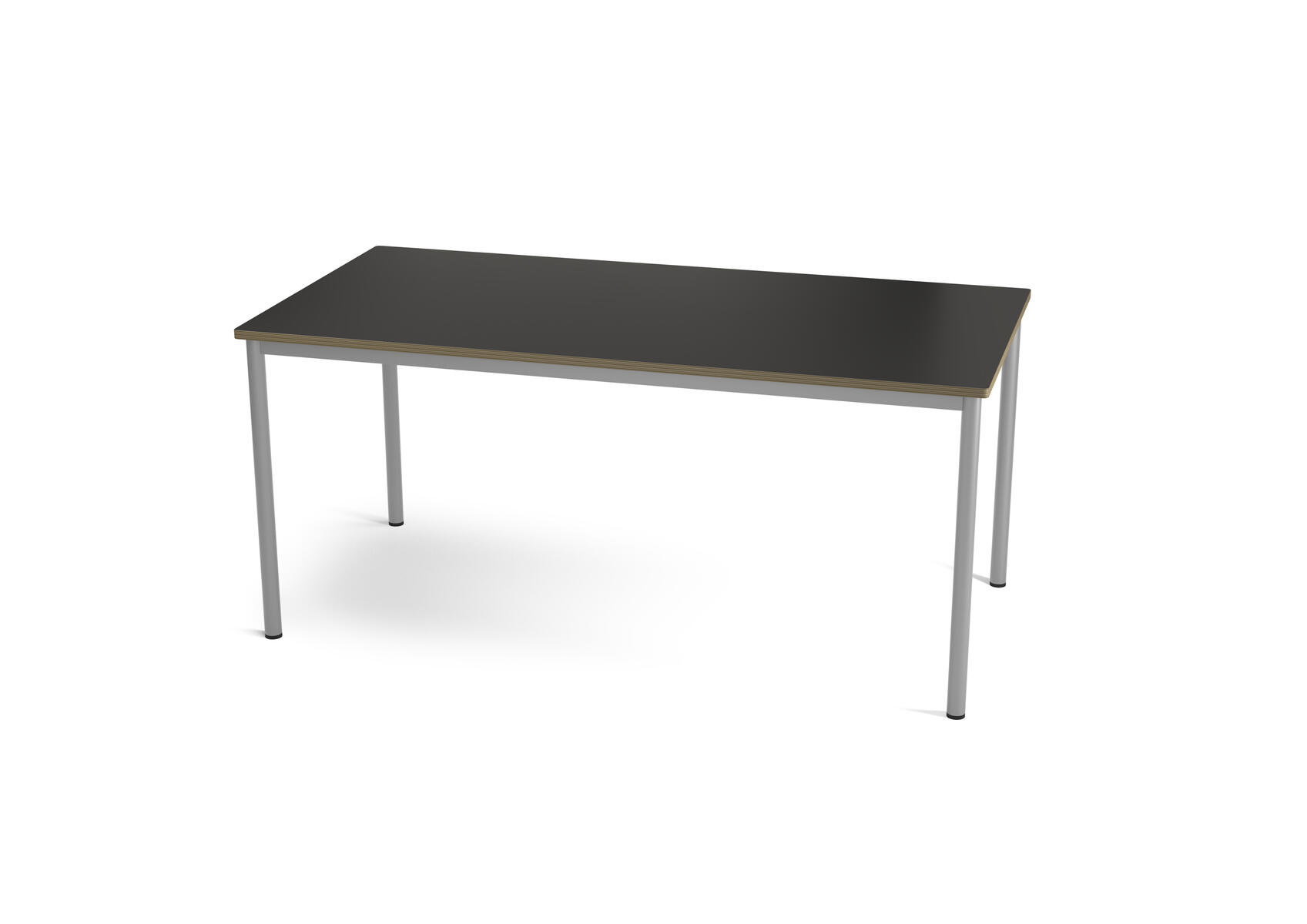 Skiva i plywood med högtryckslaminat. Helsvetsat stativ i RAL 9006. Välj antingen 2 ben med ställbar fot och 2 ben med hjul, eller alla ben med fast fot.