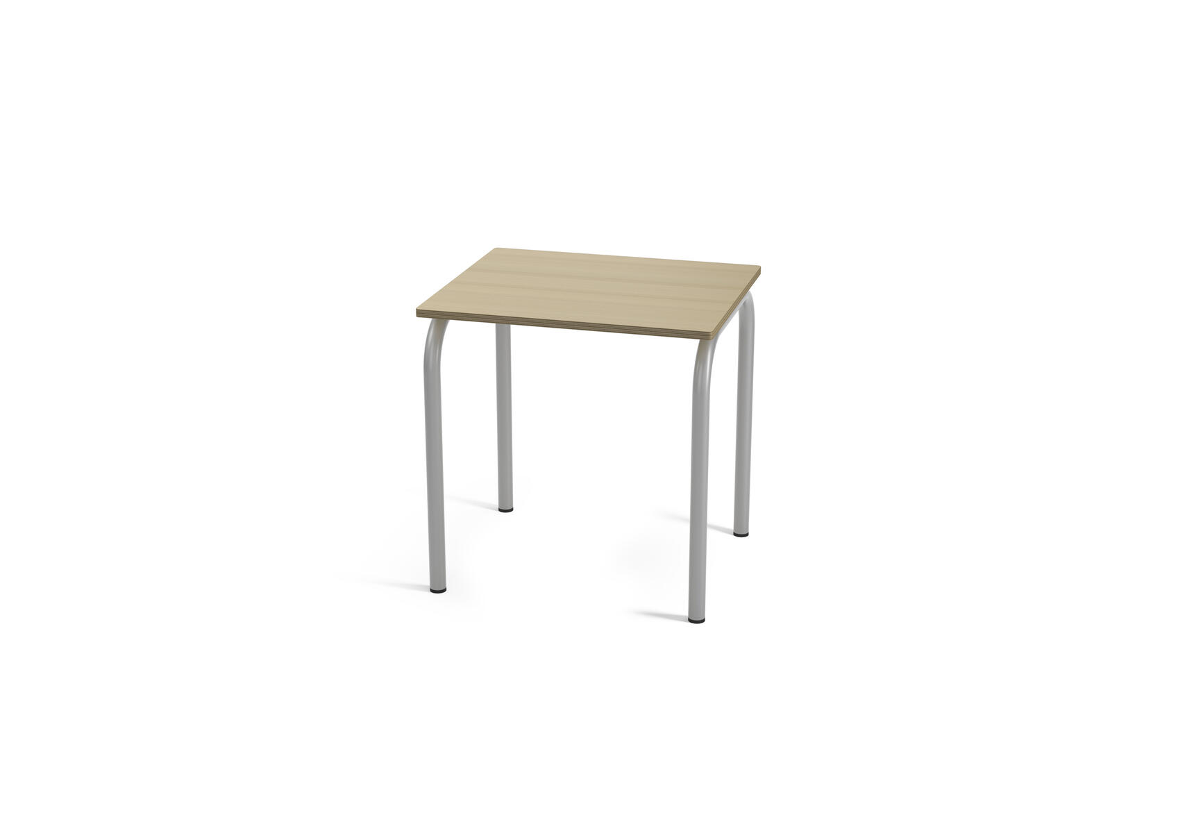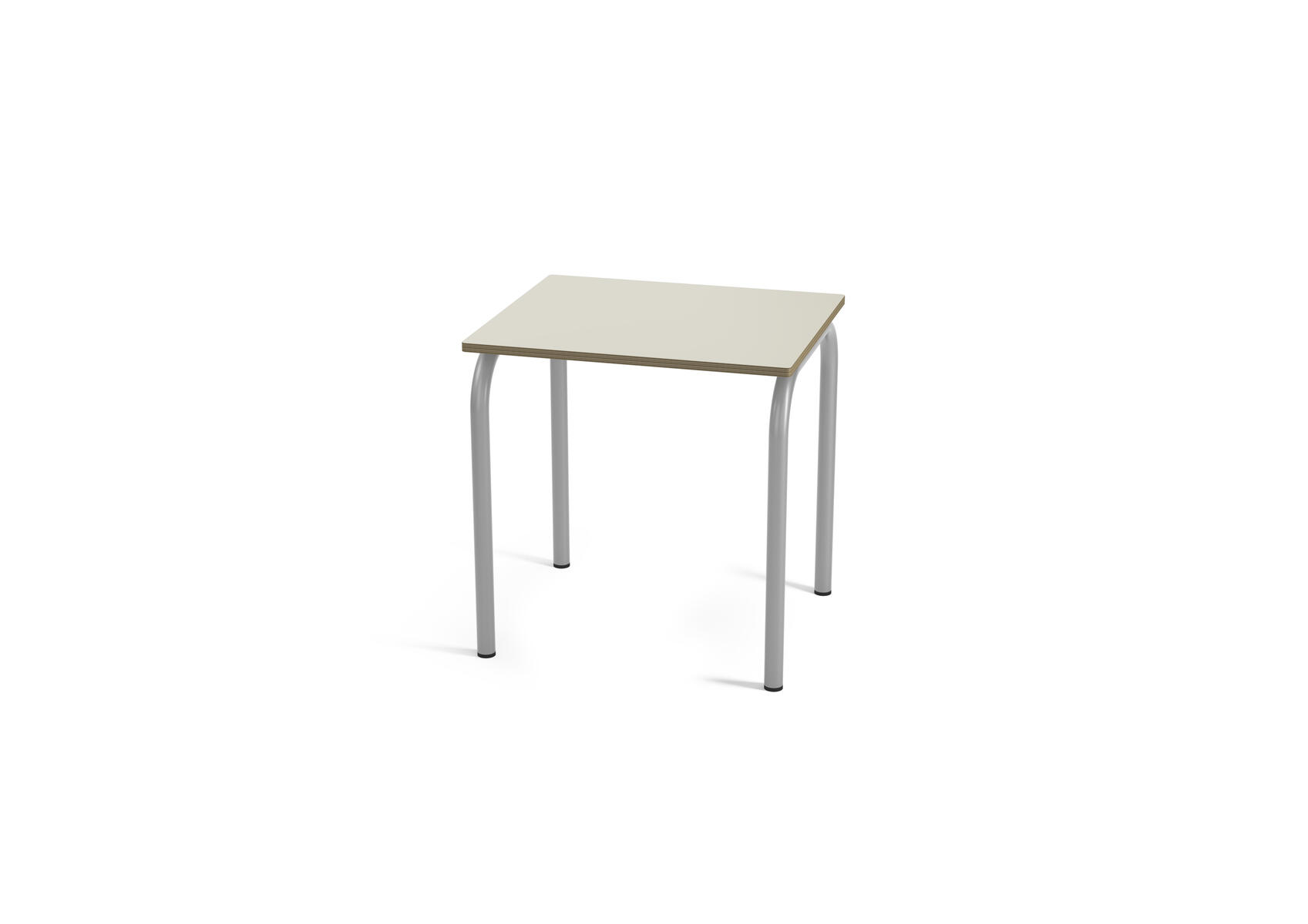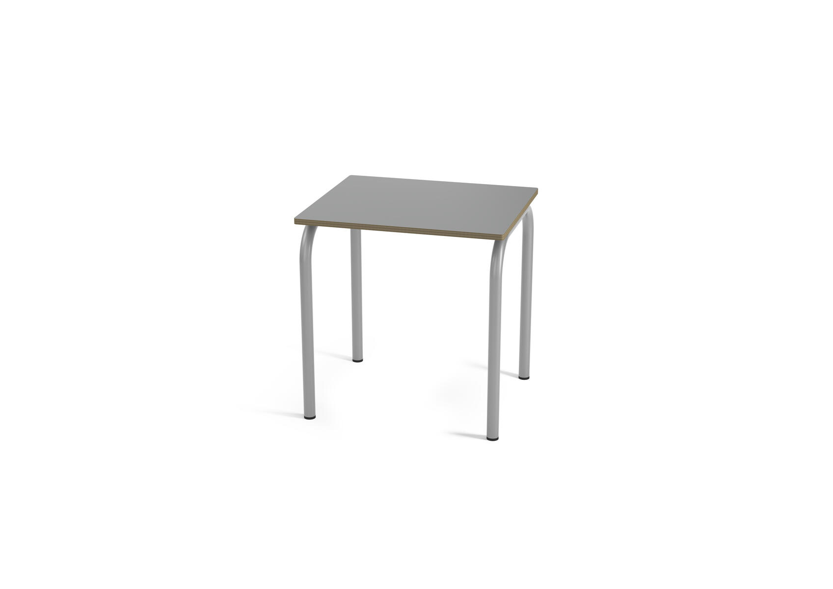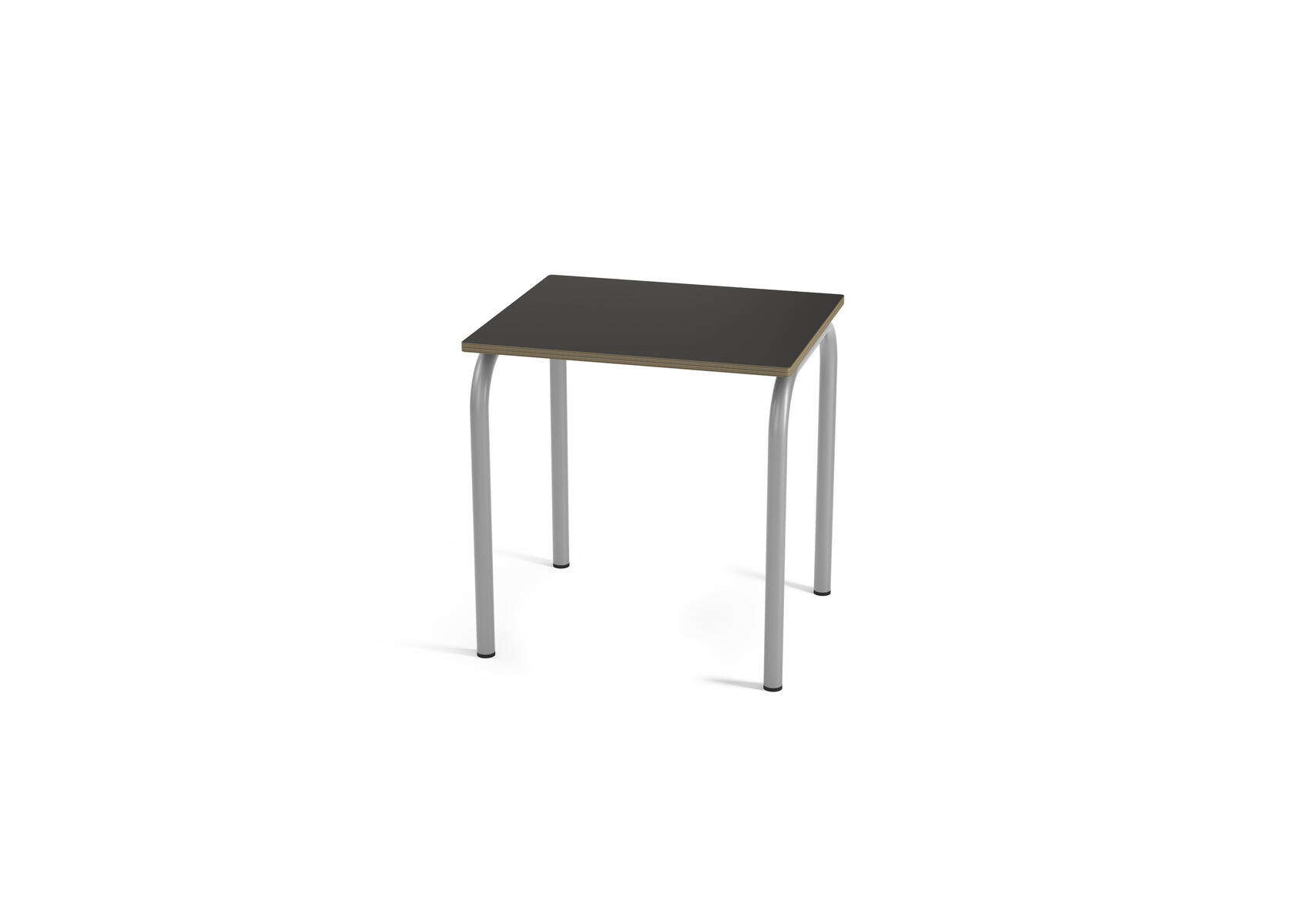 Skiva i plywood med laminat. Helsvetsat stativ i RAL 9006. Ställbart i höjderna 69-72-75-78-81 cm.