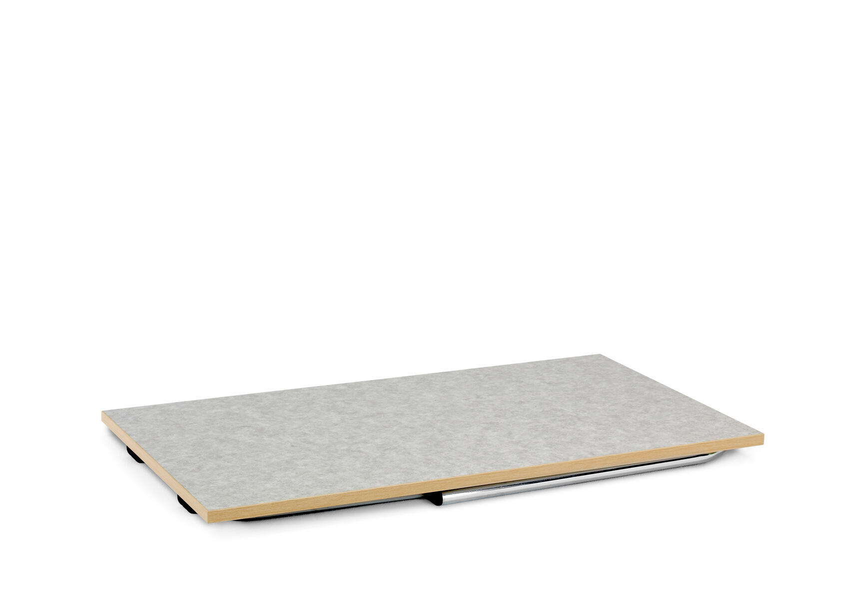 Höjd 72 cm. Skiva i ljuddämpande yta. Kantlist i ABS. Hopfällbart underrede i silver RAL 9006. Stapelhöjd 7 cm.