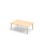 Ljuddämpande bordsskiva belagd med högtryckslaminat, vilket ger en tålig yta. Med en hörnradie på 40 mm får bordet en modern och stilren design. Benen har en rektangulär form och är tillverkade av klarlackad björkplywood som är monterade i en robust vit metallhylsa. Denna konstruktion garanterar både stabilitet och hållbarhet. Benen är något snett vinklade ut mot bordsskivans hörn. Monteringen är enkel och smidig – du behöver bara fästa metallhylsorna i de förberedda fästpunkterna i bordsskivan.