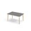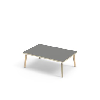 Bordsskiva belagd med akustik linoleum, vilket ger en mjuk och behaglig yta samtidigt som det bidrar till en bättre ljudmiljö. Med en hörnradie på 40 mm får bordet en modern och stilren design. Benen har en rektangulär form och är tillverkade av klarlackad björkplywood som är monterade i en robust svart metallhylsa. Denna konstruktion garanterar både stabilitet och hållbarhet. Benen är något snett vinklade ut mot bordsskivans hörn. Monteringen är enkel och smidig – du behöver bara fästa metallhylsorna i de förberedda fästpunkterna i bordsskivan.