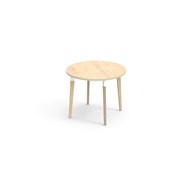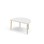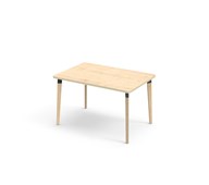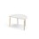 Bordsskiva belagd med laminat. Med en hörnradie på 40 mm får bordet en modern och stilren design. Benen har en rektangulär form och är tillverkade av klarlackad björkplywood som är monterade i en robust vit metallhylsa. Denna konstruktion garanterar både stabilitet och hållbarhet. Benen är något snett vinklade ut mot bordsskivans hörn. Monteringen är enkel och smidig – du behöver bara fästa metallhylsorna i de förberedda fästpunkterna i bordsskivan.