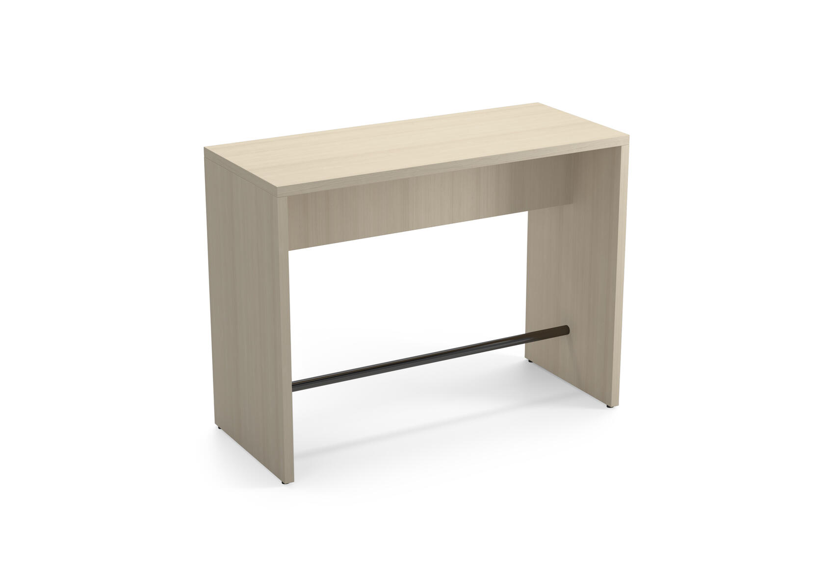 Ett robust gavelbord för till exempel caféer och korridorer. Använd som ståbord eller med höga barstolar. Fotstöd i stål, RAL 9005. Stomme av 36 mm tjocka spånskivor med direktlaminat.