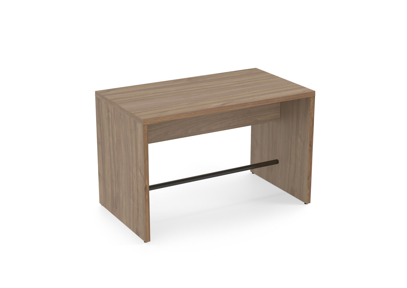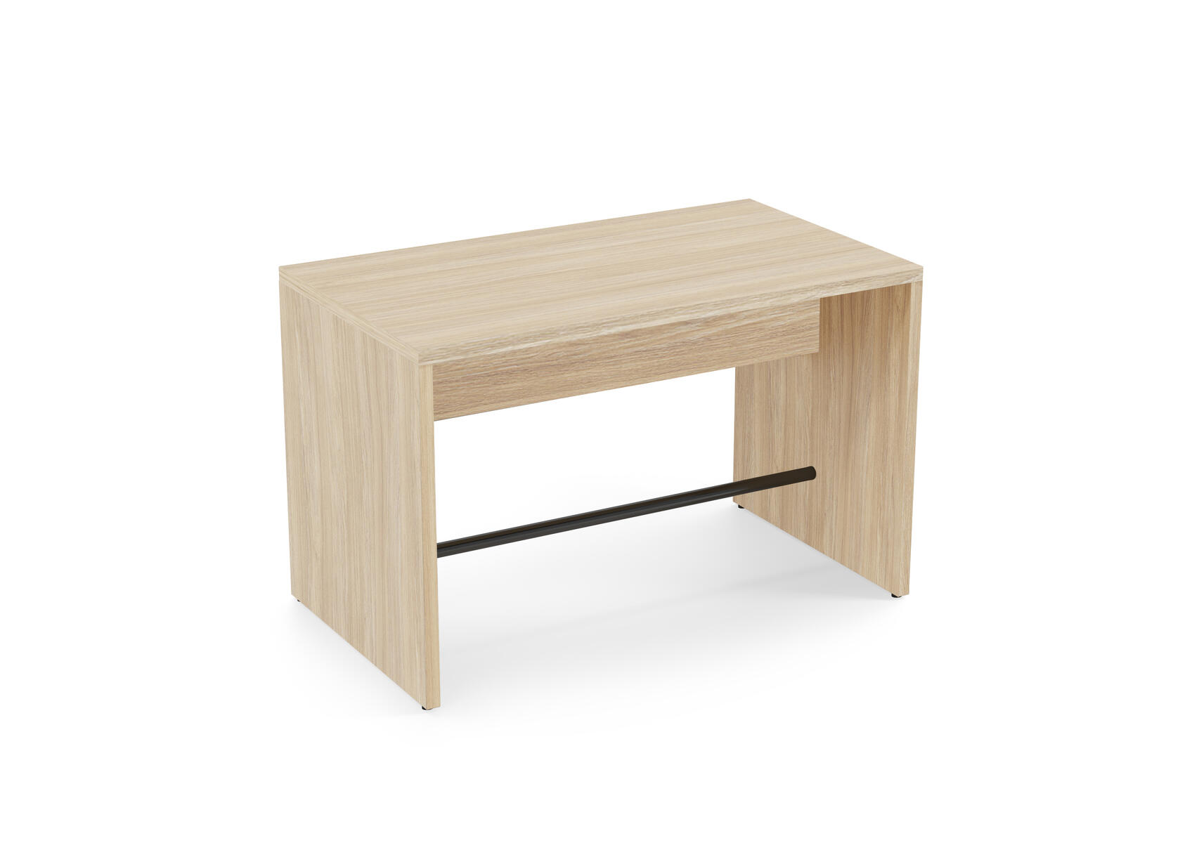 Ett robust gavelbord för till exempel caféer och korridorer. Använd som ståbord eller med höga barstolar. Fotstöd i stål, RAL 9005. Stomme av 36 mm tjocka spånskivor med direktlaminat.