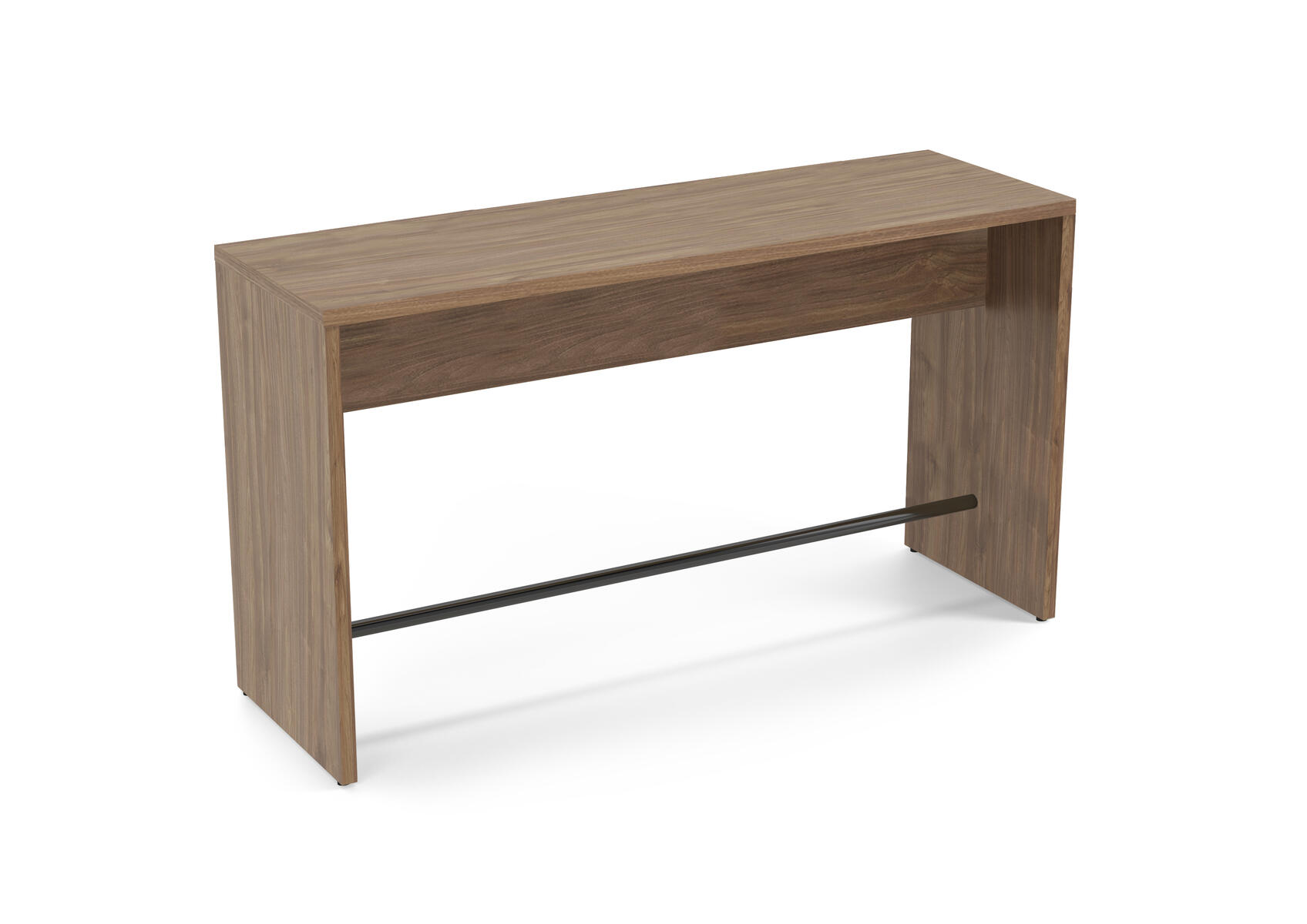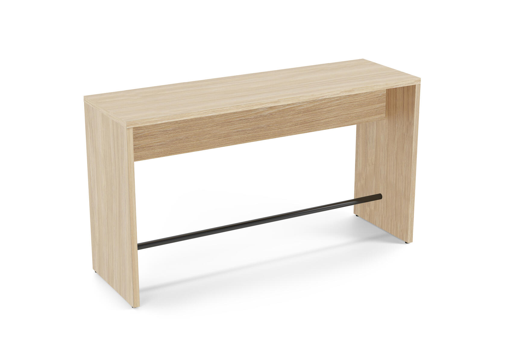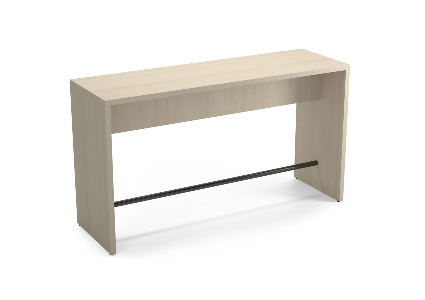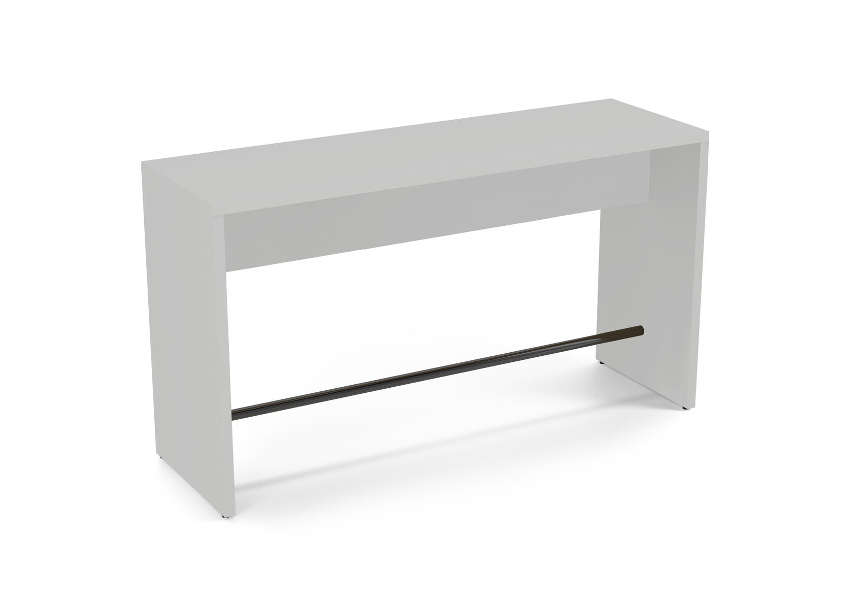 Ett robust gavelbord för till exempel caféer och korridorer. Använd som ståbord eller med höga barstolar. Fotstöd i stål, RAL 9005. Stomme av 36 mm tjocka spånskivor med direktlaminat.
