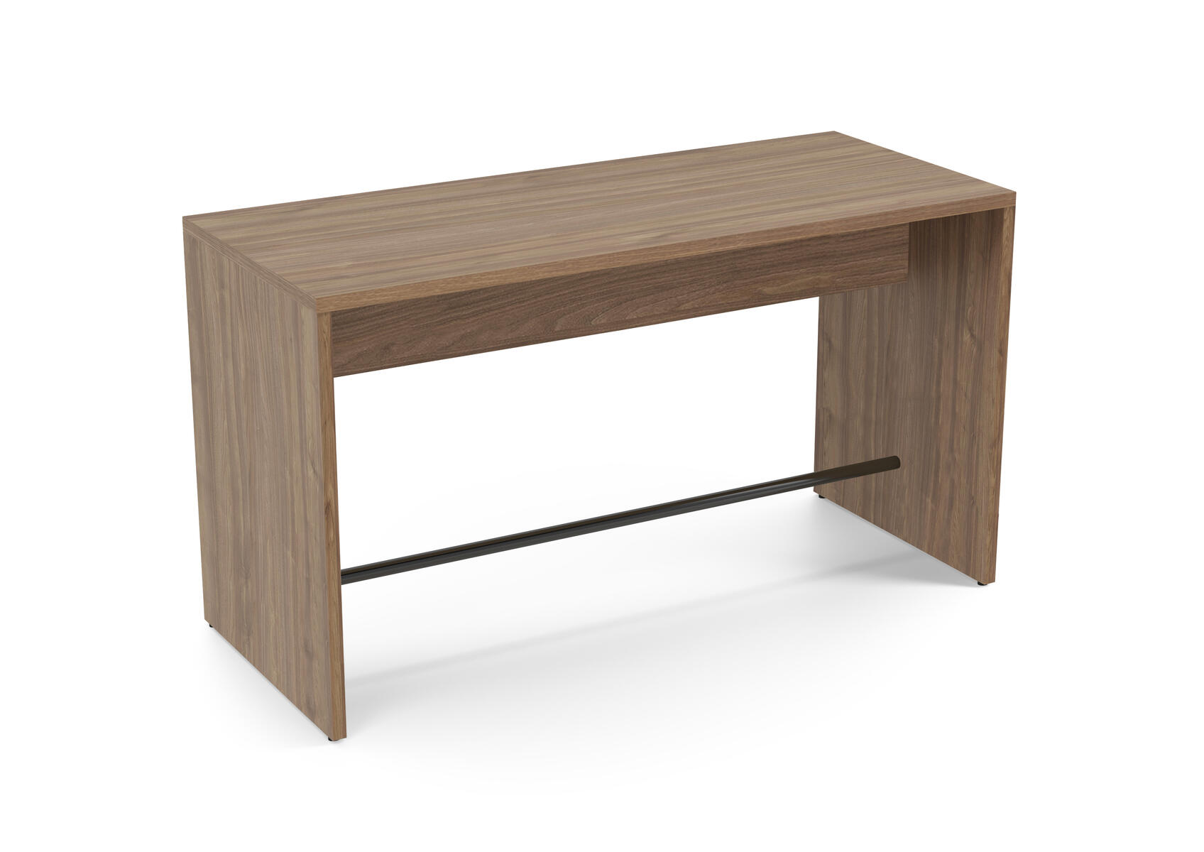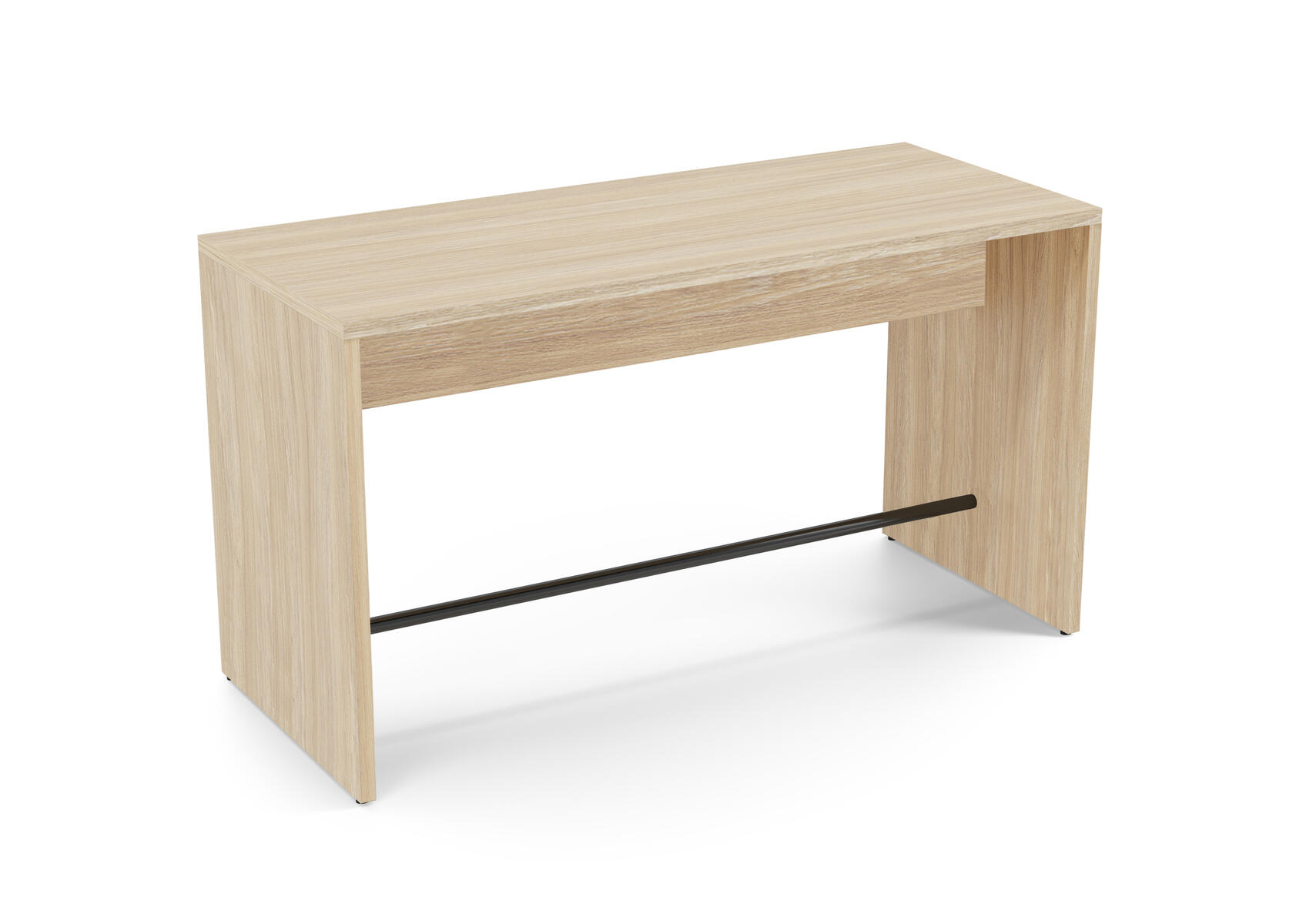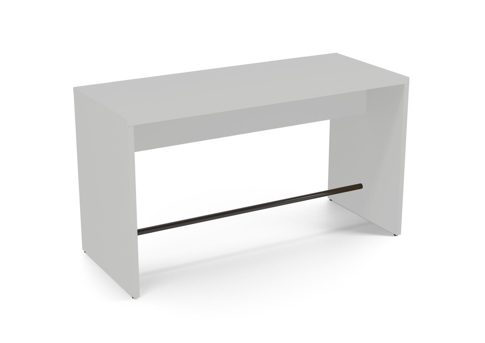Ett robust gavelbord för till exempel caféer och korridorer. Använd som ståbord eller med höga barstolar. Fotstöd i stål, RAL 9005. Stomme av 36 mm tjocka spånskivor med direktlaminat.
