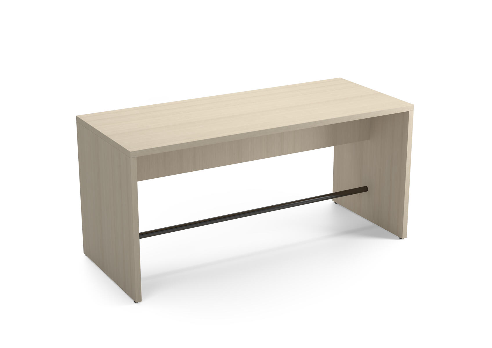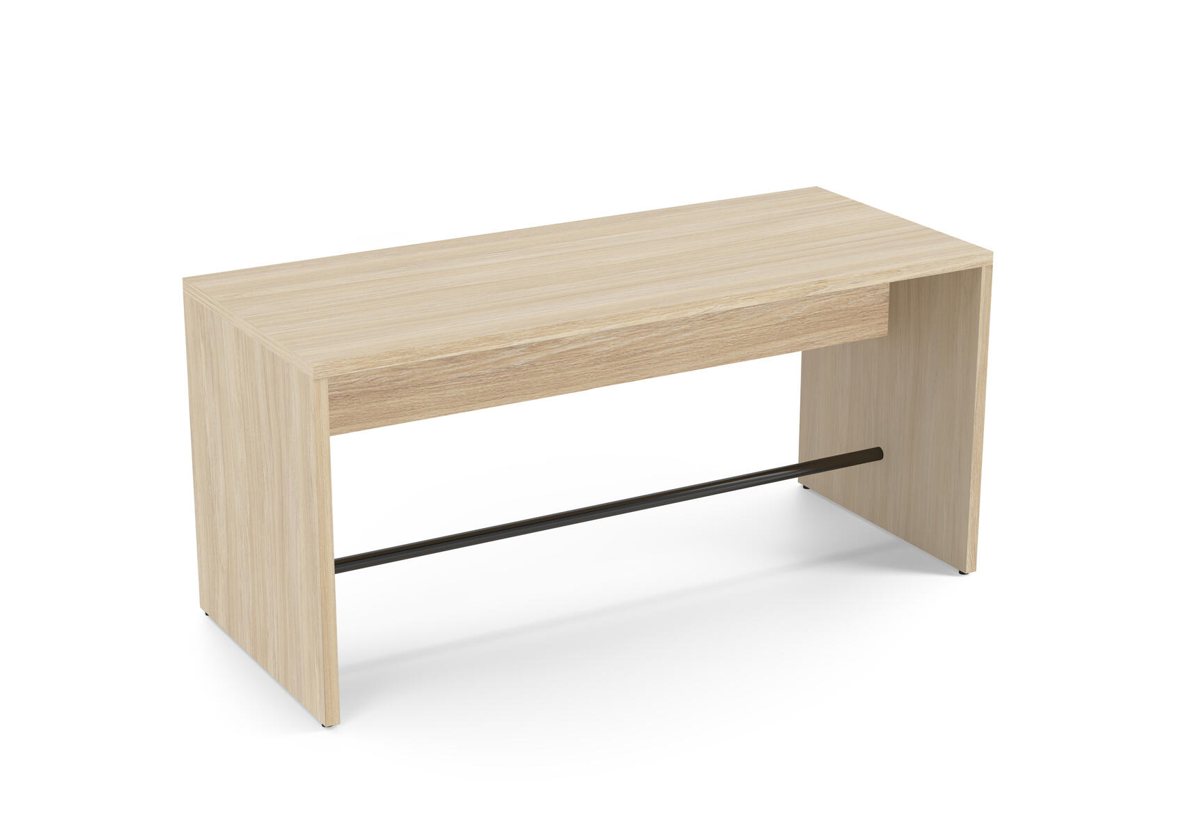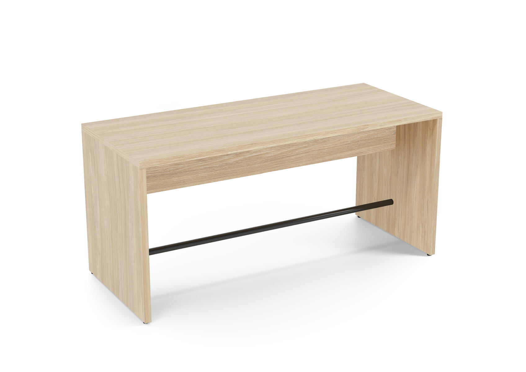Ett robust gavelbord för till exempel caféer och korridorer. Använd som ståbord eller med höga barstolar. Fotstöd i stål, RAL 9005. Stomme av 36 mm tjocka spånskivor med direktlaminat.