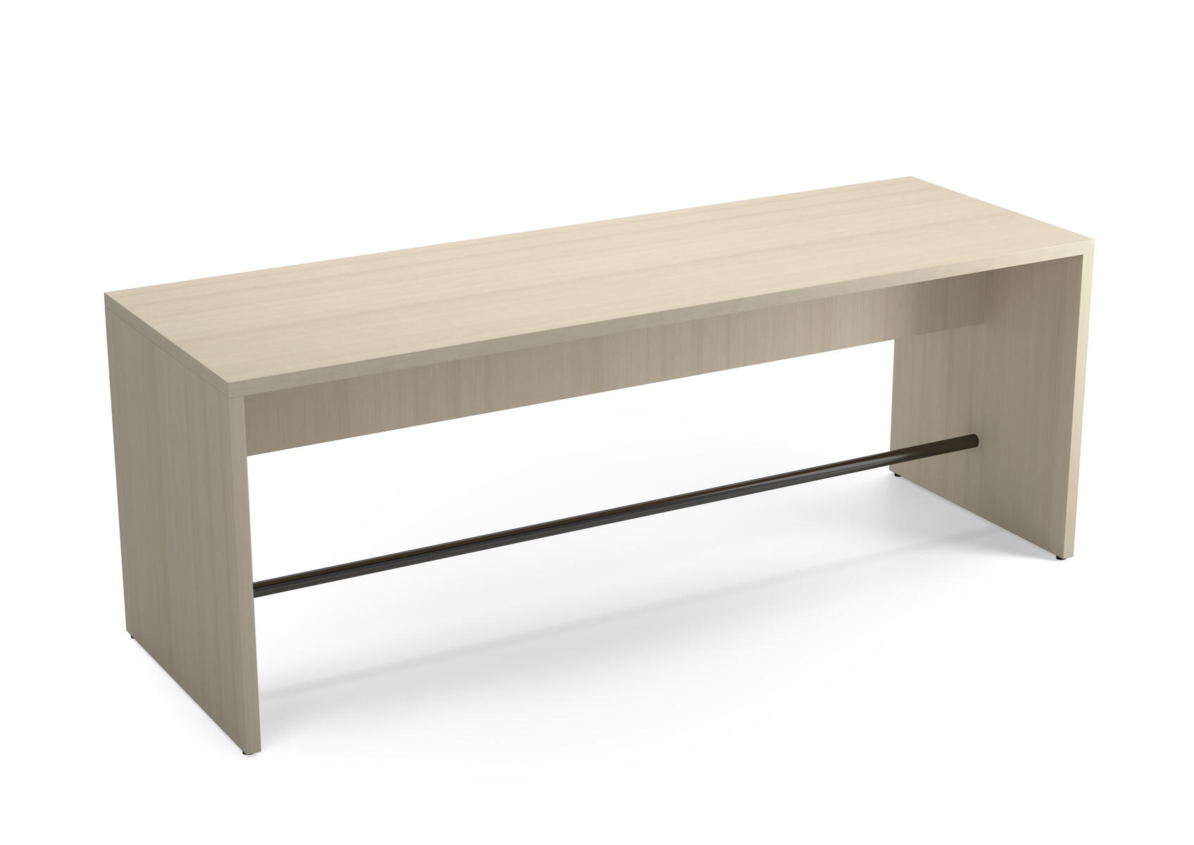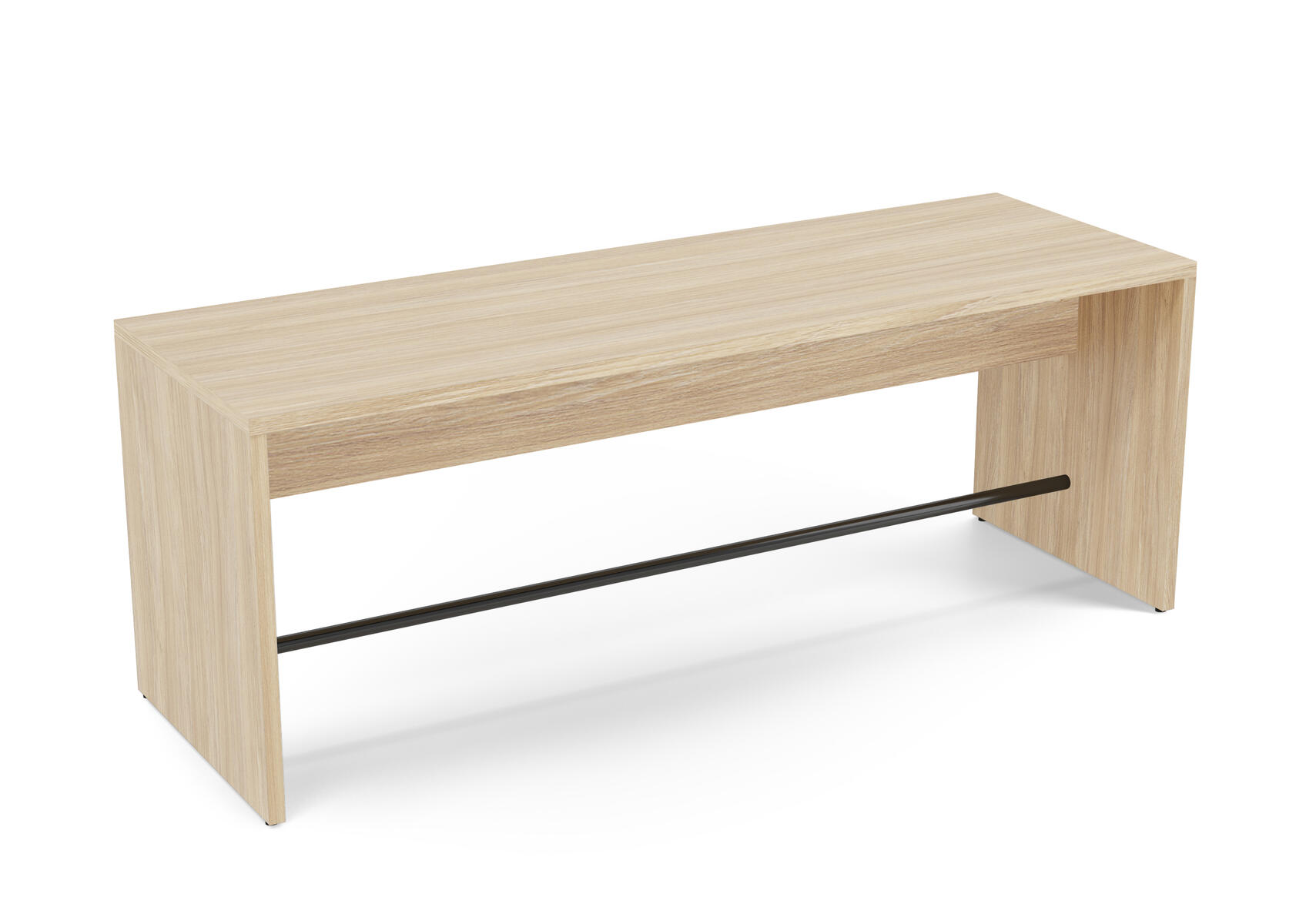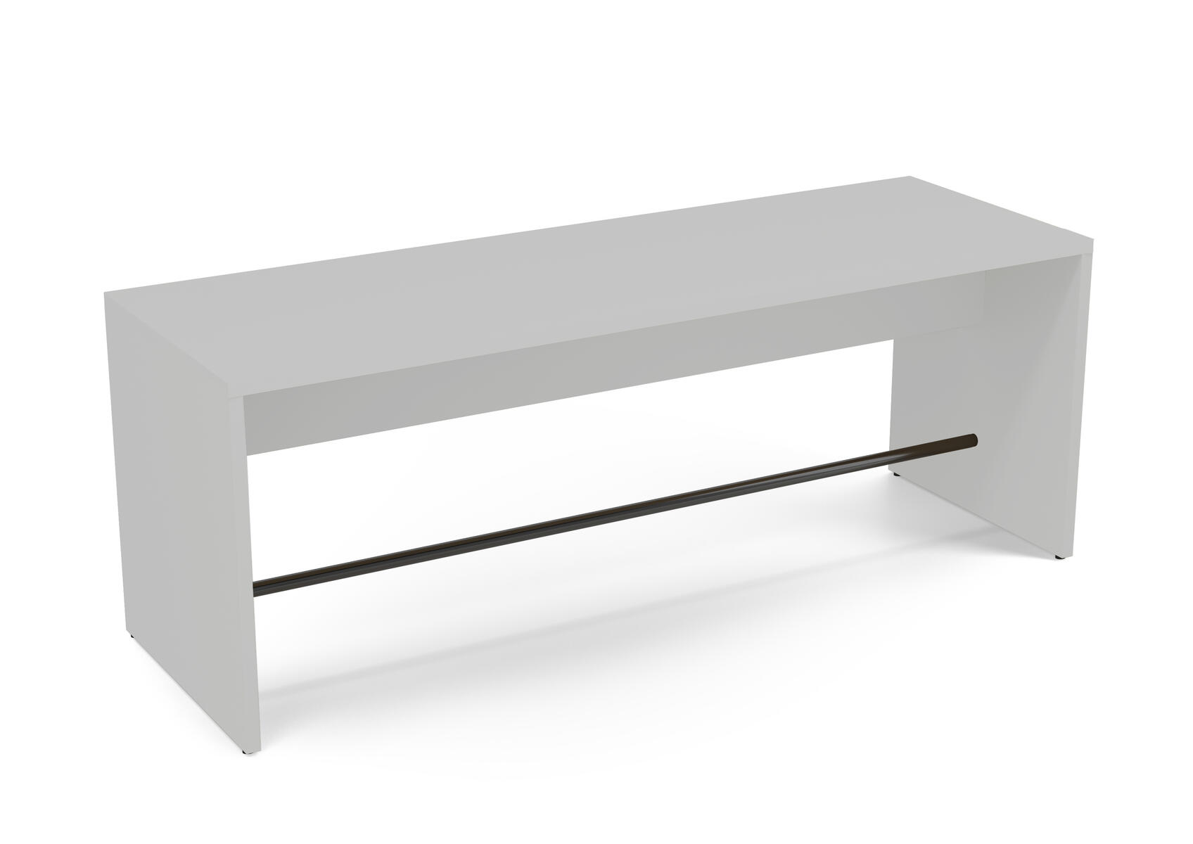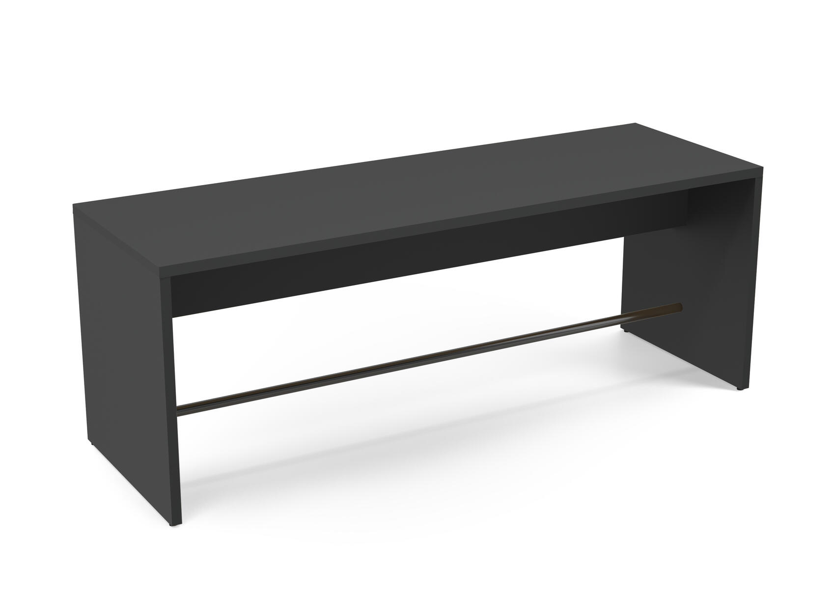 Ett robust gavelbord för till exempel caféer och korridorer. Använd som ståbord eller med höga barstolar. Fotstöd i stål, RAL 9005. Stomme av 36 mm tjocka spånskivor med direktlaminat.