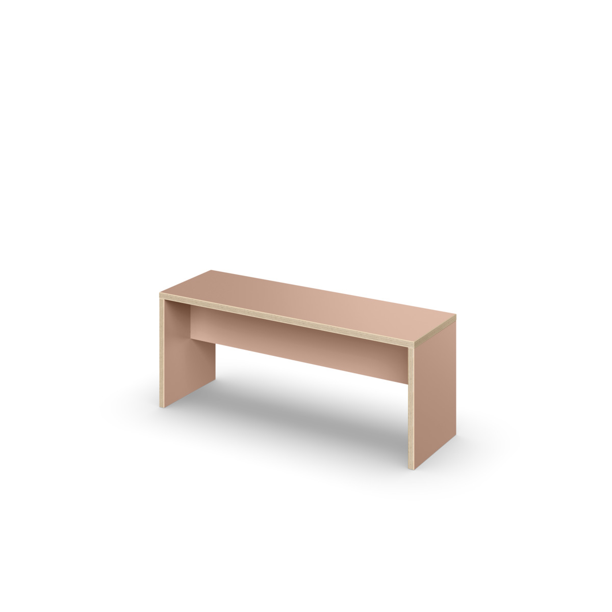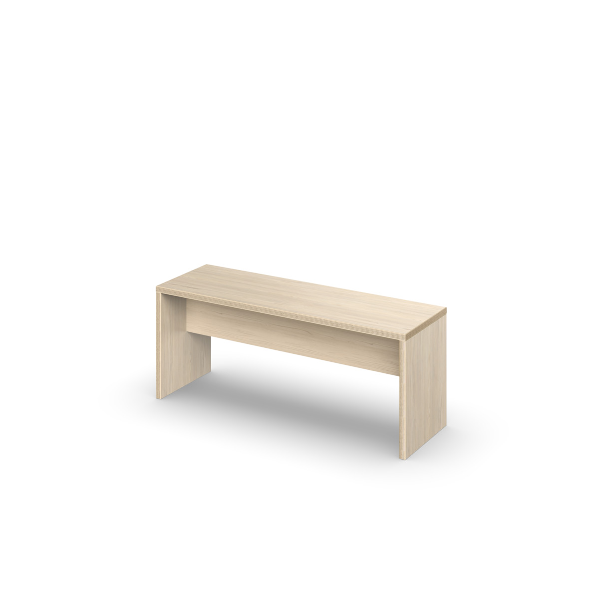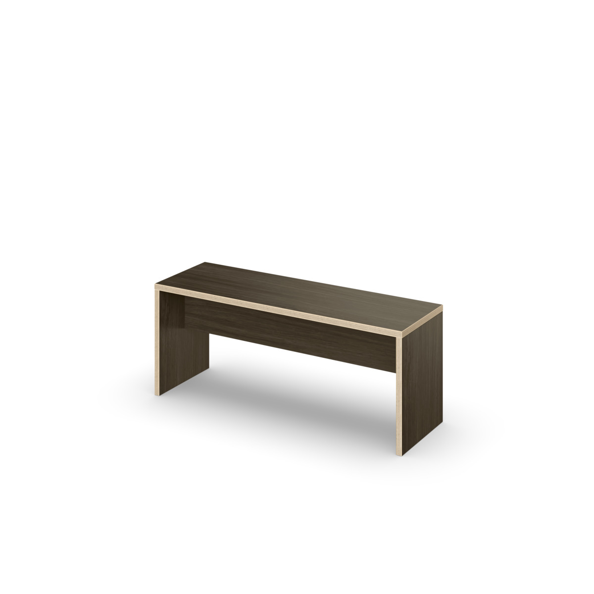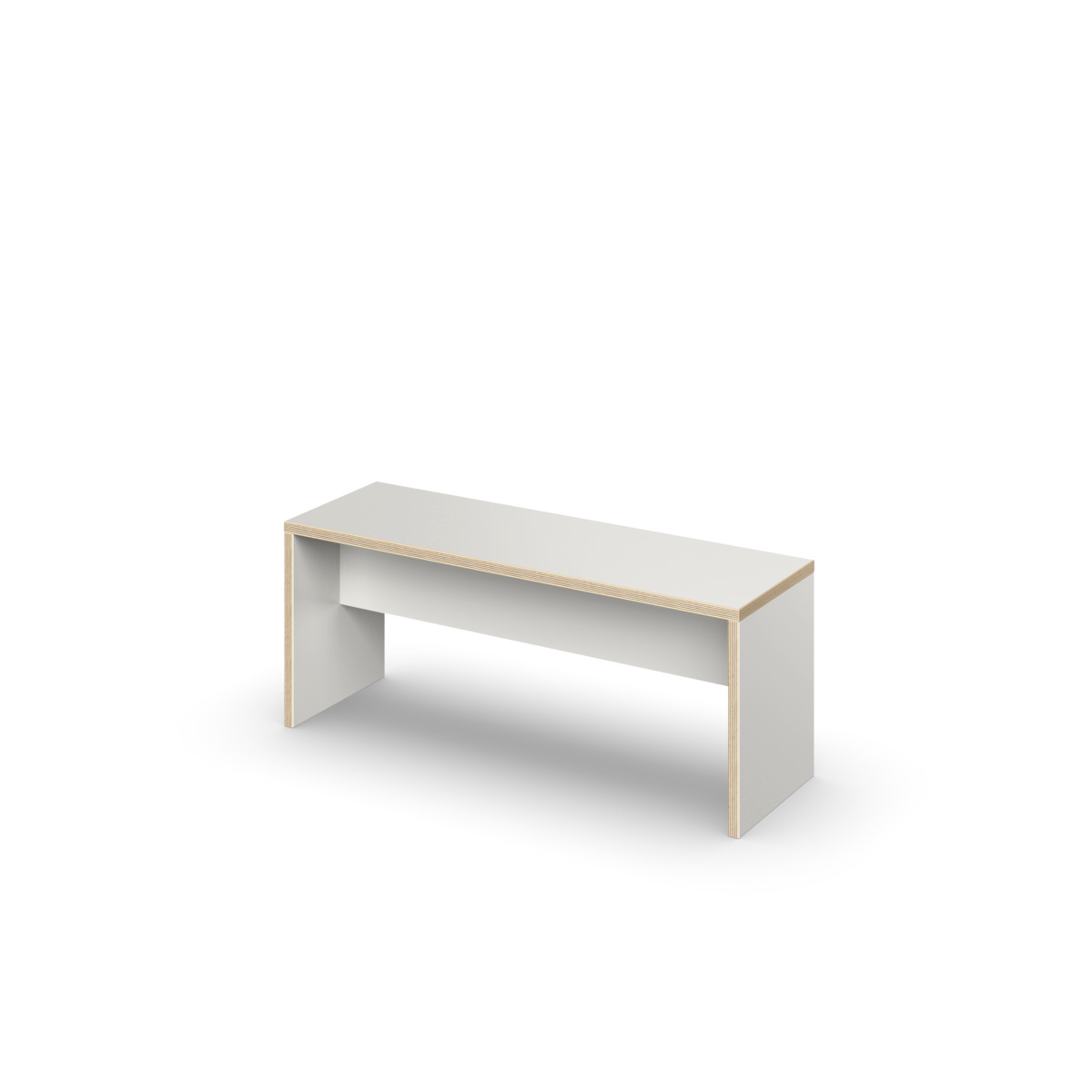 Bänk som passar perfekt till gavelbord West. Material spånskiva med laminat. Kantlist i plywoodlook. Plastfötter.