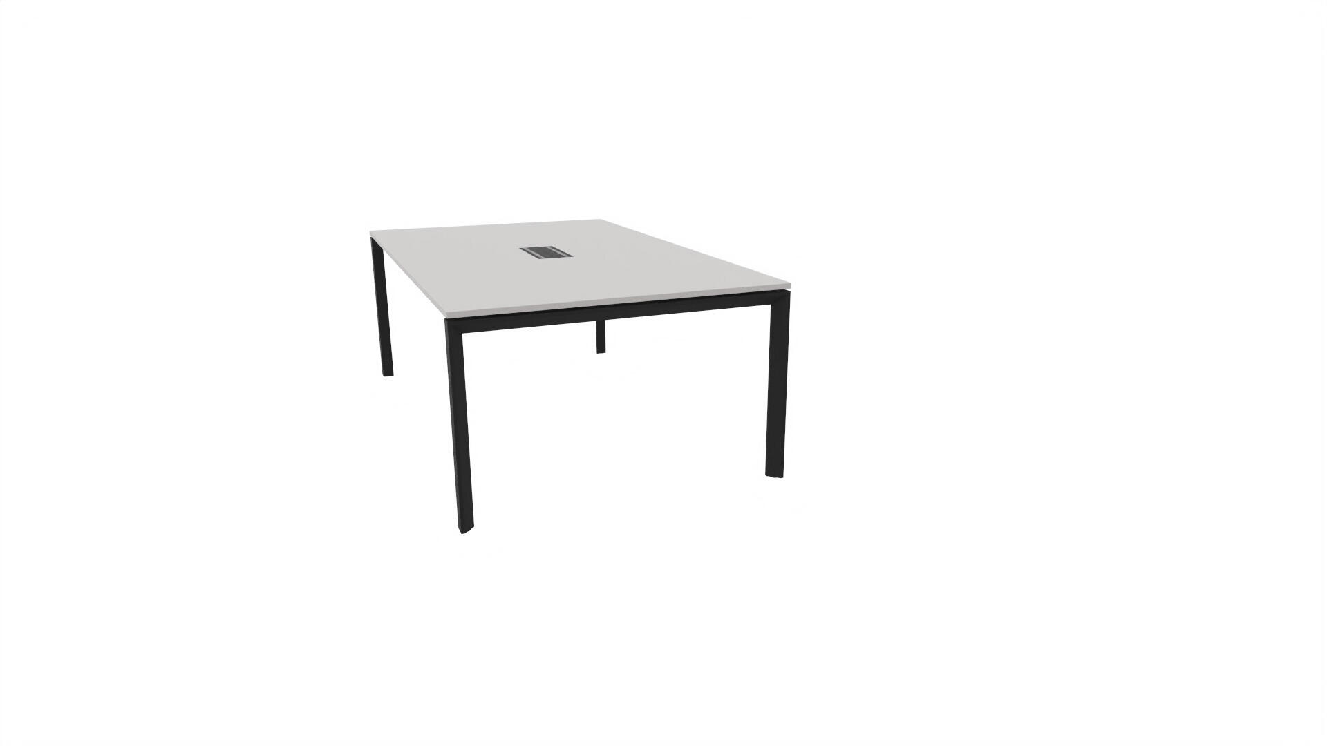 Ett konferensbord med rektangulär skiva, rak kant. Kärna av spånskiva klädd med laminat och ABS-kantband. Underrede SQB. Förutom vanligt standardlaminat, finns bordet även med ett svart nanolaminat som har en yta som är matt och resistent mot fingeravtryck. Som tillval kan du även välja att få två st mediaboxar (32x15 cm) infällda i bordet. Varje mediabox består av 2x 230V eluttag, 1x USB och 1x HDMI.