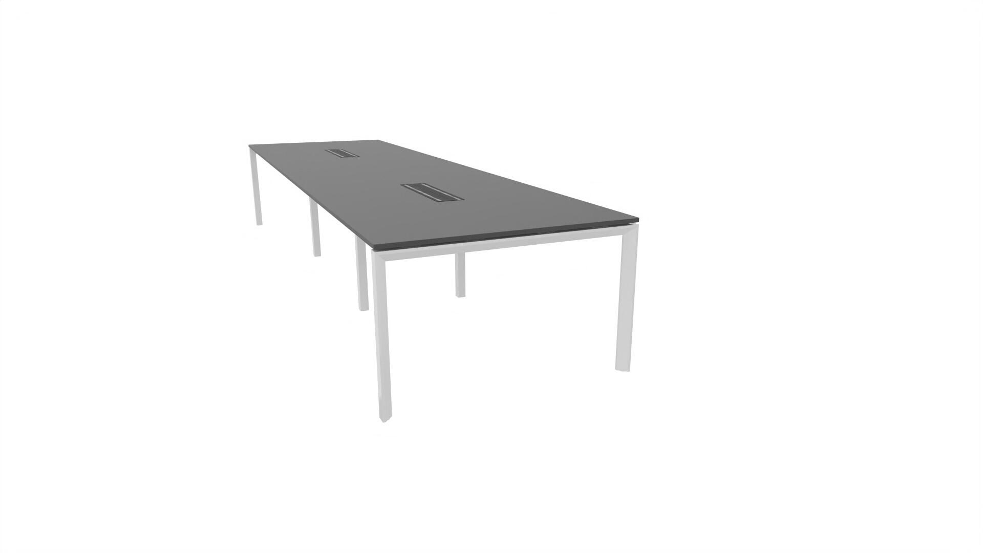 Ett konferensbord med rektangulär skiva, rak kant. Kärna av spånskiva klädd med laminat och ABS-kantband. Underrede SQB. Förutom vanligt standardlaminat, finns bordet även med ett svart nanolaminat som har en yta som är matt och resistent mot fingeravtryck. Som tillval kan du även välja att få två st mediaboxar (32x15 cm) infällda i bordet. Varje mediabox består av 2x 230V eluttag, 1x USB och 1x HDMI.
