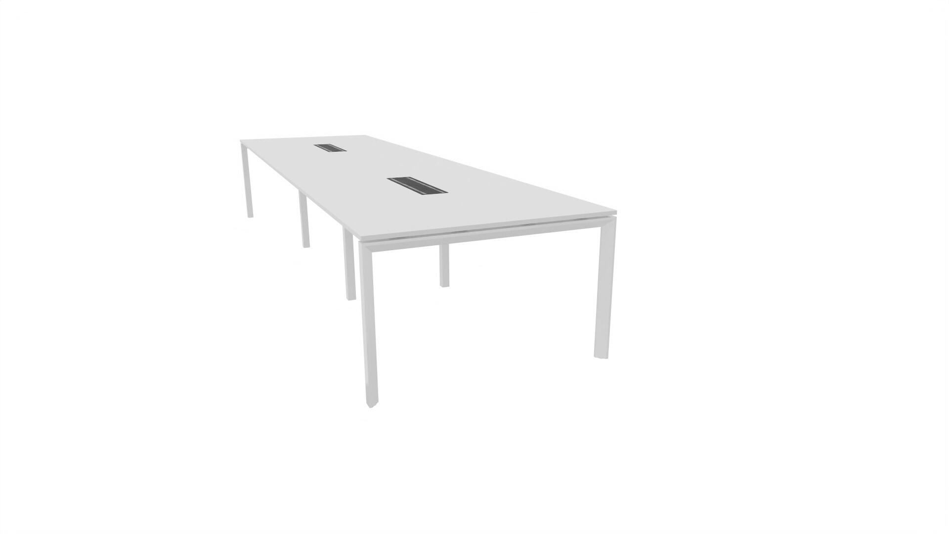 Ett konferensbord med rektangulär skiva, rak kant. Kärna av spånskiva klädd med laminat och ABS-kantband. Underrede SQB. Förutom vanligt standardlaminat, finns bordet även med ett svart nanolaminat som har en yta som är matt och resistent mot fingeravtryck. Som tillval kan du även välja att få två st mediaboxar (61x15 cm) infällda i bordet. Varje mediabox består av 5x 230V eluttag, 2x USB och 1x HDMI.