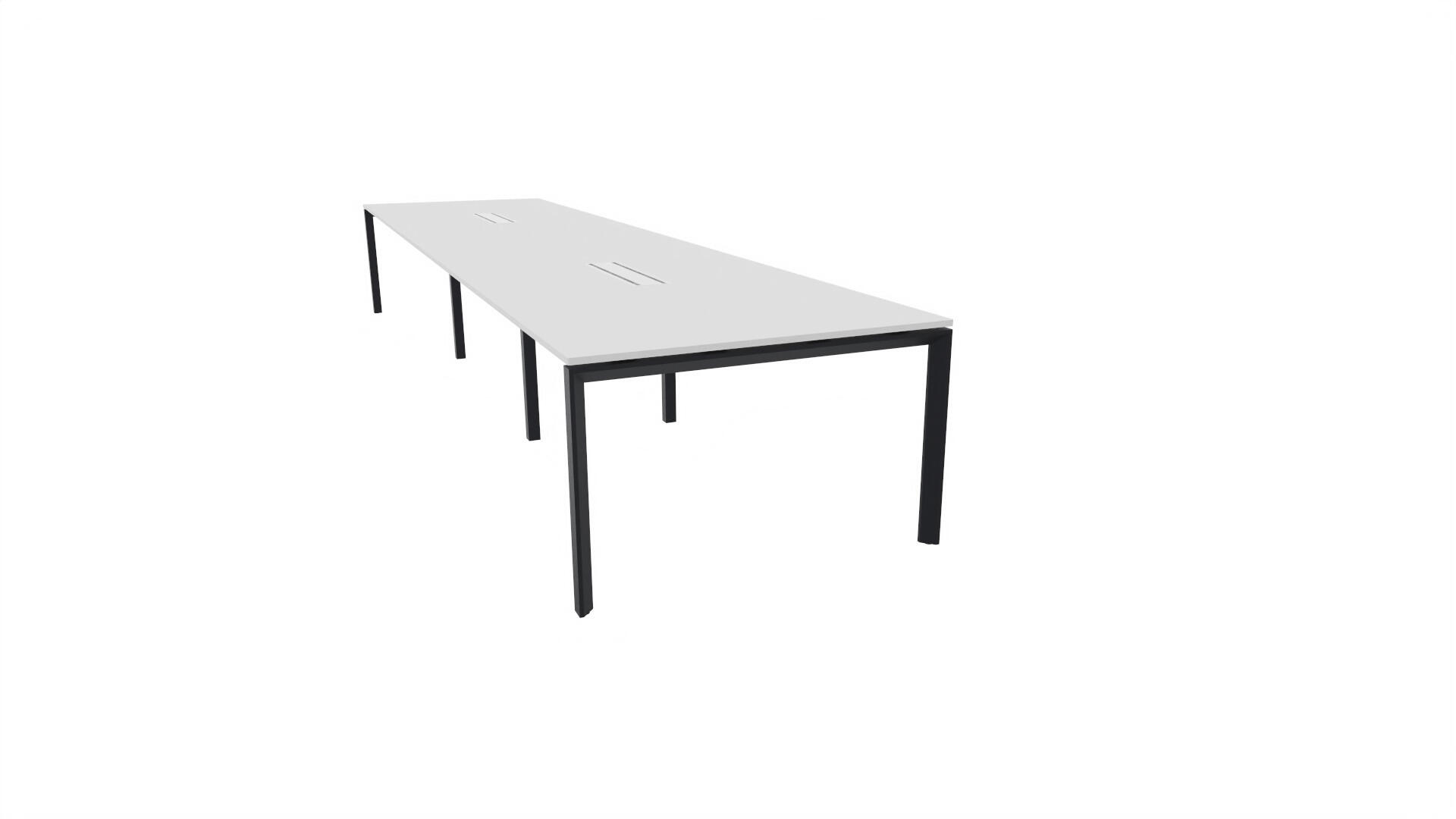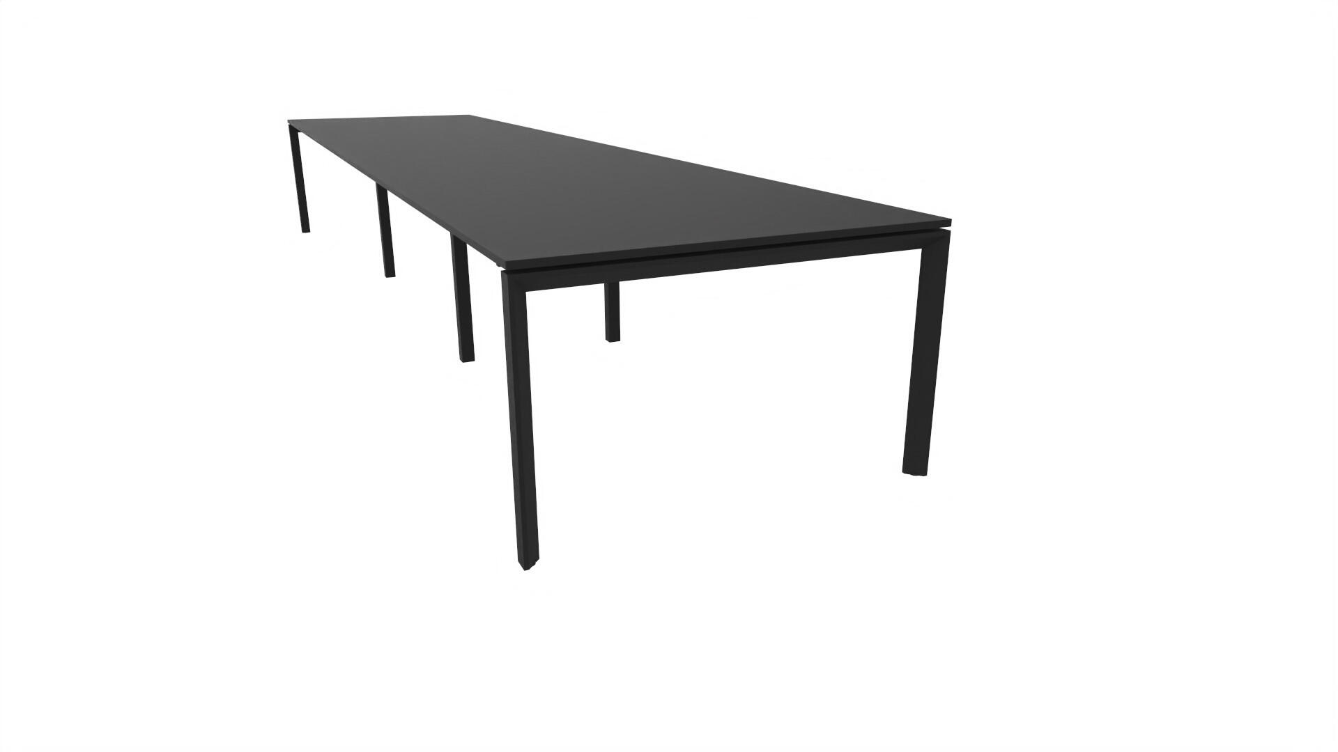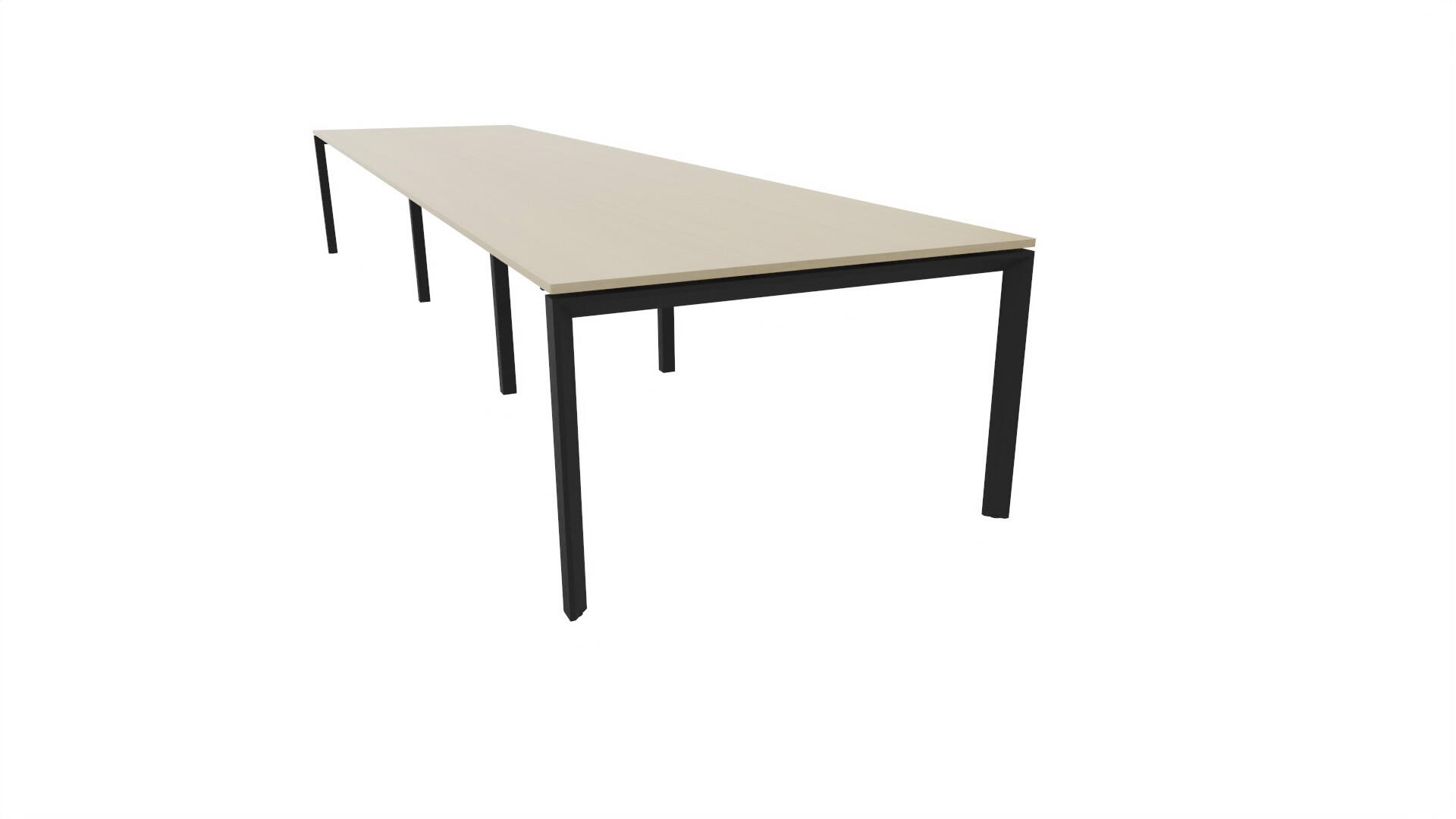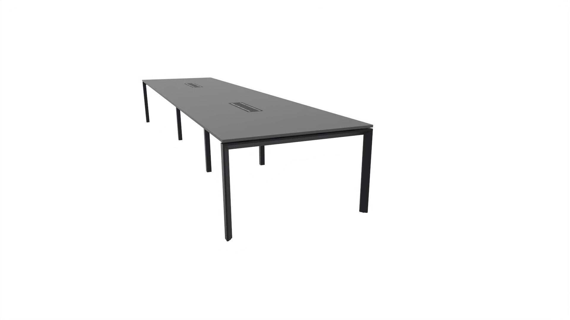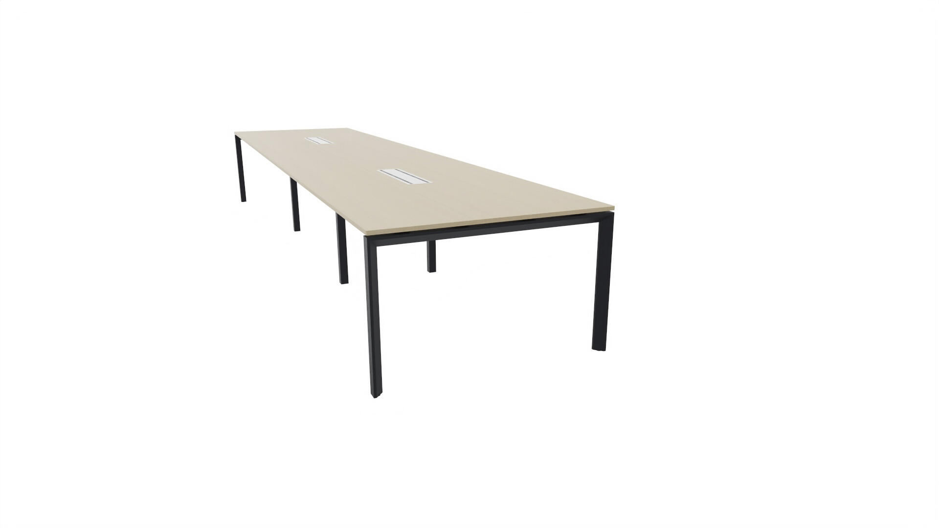 Ett konferensbord med rektangulär skiva, rak kant. Kärna av spånskiva klädd med laminat och ABS-kantband. Underrede SQB. Förutom vanligt standardlaminat, finns bordet även med ett svart nanolaminat som har en yta som är matt och resistent mot fingeravtryck. Som tillval kan du även välja att få två st mediaboxar (61x15 cm) infällda i bordet. Varje mediabox består av 5x 230V eluttag, 2x USB och 1x HDMI.