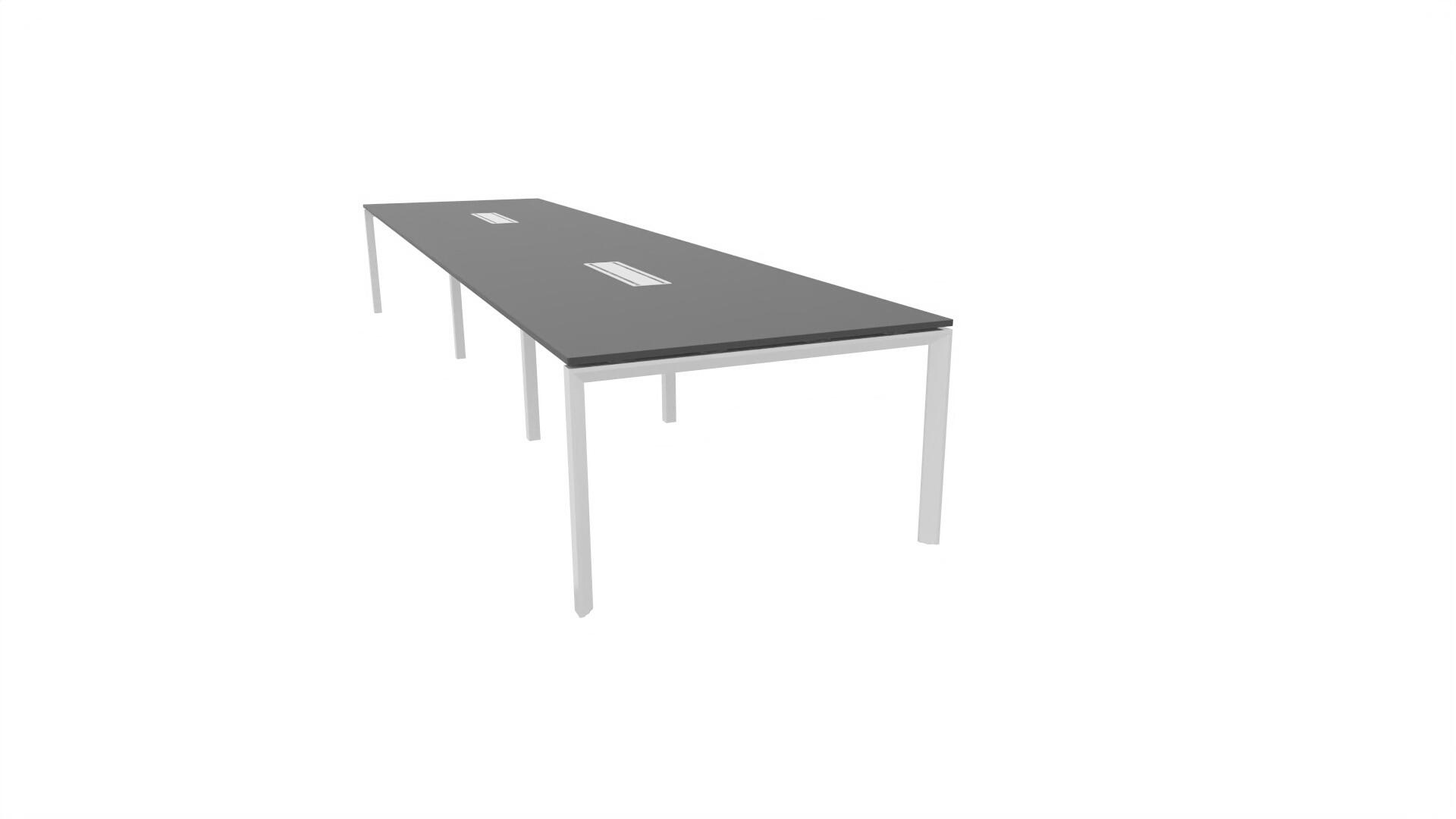 Ett konferensbord med rektangulär skiva, rak kant. Kärna av spånskiva klädd med laminat och ABS-kantband. Underrede SQB. Förutom vanligt standardlaminat, finns bordet även med ett svart nanolaminat som har en yta som är matt och resistent mot fingeravtryck. Som tillval kan du även välja att få två st mediaboxar (32x15 cm) infällda i bordet. Varje mediabox består av 2x 230V eluttag, 1x USB och 1x HDMI.
