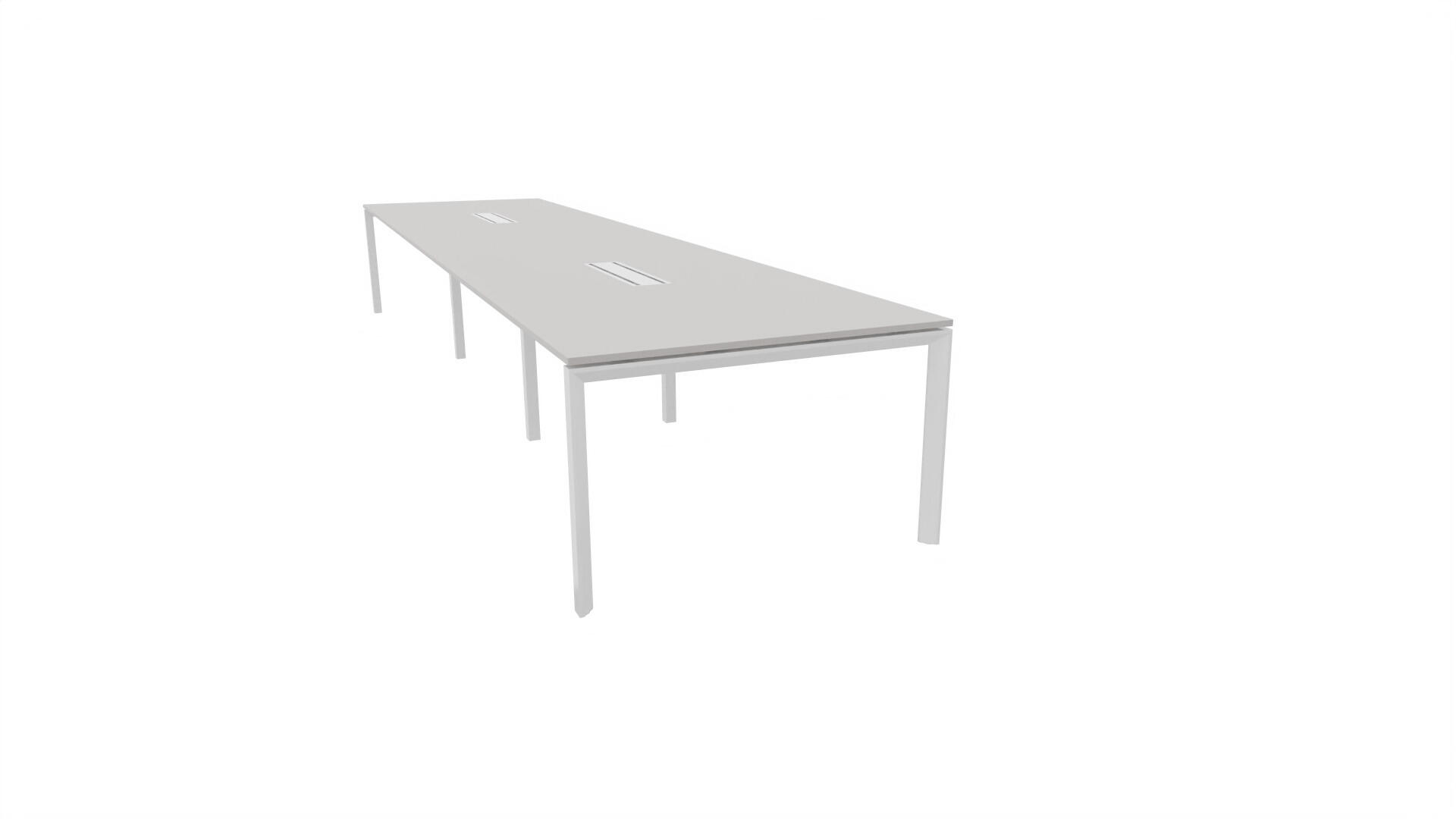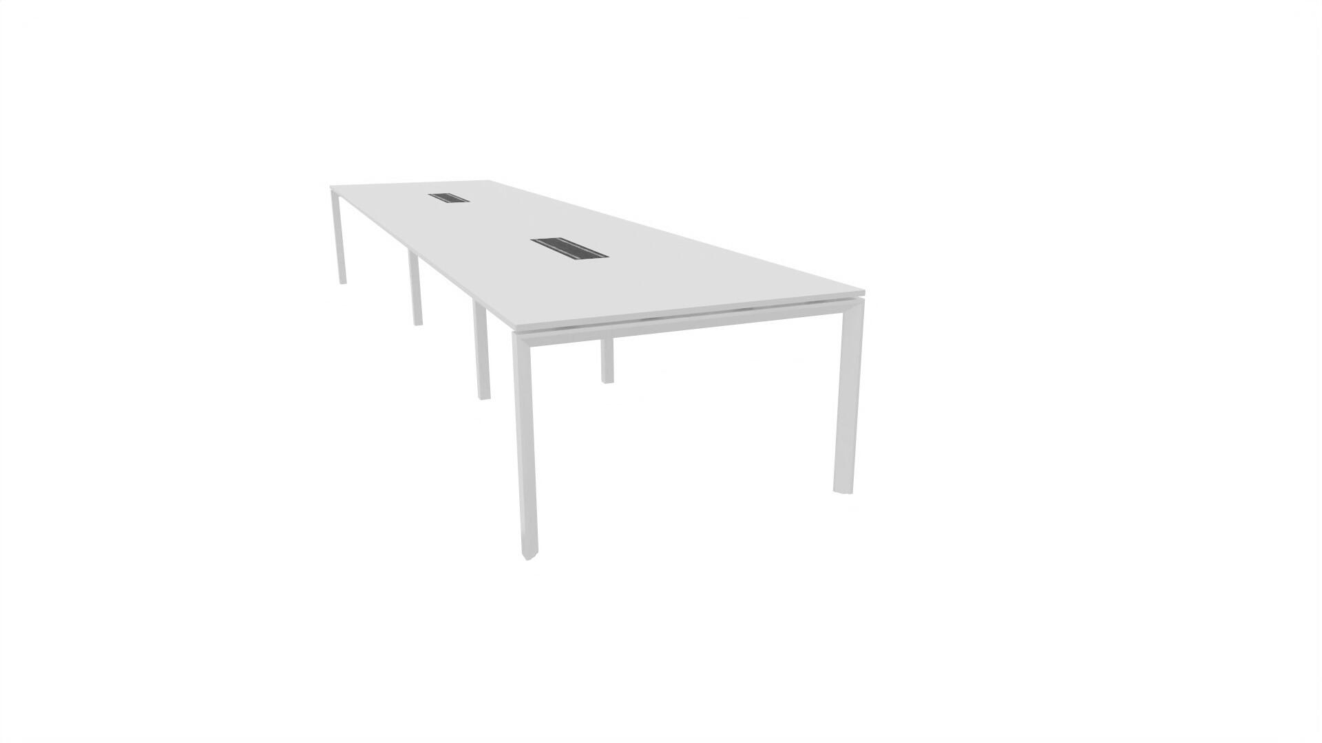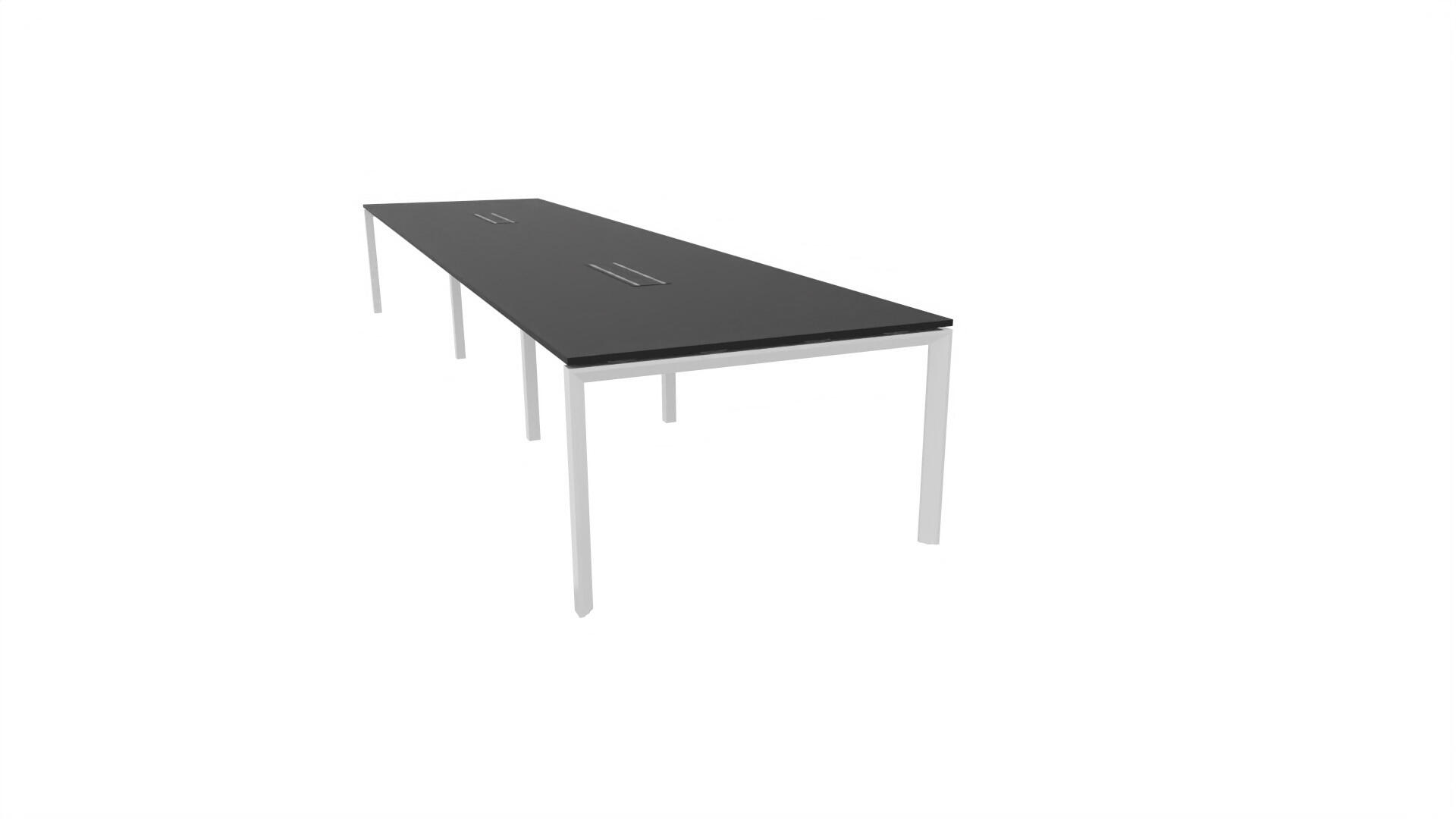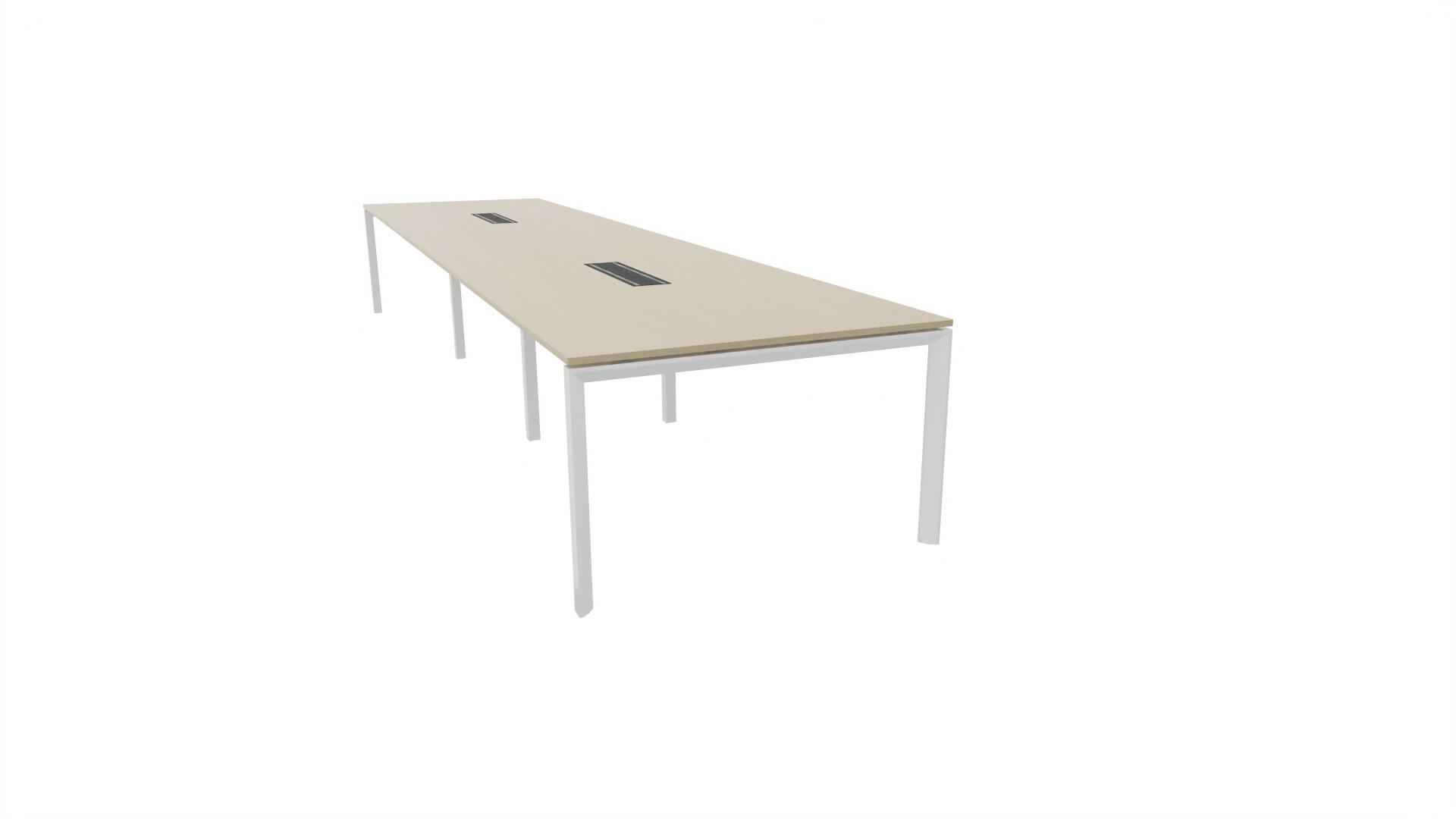 Ett konferensbord med rektangulär skiva, rak kant. Kärna av spånskiva klädd med laminat och ABS-kantband. Underrede SQB. Förutom vanligt standardlaminat, finns bordet även med ett svart nanolaminat som har en yta som är matt och resistent mot fingeravtryck. Som tillval kan du även välja att få två st mediaboxar (61x15 cm) infällda i bordet. Varje mediabox består av 5x 230V eluttag, 2x USB och 1x HDMI.