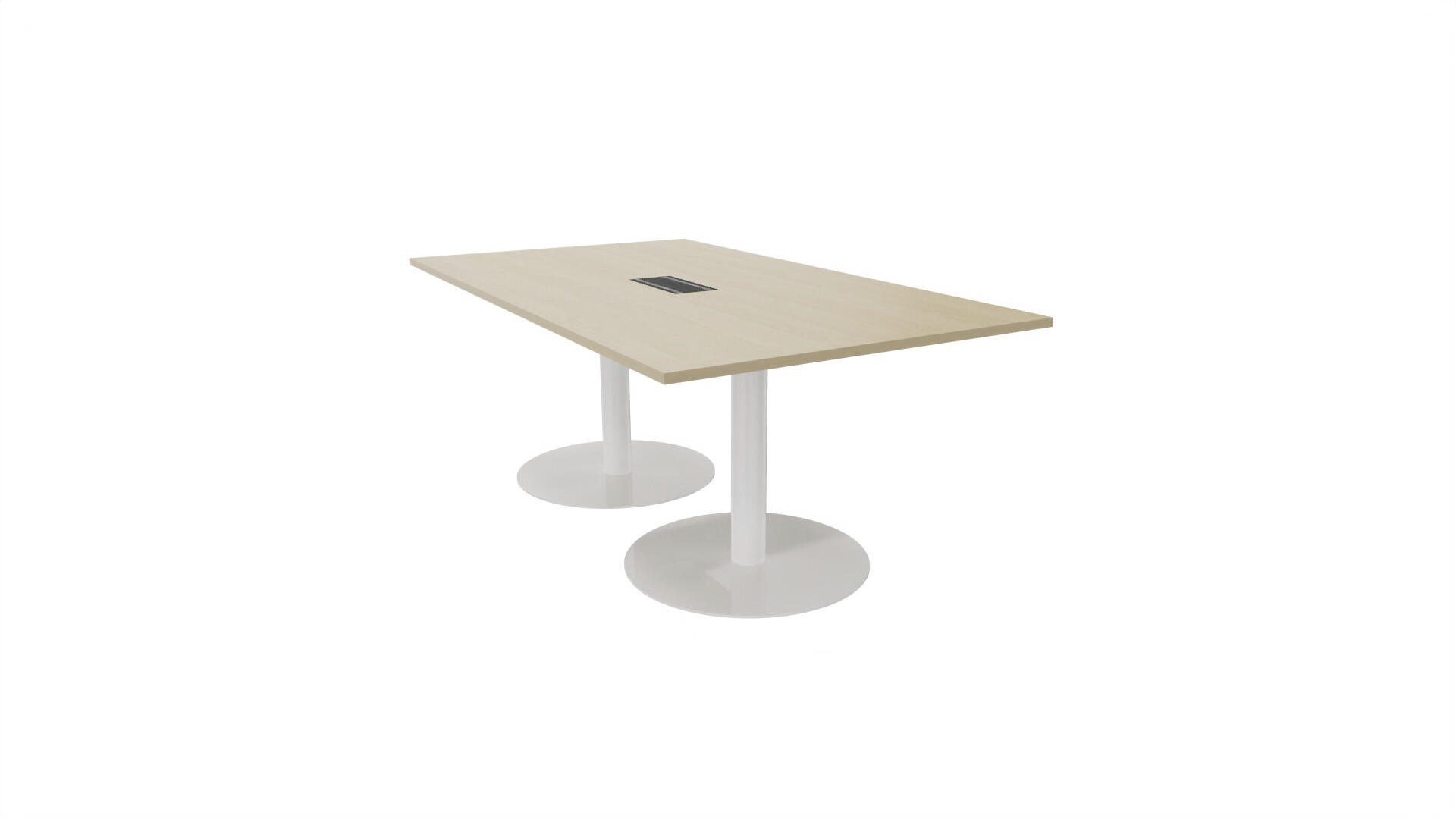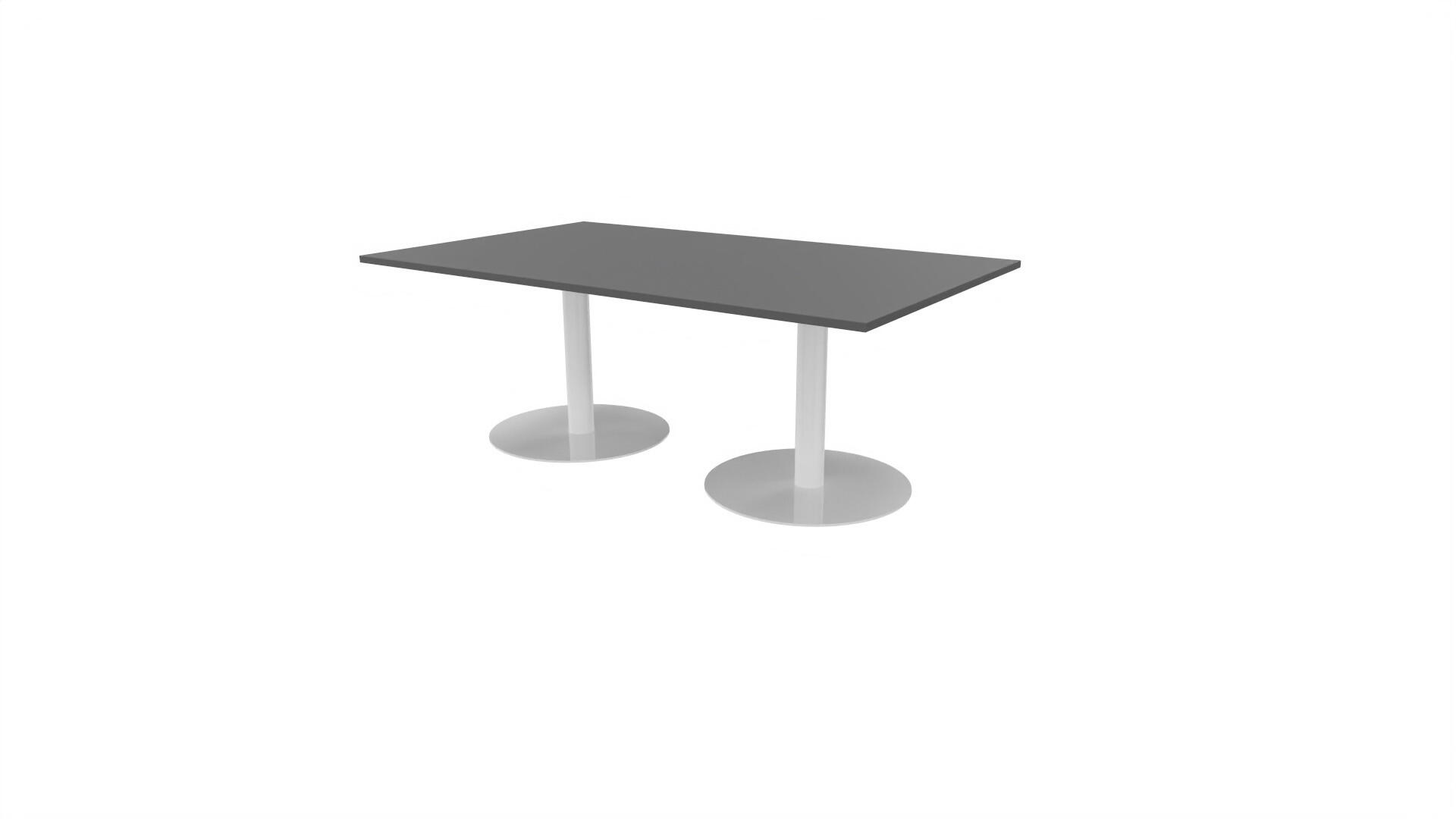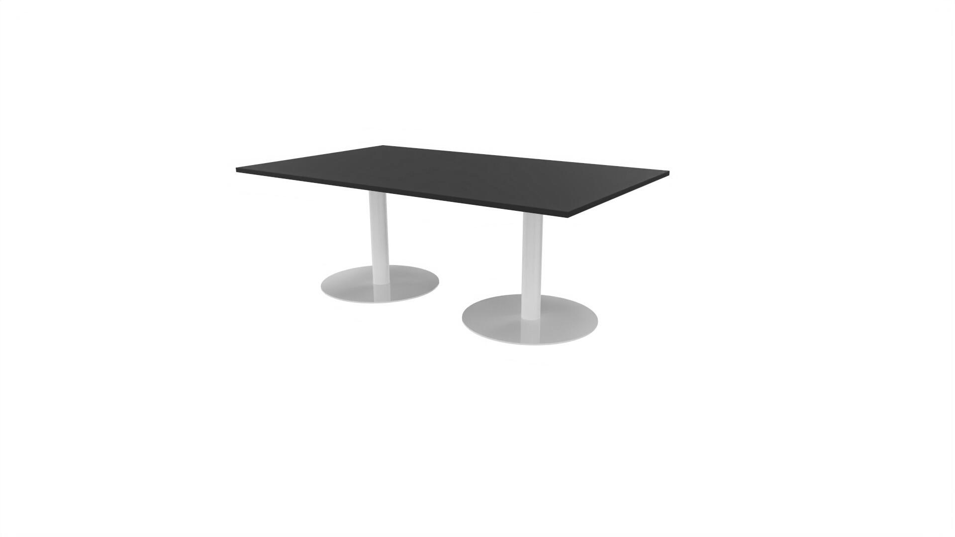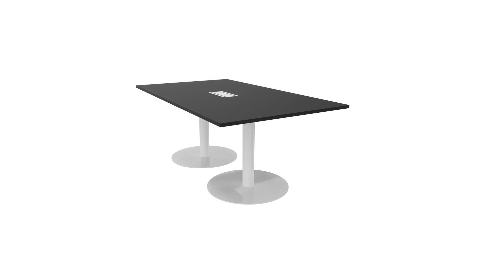 Ett konferensbord med rektangulär skiva, rak kant. Kärna av spånskiva klädd med laminat och ABS-kantband. Underrede pelarstativ med 2 ben, pelardiameter: ø 10,2 cm, fotdiamenter: ø 72 cm. Förutom vanligt standardlaminat, finns bordet även med ett svart nanolaminat som har en yta som är matt och resistent mot fingeravtryck. Som tillval kan du även välja att få två st mediaboxar (32x15 cm) infällda i bordet. Varje mediabox består av 2x 230V eluttag, 1x USB och 1x HDMI.