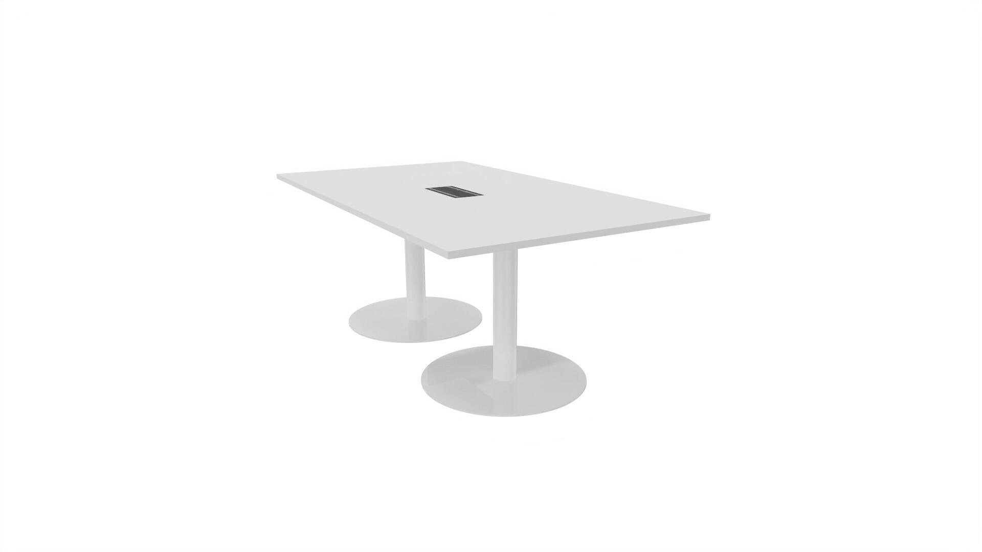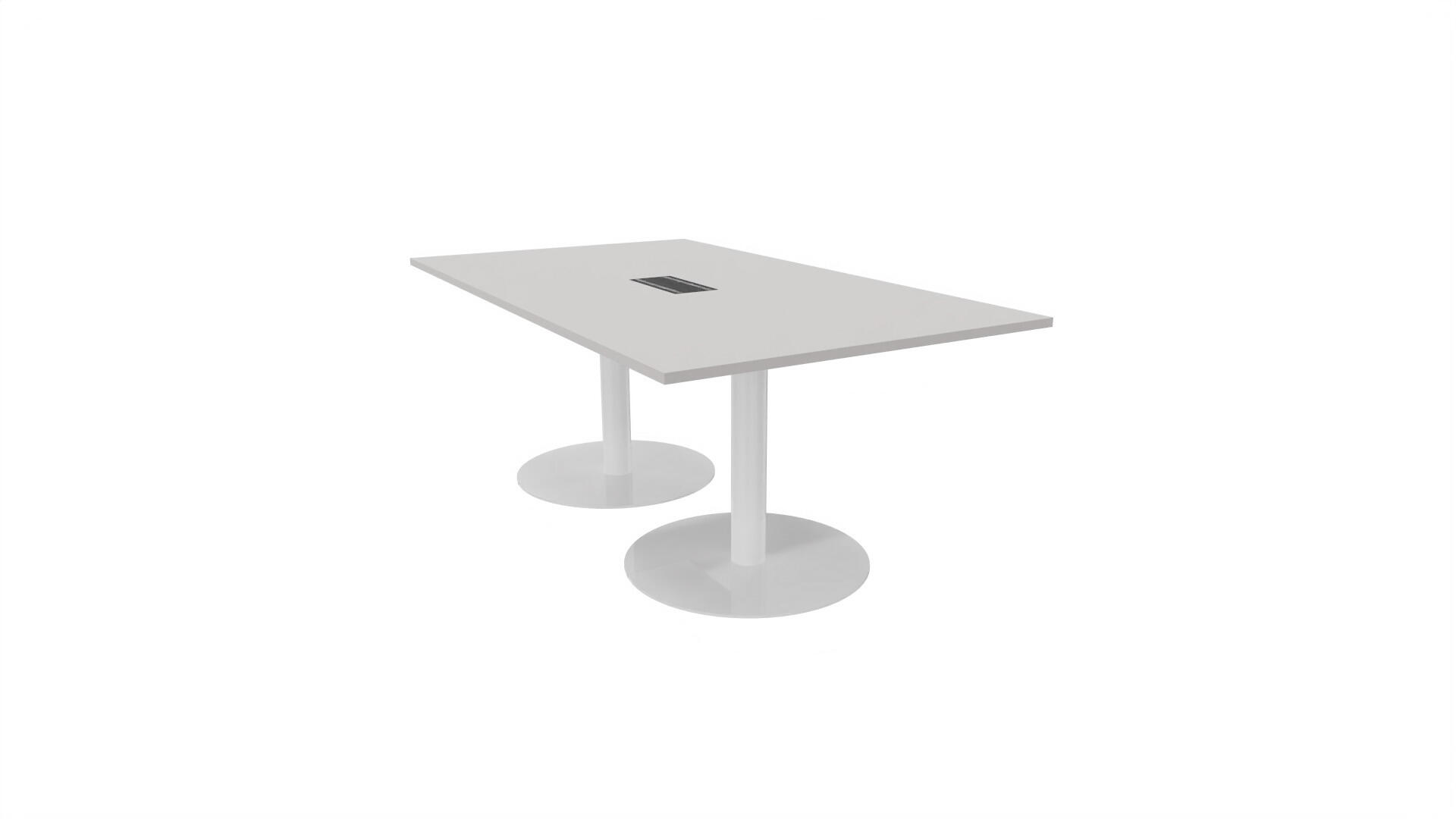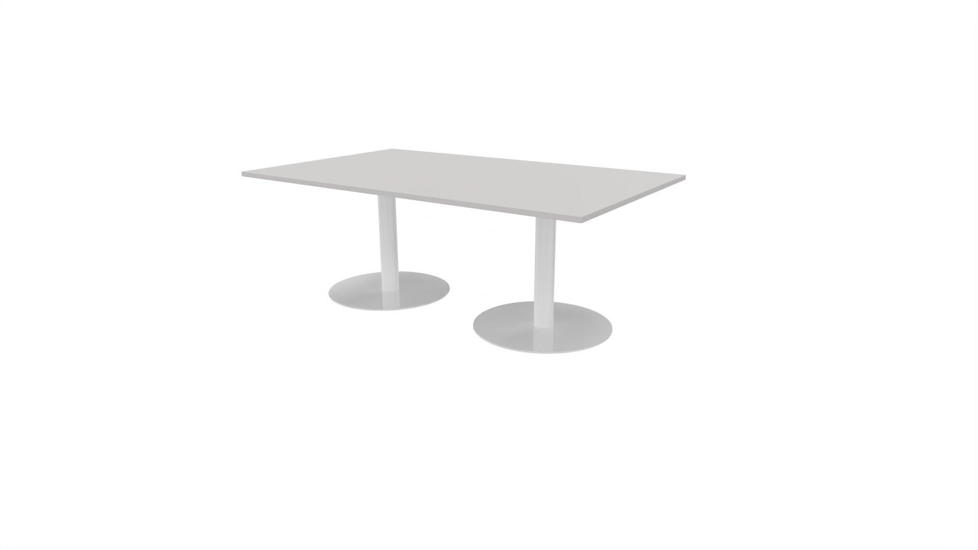 Ett konferensbord med rektangulär skiva, rak kant. Kärna av spånskiva klädd med laminat och ABS-kantband. Underrede pelarstativ med 2 ben, pelardiameter: ø 10,2 cm, fotdiamenter: ø 72 cm. Förutom vanligt standardlaminat, finns bordet även med ett svart nanolaminat som har en yta som är matt och resistent mot fingeravtryck. Som tillval kan du även välja att få två st mediaboxar (32x15 cm) infällda i bordet. Varje mediabox består av 2x 230V eluttag, 1x USB och 1x HDMI.
