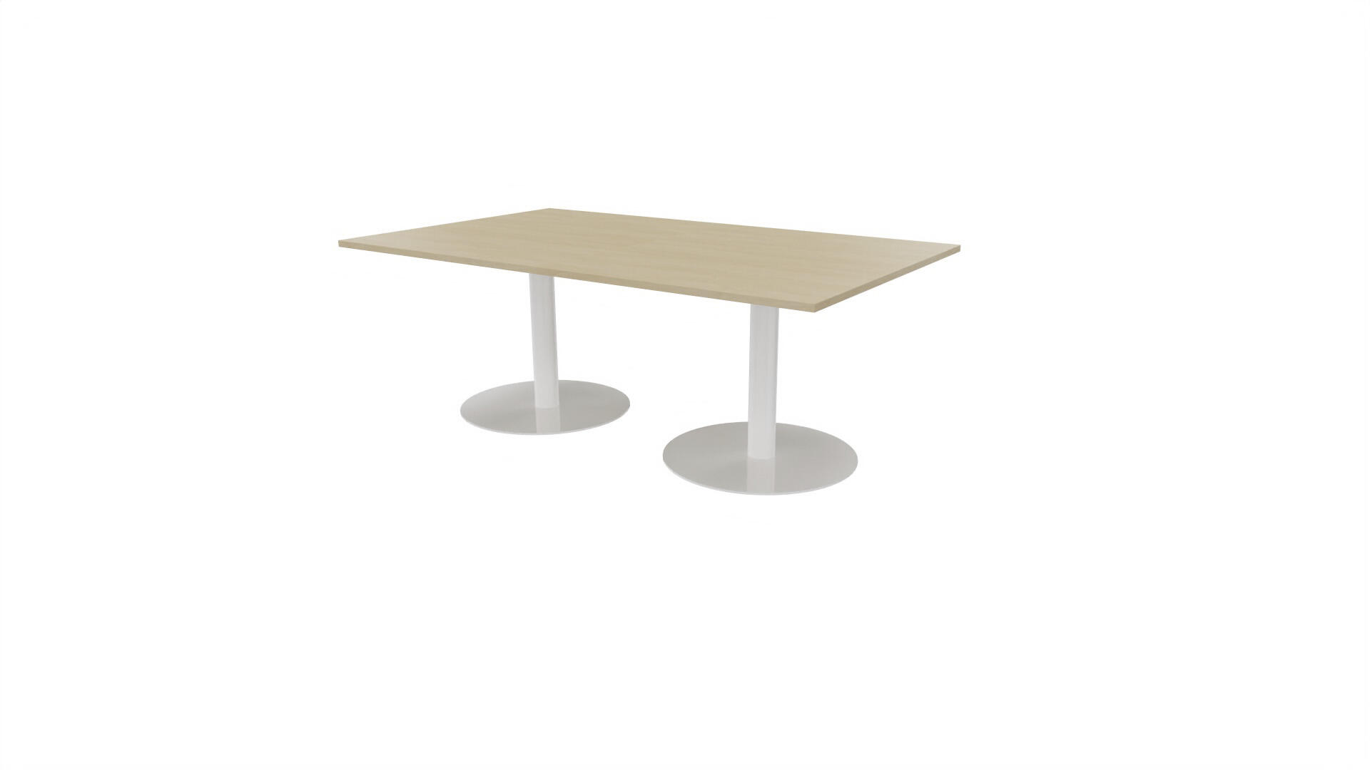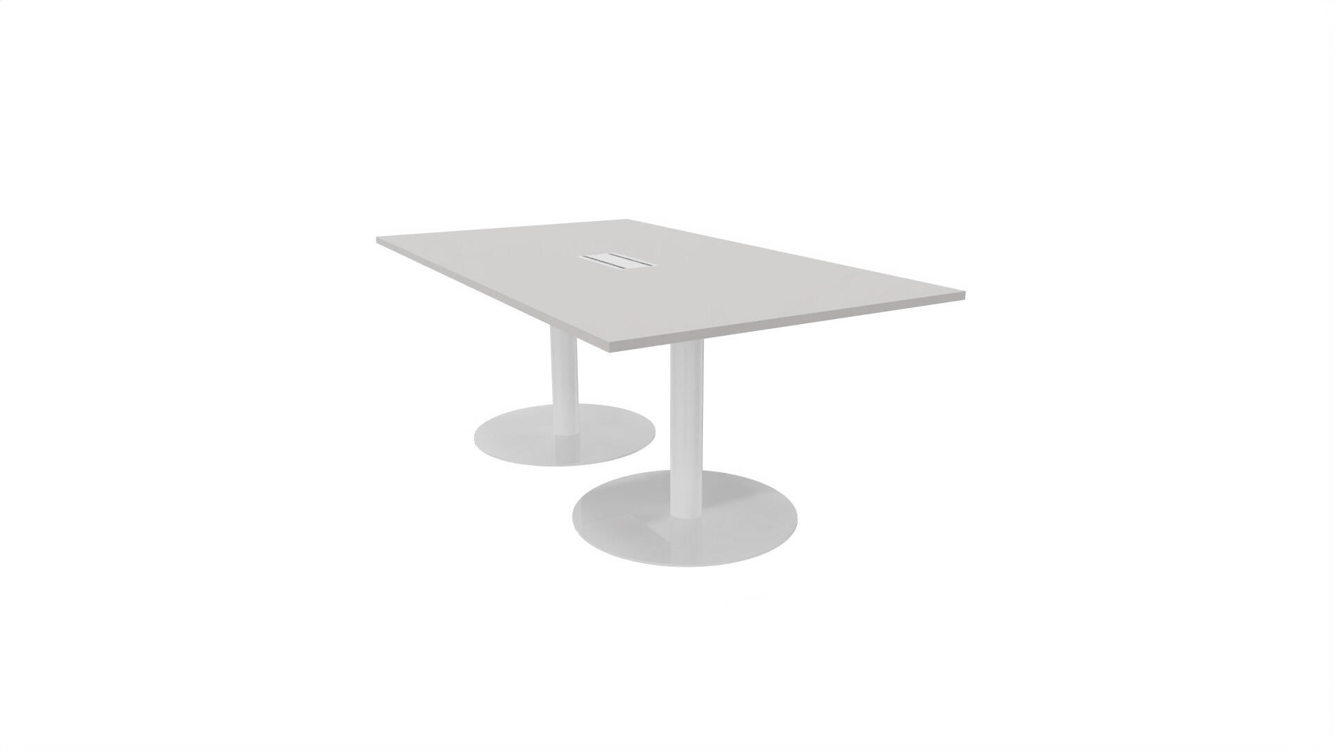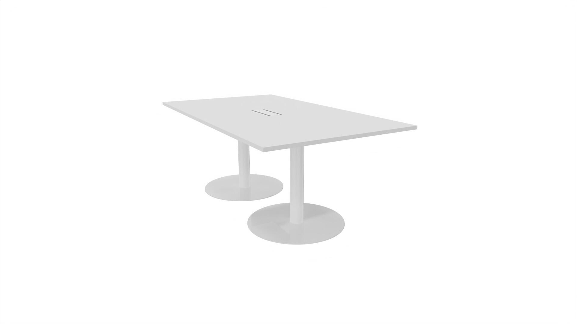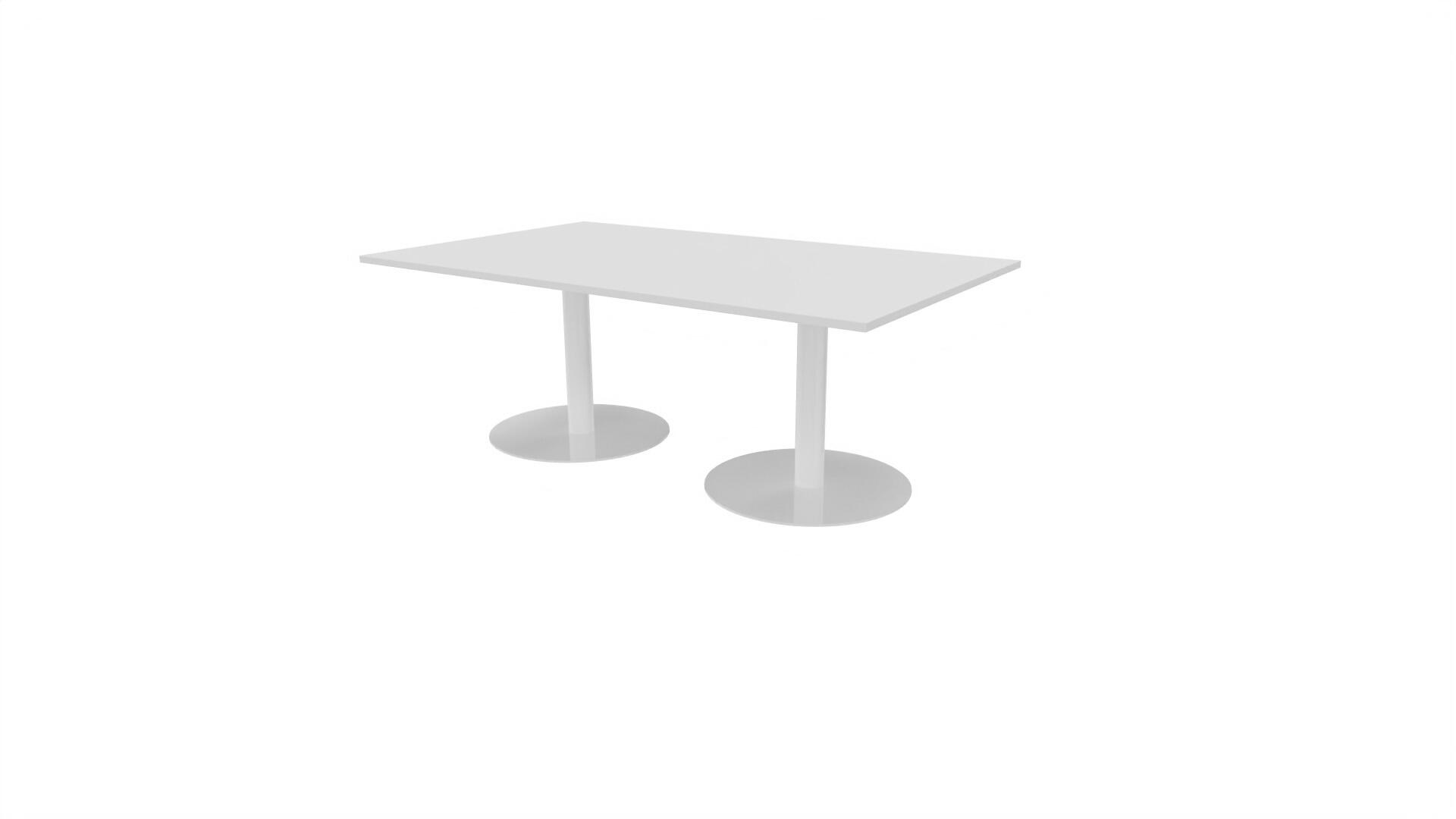 Ett konferensbord med rektangulär skiva, rak kant. Kärna av spånskiva klädd med laminat och ABS-kantband. Underrede pelarstativ med 2 ben, pelardiameter: ø 10,2 cm, fotdiamenter: ø 72 cm. Förutom vanligt standardlaminat, finns bordet även med ett svart nanolaminat som har en yta som är matt och resistent mot fingeravtryck. Som tillval kan du även välja att få två st mediaboxar (32x15 cm) infällda i bordet. Varje mediabox består av 2x 230V eluttag, 1x USB och 1x HDMI.