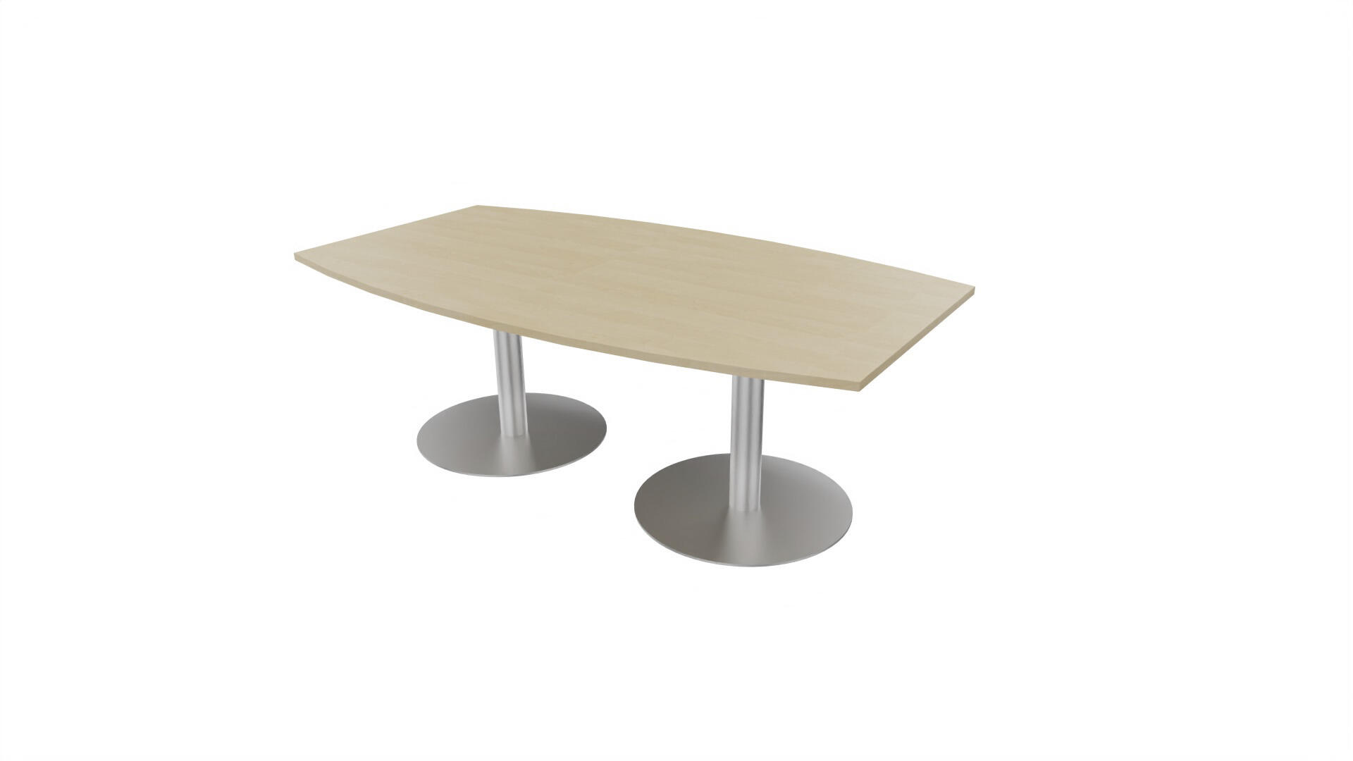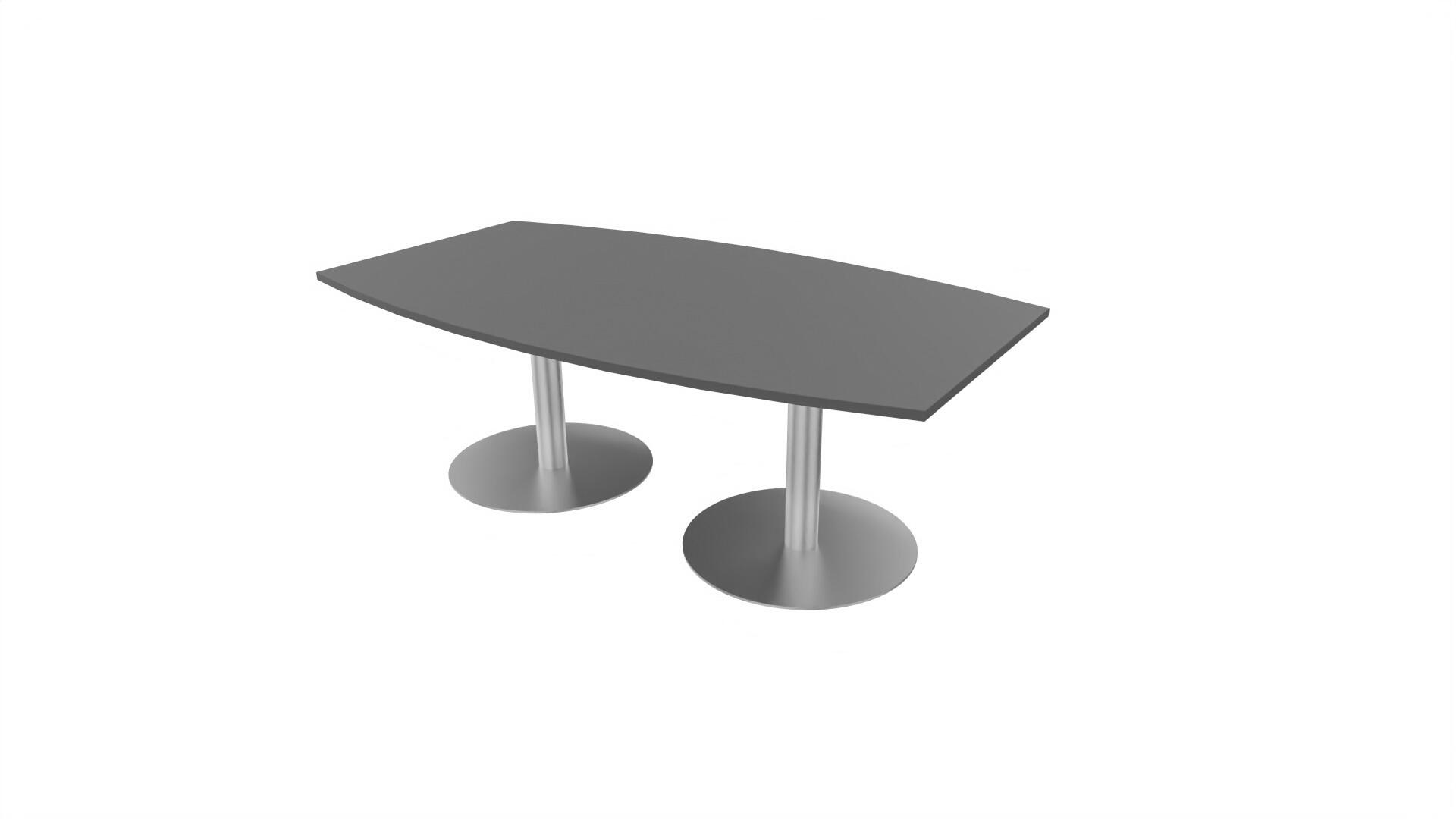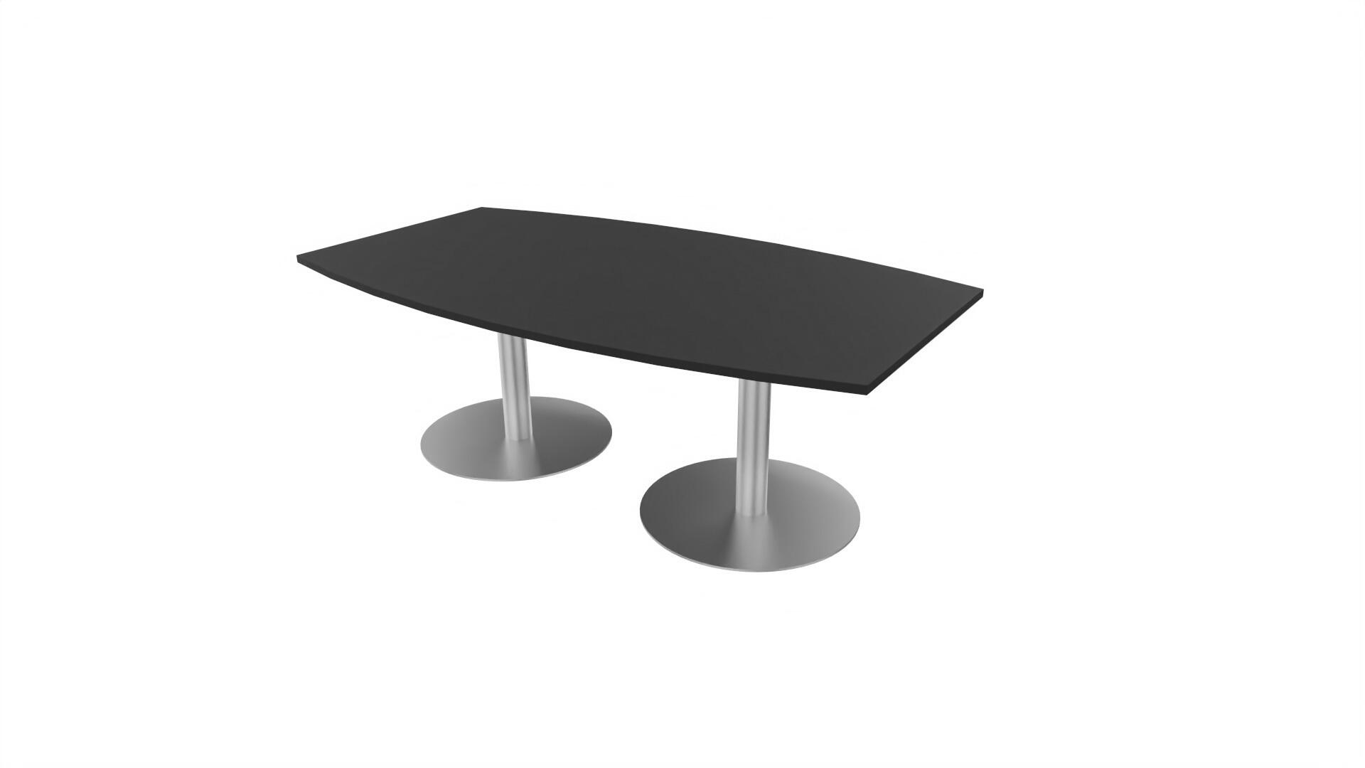 Ett konferensbord med en skiva formad som en avkapad ellips. Kärna av spånskiva klädd med laminat och ABS-kantband. Underrede T-stativ med 2 ben, fotlängd: 90 cm. Förutom vanligt standardlaminat, finns bordet även med ett svart nanolaminat som har en yta som är matt och resistent mot fingeravtryck. Som tillval kan du även välja att få en mediabox (32x15 cm) infälld i bordet. Mediaboxen består av 2x 230V eluttag, 1x USB och 1x HDMI.