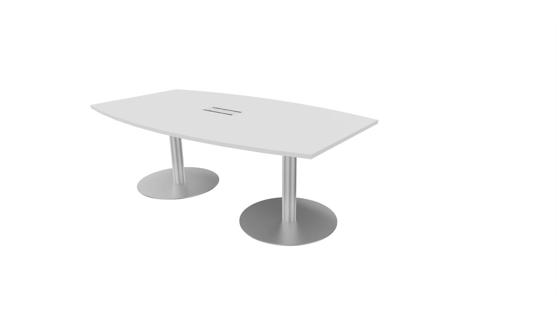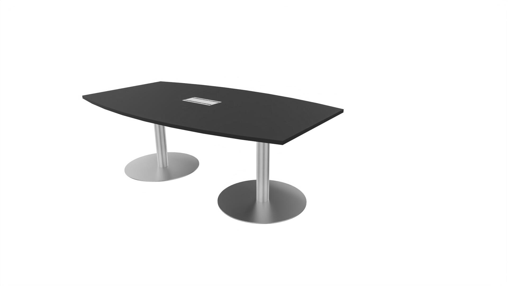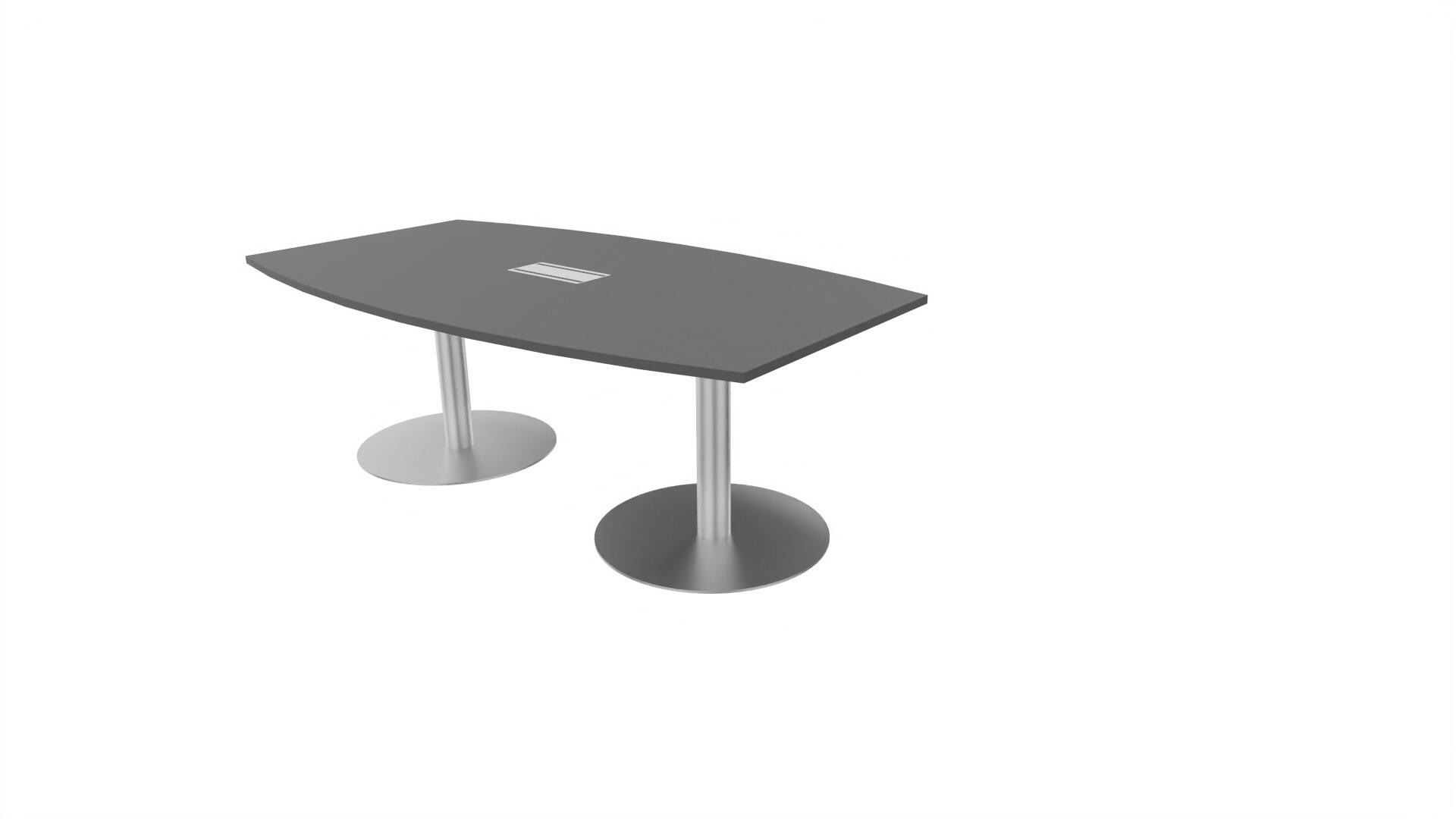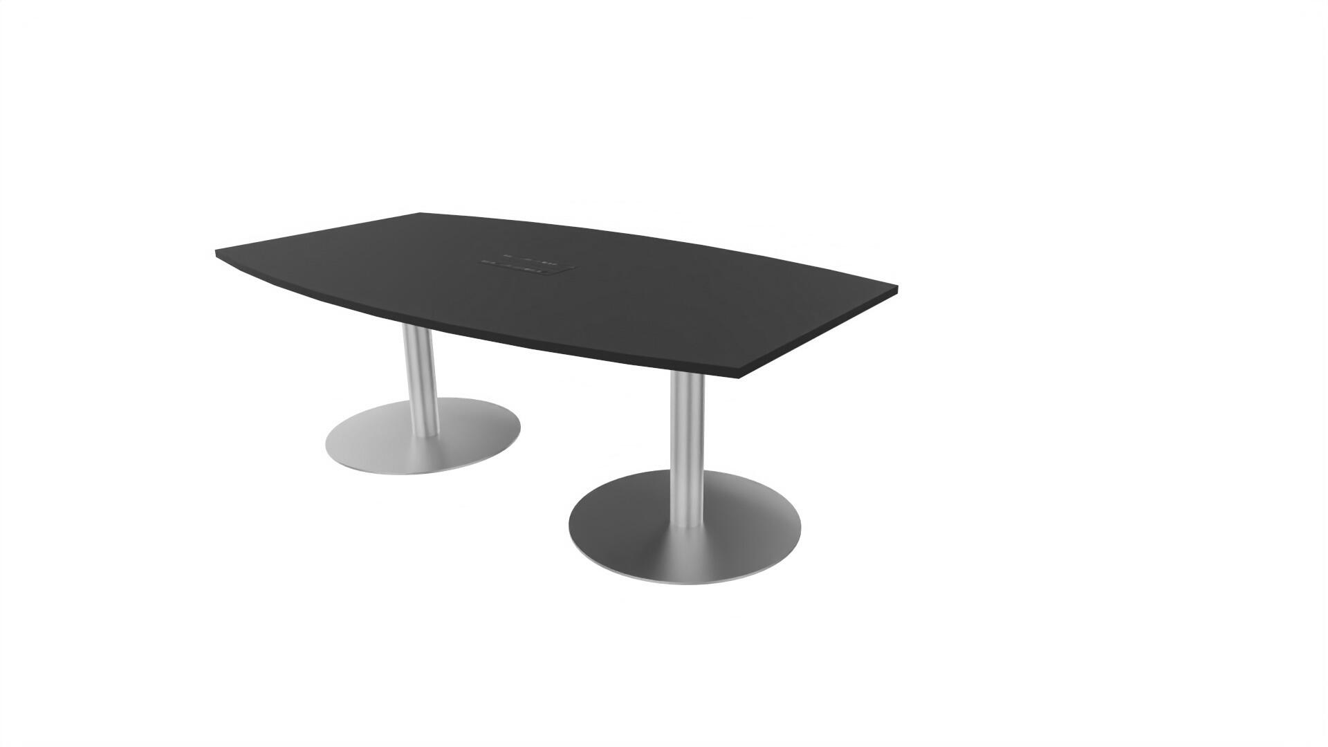 Ett konferensbord med en skiva formad som en avkapad ellips. Kärna av spånskiva klädd med laminat och ABS-kantband. Underrede T-stativ med 3 ben, fotlängd: 90 cm. Förutom vanligt standardlaminat, finns bordet även med ett svart nanolaminat som har en yta som är matt och resistent mot fingeravtryck. Som tillval kan du även välja att få två st mediaboxar (32x15 cm) infällda i bordet. Varje mediabox består av 2x 230V eluttag, 1x USB och 1x HDMI.
